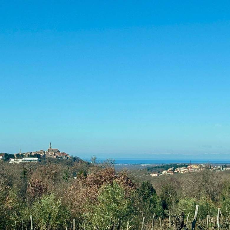 Ein äußerst attraktives Baugrundstück von 1086 m² steht zum Verkauf. Es befindet sich in ruhiger, erhöhter Lage in einem malerischen Dorf in unmittelbarer Nähe von Buje. Aufgrund seiner Lage mit spektakulärem Panoramablick auf das Meer und die Altstadt von Buje ist dieses Grundstück eine echte Rarität auf dem Markt.