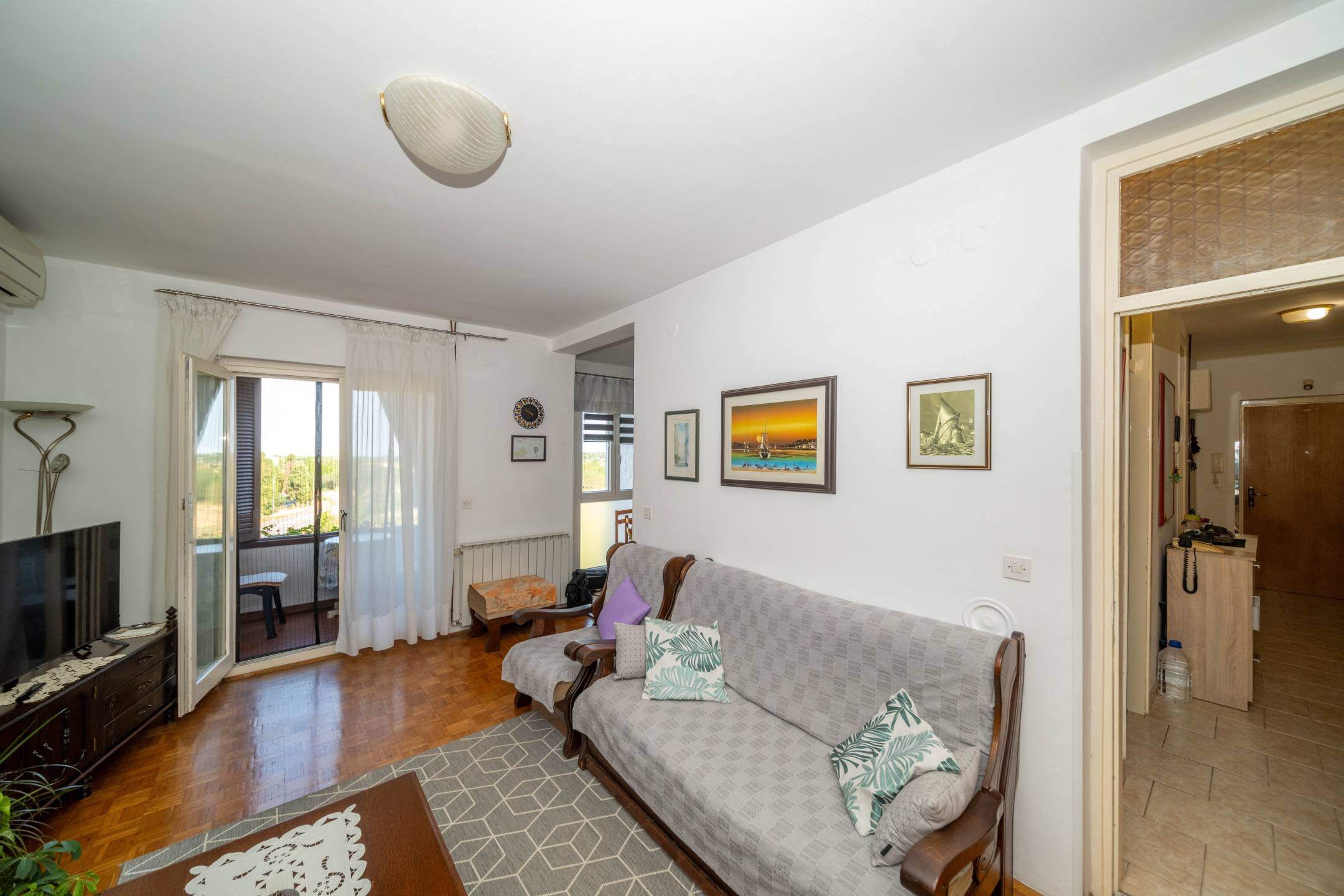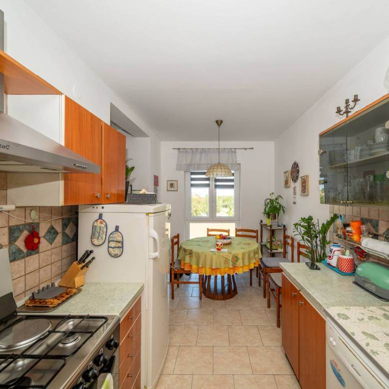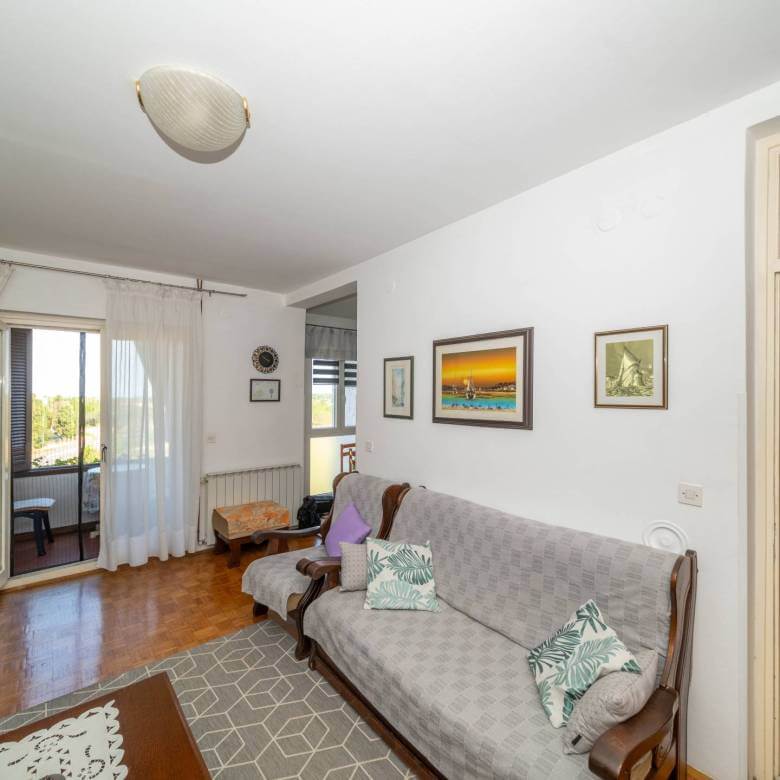 Zum Verkauf steht eine geräumige und voll möblierte 80 m² große Wohnung mit wunderschönem, freiem Blick auf den Yachthafen und das Meer. Sie befindet sich im dritten Stock eines gepflegten Wohngebäudes in einem der begehrtesten Viertel von Umag. Die Wohnung besteht aus einem Eingangsbereich, einer Küche, einem geräumigen Wohnzimmer, einem Badezimmer, zwei Schlafzimmern, einem Hauswirtschaftsraum und zwei Terrassen in Form einer Loggia, von denen eine einen spektakulären Blick auf den Yachthafen von Umag und die Adria bietet. Zum Anwesen gehören zusätzlich ein Abstellraum im Keller des Gebäudes und ein überdachter Parkplatz in unmittelbarer Nähe des Gebäudes, was zusätzlichen Komfort und Sicherheit gewährleistet.