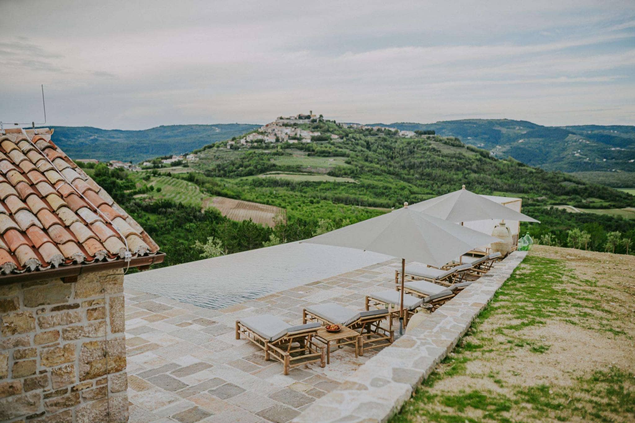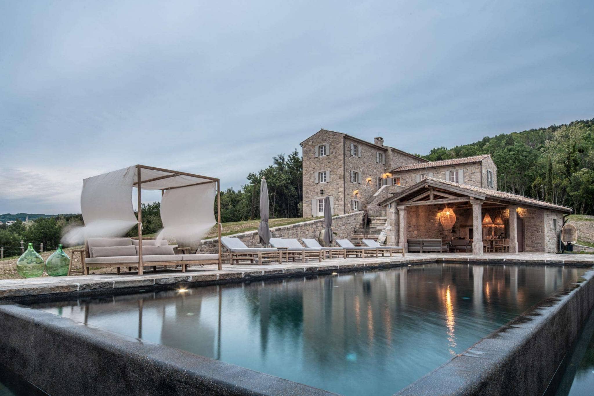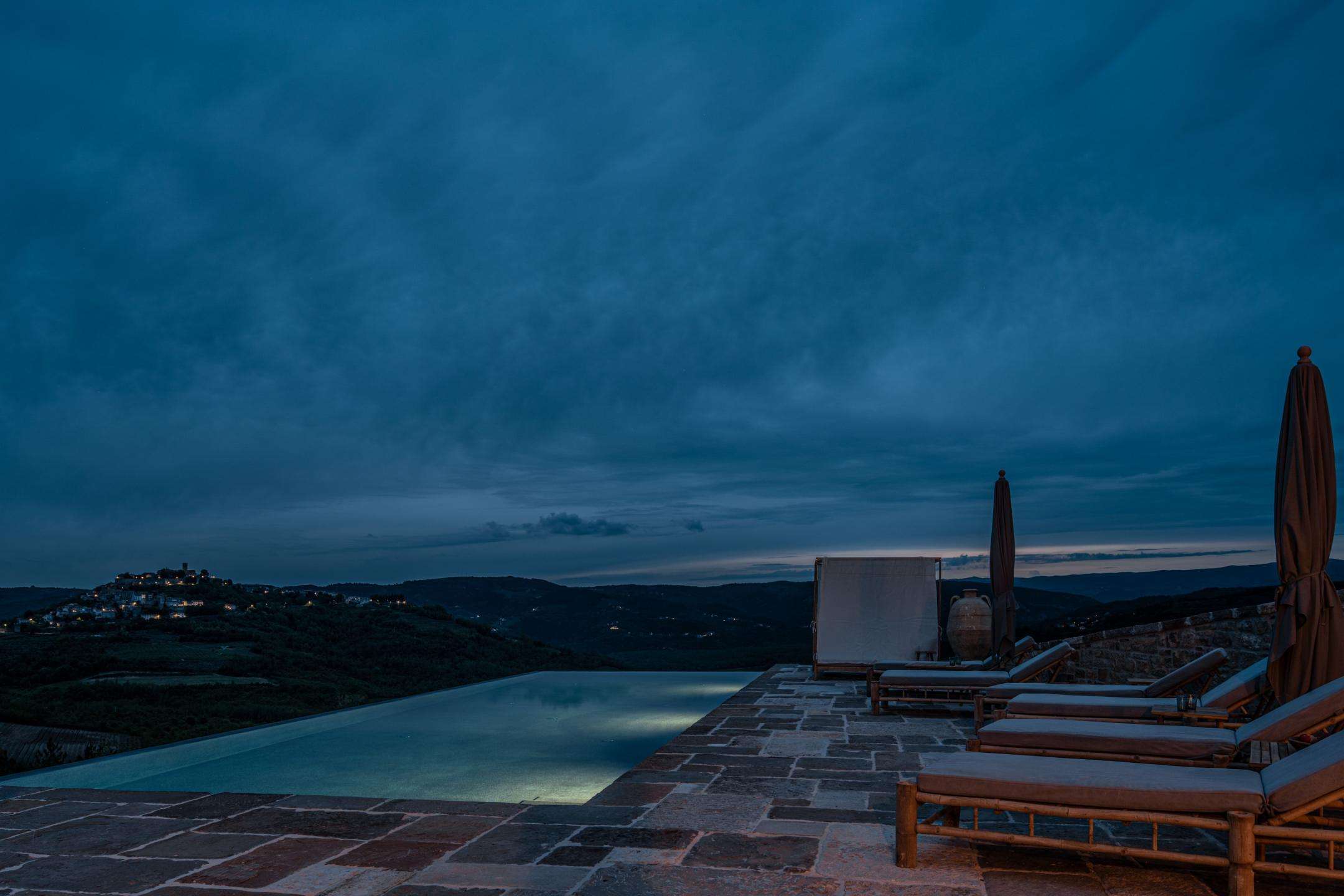 Geräumiges Bauernhaus aus Stein aus dem frühen 17. Jahrhundert. Makellos restauriert mit honigfarbenem Stein, antiken Eichenbalken, Cotto-Fliesen und Öko-Farben auf Kalkbasis. Fünf elegante Schlafzimmer mit en-suite Badezimmern. Zwei Wohnzimmer mit sichtbaren Eichenbalken und Kamin. Bescheidener Luxus mit natürlichen Materialien, antiken Möbeln, Beleuchtung und Kunst aus Asien und Afrika. Separates Studio mit Küchenzeile. Umfangreiche überdachte Terrasse mit Esstisch für 10 Personen und Lounges. Poolhaus mit Badezimmer und Sommerküche, Esstisch für 10 Personen und Sofas. Meerwasser-Infinity-Pool 14×5 m mit atemberaubendem Blick auf Motovun.