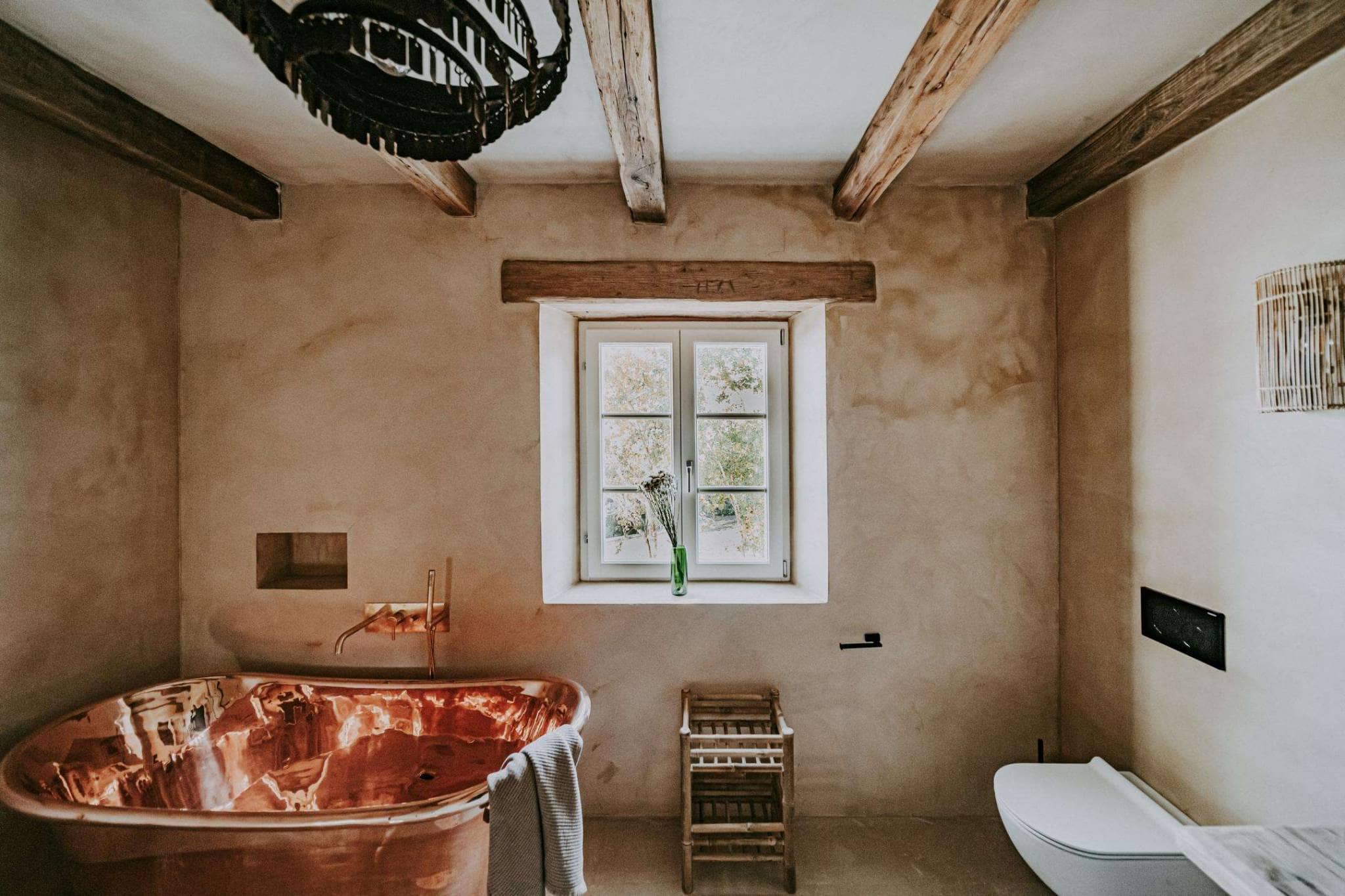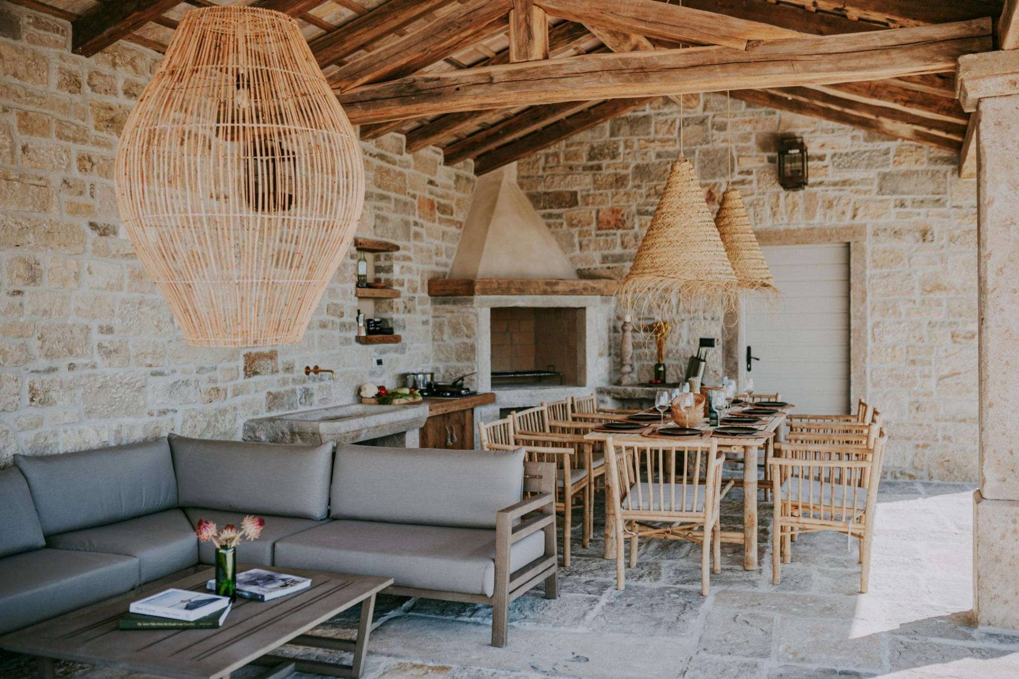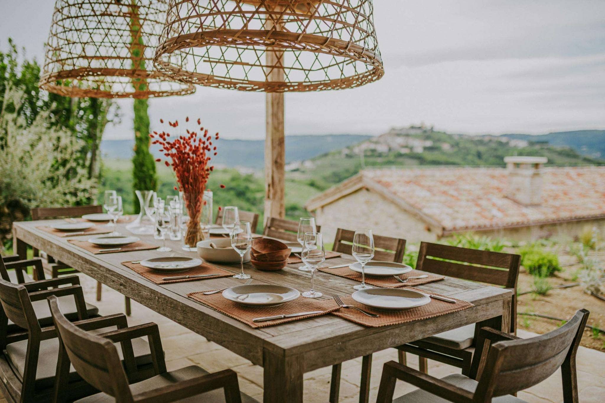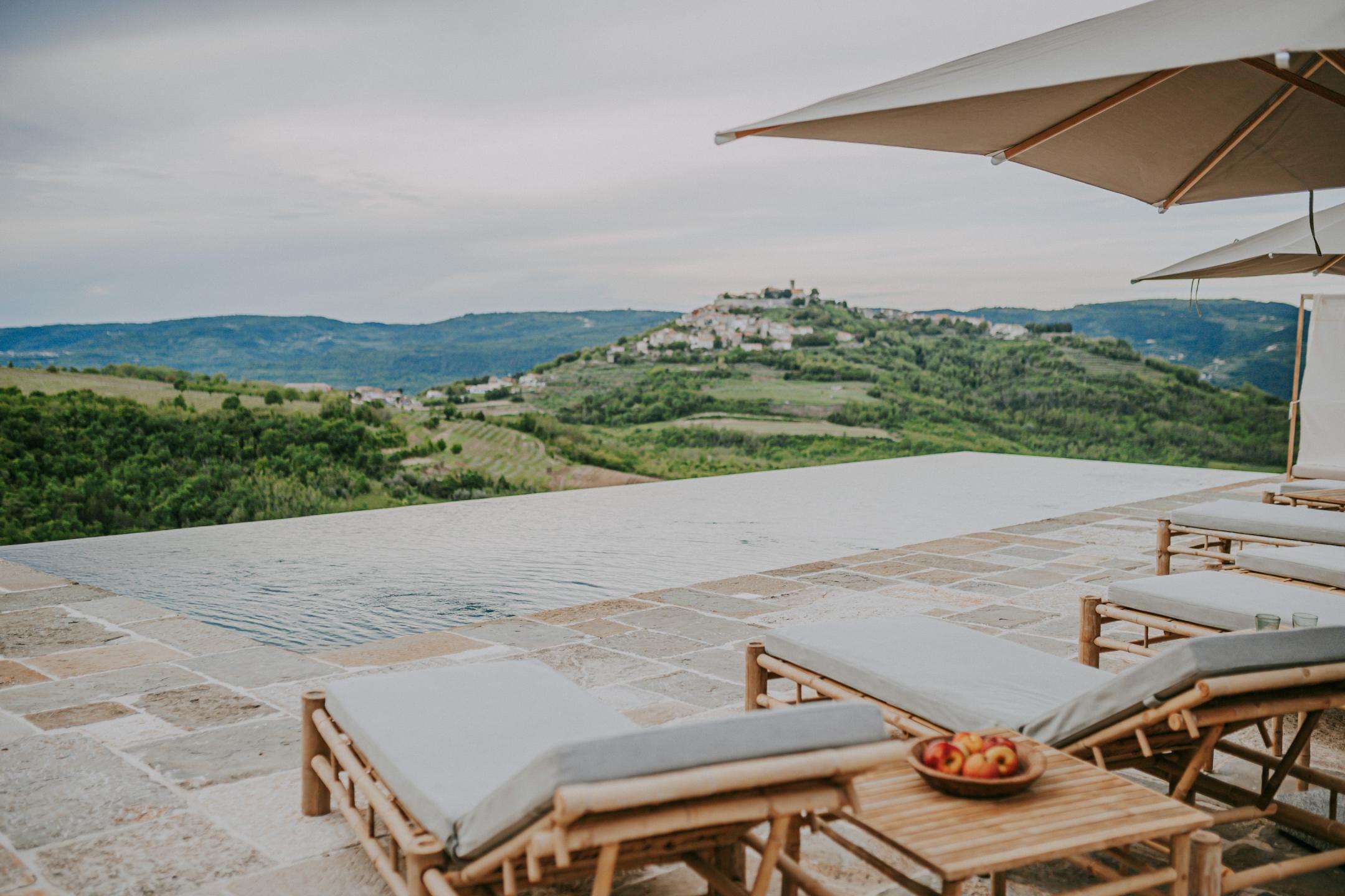 Geräumiges Bauernhaus aus Stein aus dem frühen 17. Jahrhundert. Makellos restauriert mit honigfarbenem Stein, antiken Eichenbalken, Cotto-Fliesen und Öko-Farben auf Kalkbasis. Fünf elegante Schlafzimmer mit en-suite Badezimmern. Zwei Wohnzimmer mit sichtbaren Eichenbalken und Kamin. Bescheidener Luxus mit natürlichen Materialien, antiken Möbeln, Beleuchtung und Kunst aus Asien und Afrika. Separates Studio mit Küchenzeile. Umfangreiche überdachte Terrasse mit Esstisch für 10 Personen und Lounges. Poolhaus mit Badezimmer und Sommerküche, Esstisch für 10 Personen und Sofas. Meerwasser-Infinity-Pool 14×5 m mit atemberaubendem Blick auf Motovun.