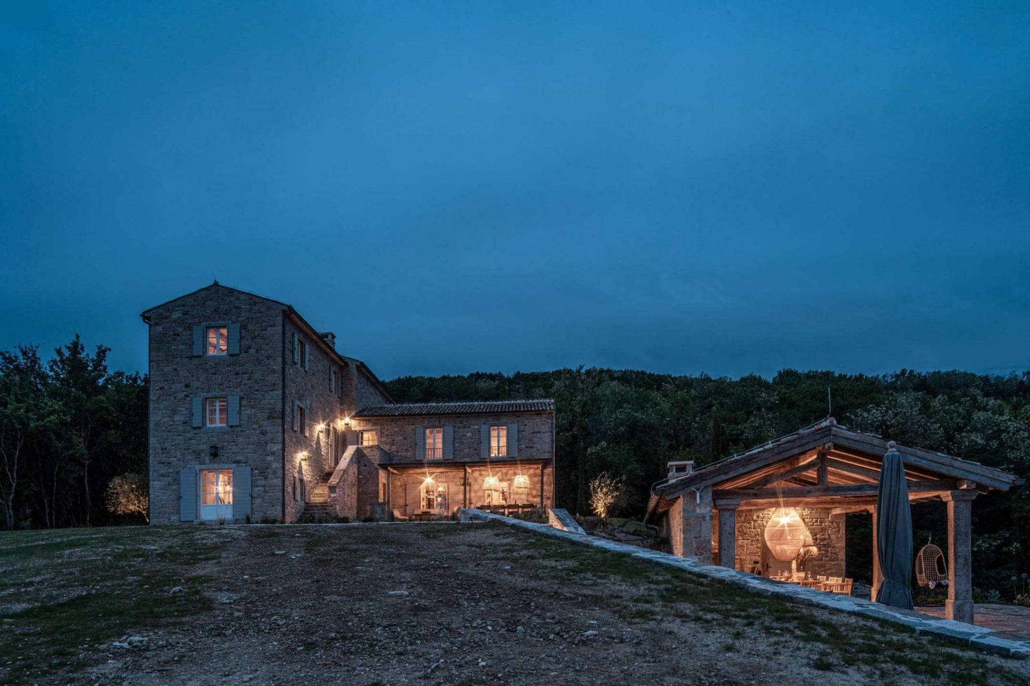 Völlig abgeschiedenes luxuriöses Anwesen in der Nähe von Motovun mit 60.000 m² großem Grundstück. Das Bauernhaus stammt aus dem Jahr 1614 und wurde zwischen 2019 und 2021 tadellos restauriert. Etwa 460 m² Wohnfläche mit 5 Schlafzimmern, separatem Studio, Poolhaus mit Sommerküche und 14 x 5 m Infinity-Salzwasserpool. Atemberaubende Aussicht auf die Festungsstadt Motovun, Weinberge, Olivenhaine und Trüffelwälder.