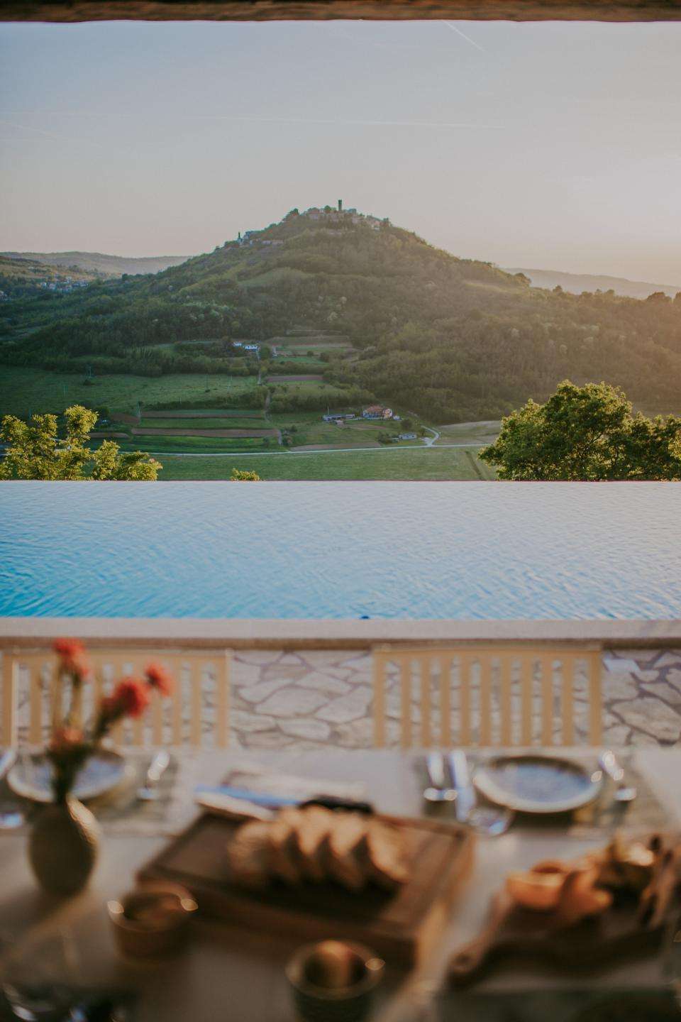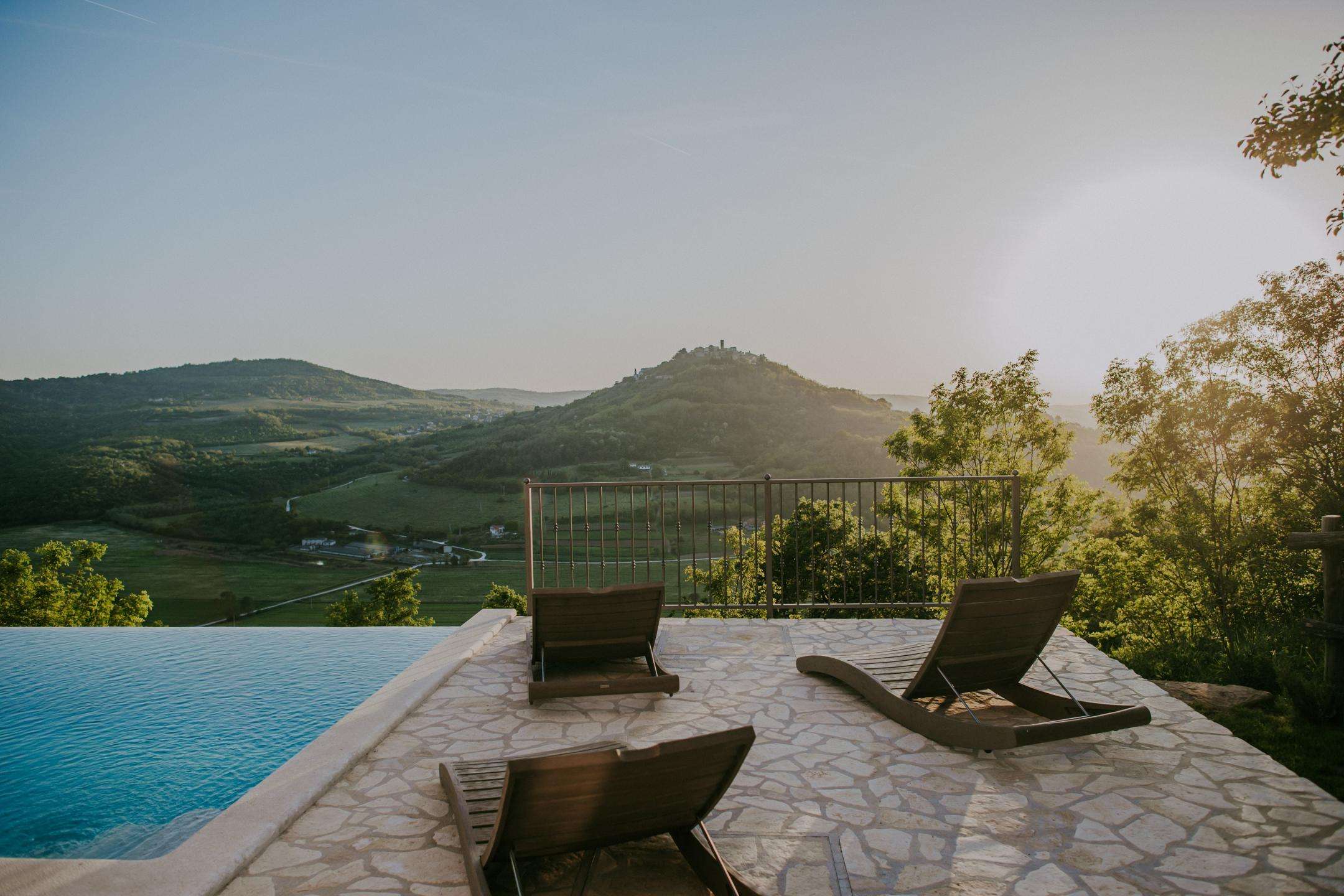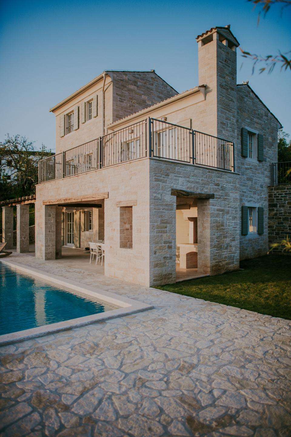 Die Villa wurde im traditionellen istrischen Steinbaustil erbaut und strahlt rustikalen Charme aus, wobei besonderes Augenmerk auf elegante Details gelegt wird. Auf dem benachbarten Hügel können Sie die schöne Aussicht auf grüne Weinberge, Olivenhaine und das charmante Motovun genießen.