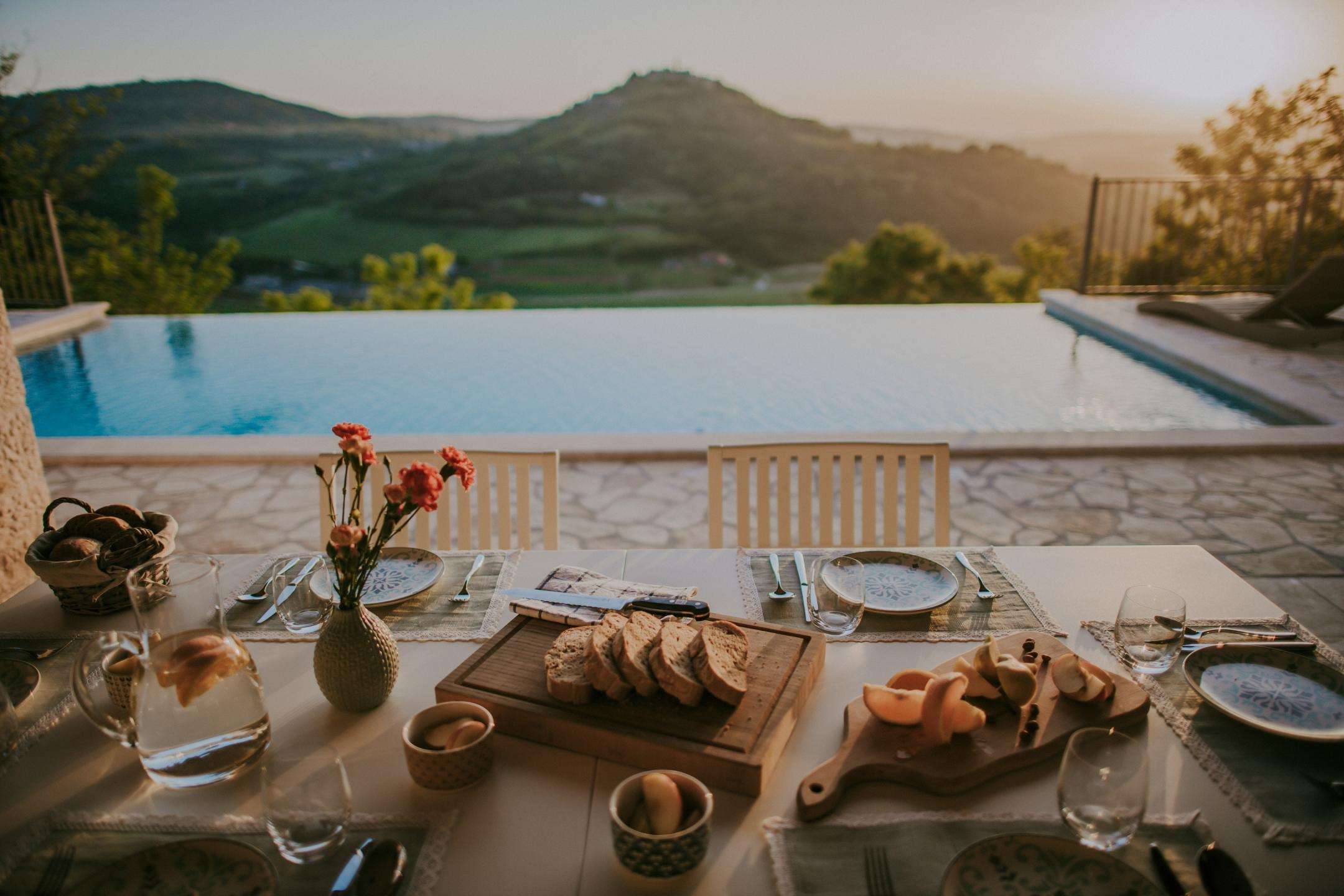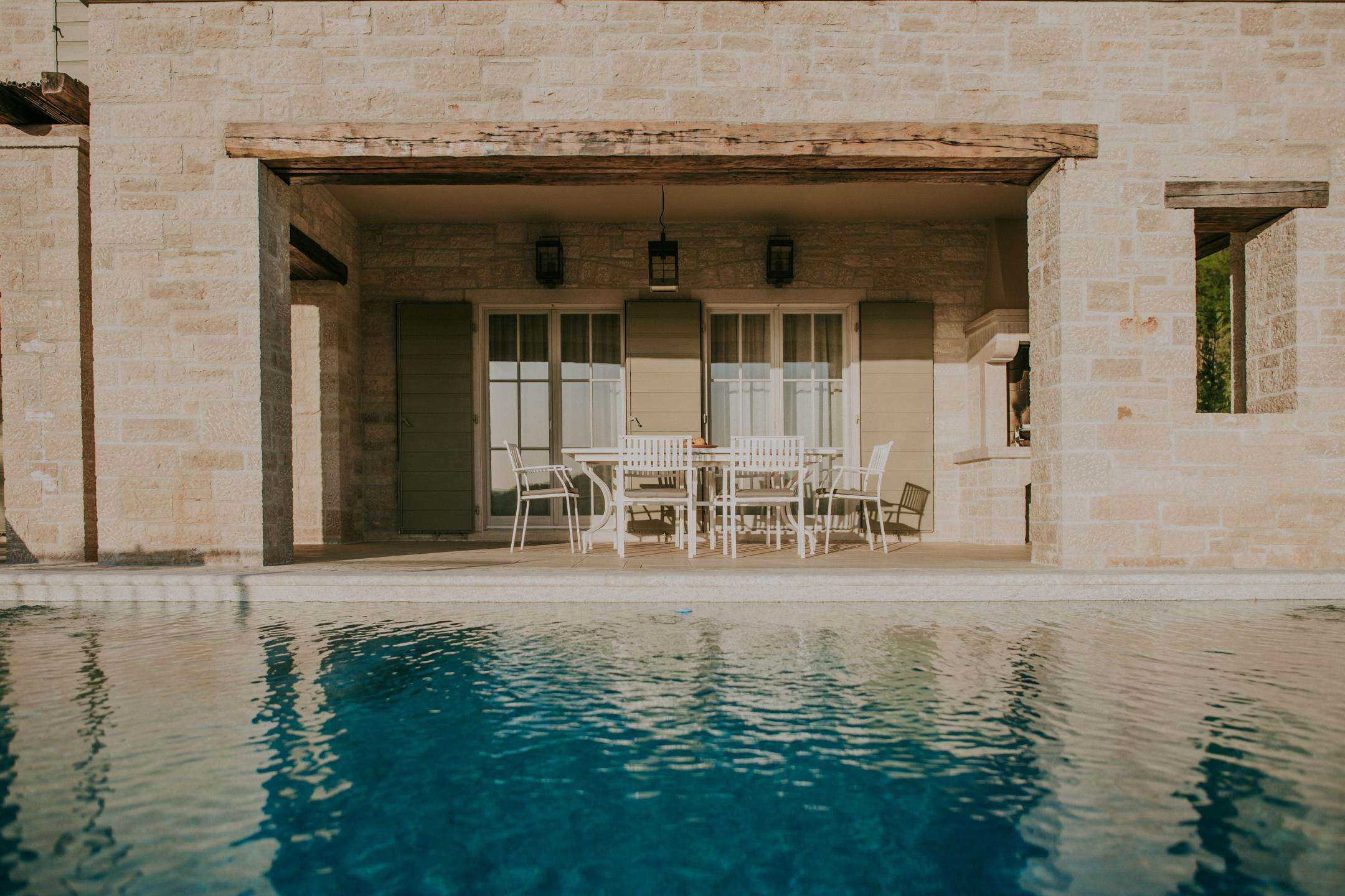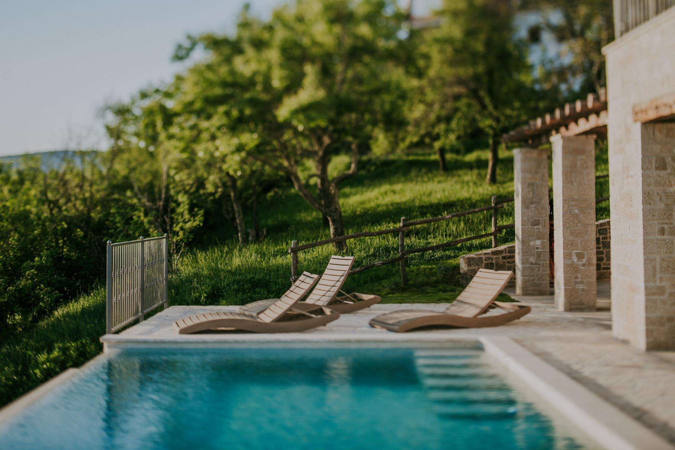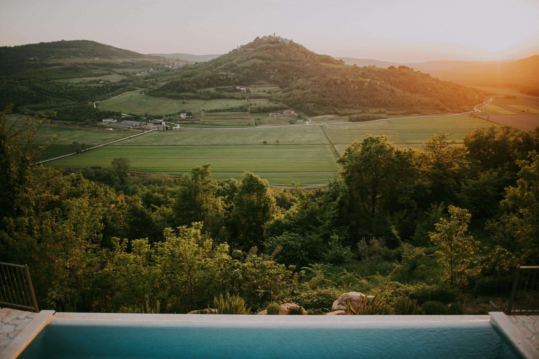 Die Villa wurde im traditionellen istrischen Steinbaustil erbaut und strahlt rustikalen Charme aus, wobei besonderes Augenmerk auf elegante Details gelegt wird. Auf dem benachbarten Hügel können Sie die schöne Aussicht auf grüne Weinberge, Olivenhaine und das charmante Motovun genießen.
