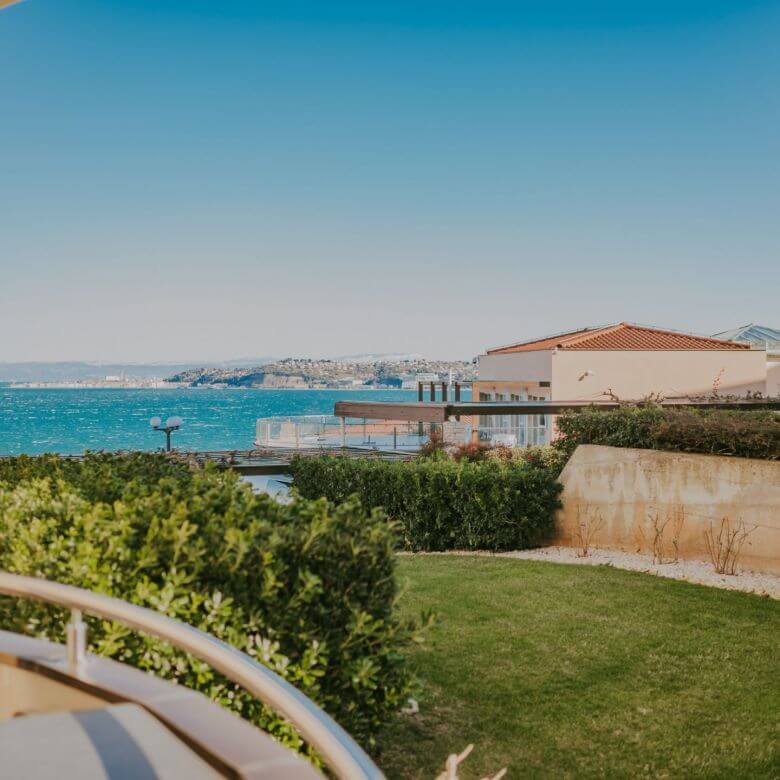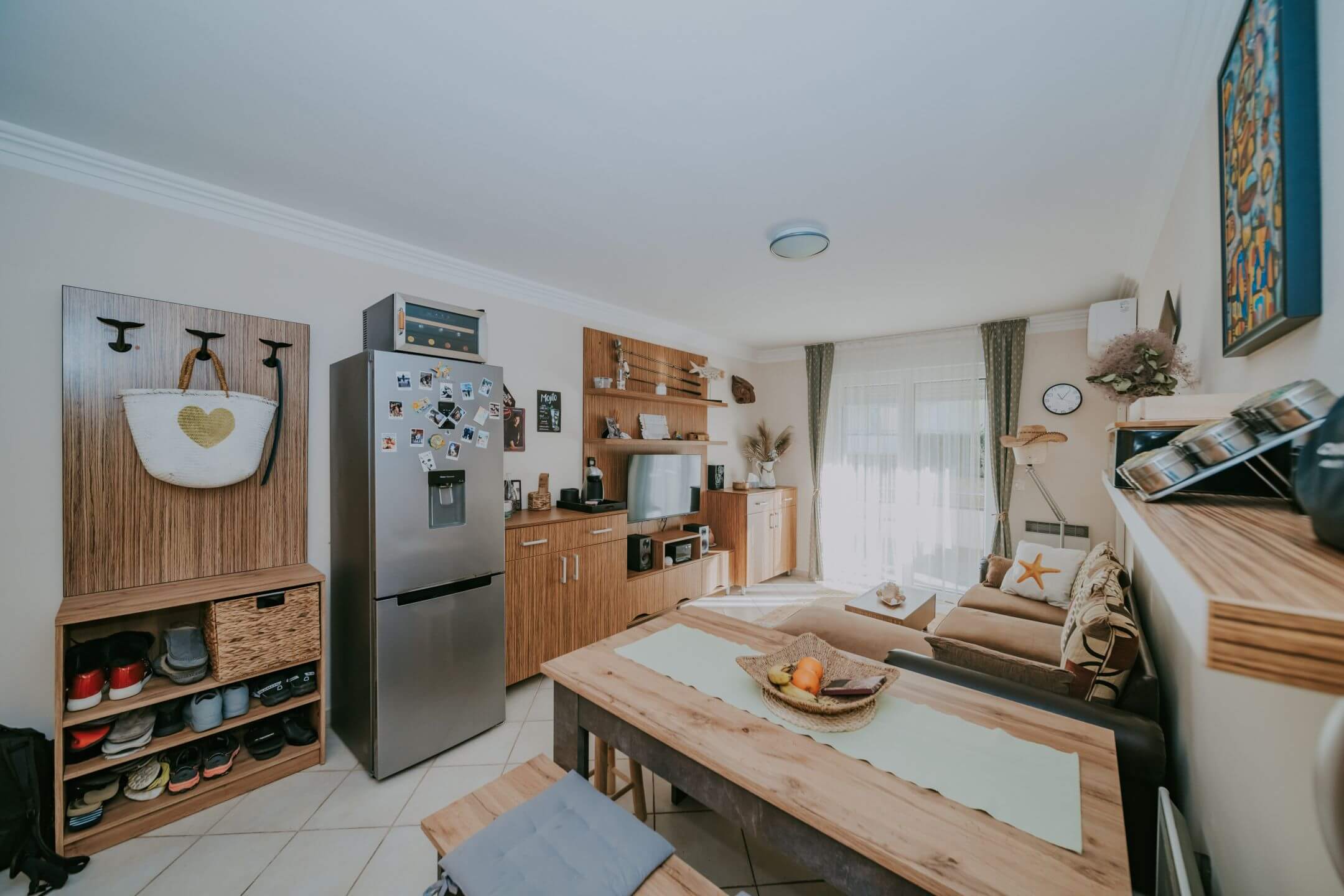 Apartman se nalazi na atraktivnoj lokaciji u naselju, samo 150 metara od mora i lijepih i uređenih plaža. U sklopu naselja korisnici mogu koristiti bazen, teniski teren, golf teren, fitness itd. U blizini se nalaze brojni restorani, kafići, šetnice i razni drugi sadržaji. S obzirom na položaj i blizinu svih potrebnih sadržaja, apartman je idealan za odmor, ali i turističku namjenu.