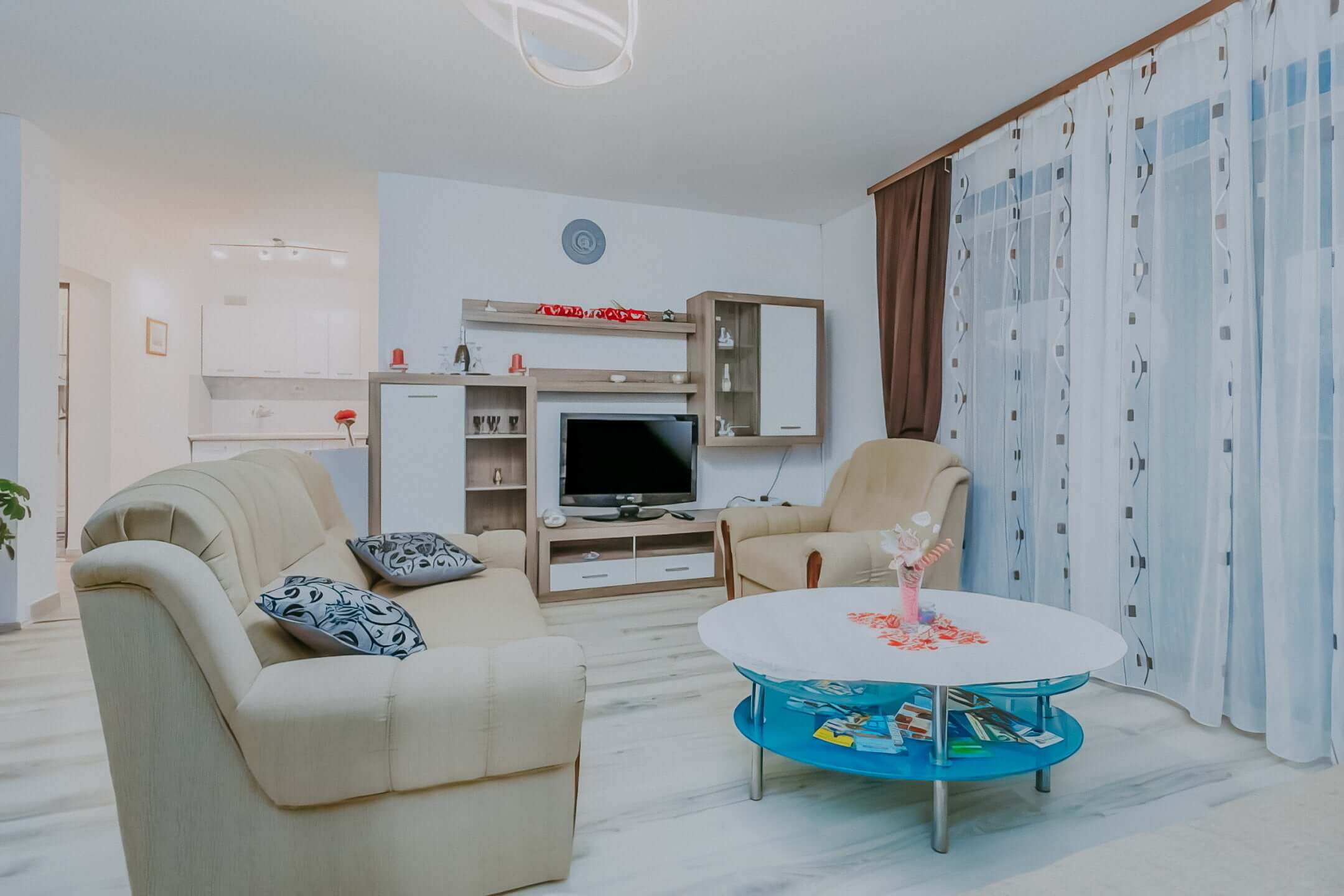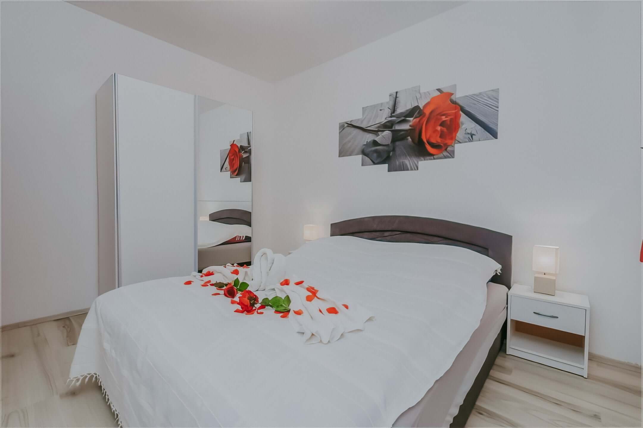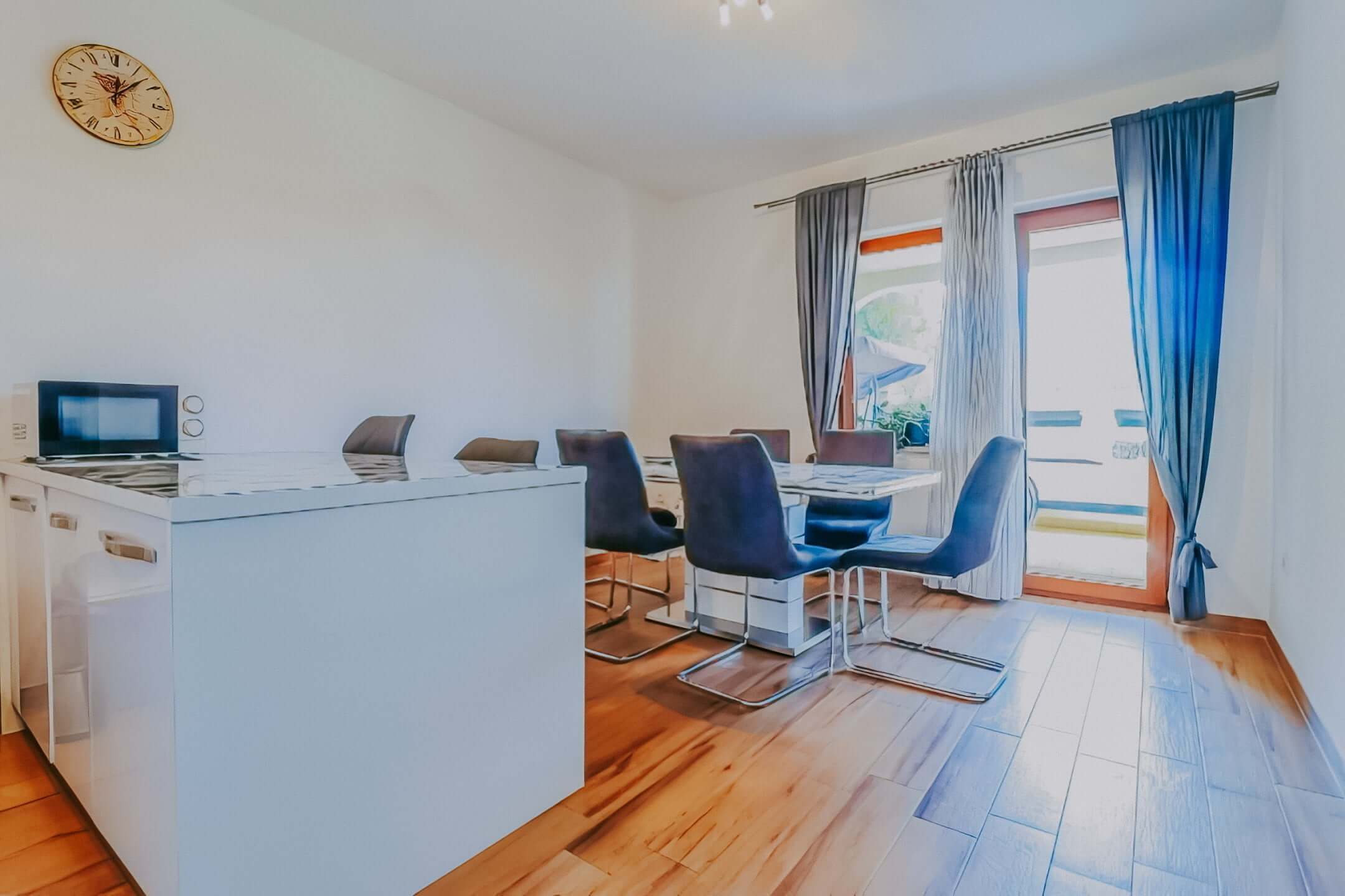 Prodaje se ova prostrana apartmanska kuća sa pet apartmana i pogledom na more u predgrađu Poreča. Kuća ima tri etaže i ukupne površine 390 m². Kuća se uspješno iznajmljuje u ljetnoj sezoni tako da se može nastaviti sa uslugom iznajmljivanja. U prizemlju se nalazi jedan apartman koji se sastoji od prostranog dnevnog boravka, kuhinje, blagovaonice sa izlazom na natkrivenu terasu, dvije spavaće sobe i kupaonice. Na prvom i drugom katu nalaze se dva apartmana koji su također potpuno opremljeni sa kuhinjom, blagovaonicom, dnevnim boravkom, kupaonicom, a svaki apartman ima svoju terasu. Kuća je orijentirana prema jugozapadu, tako da u večernjim satima možete uživati u zalasku sunca i pogledu na more.