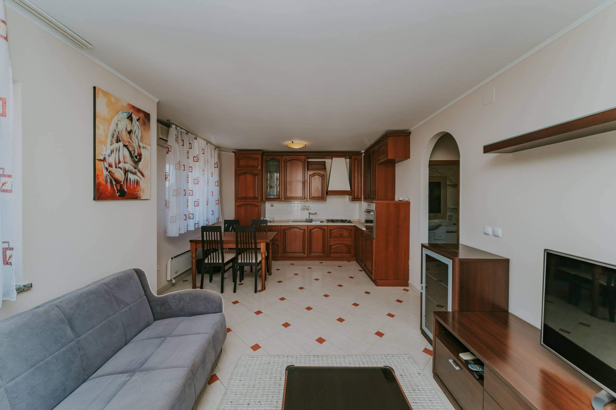 Ekskluzivan! Prodaje se lijepo uređen stan na odličnoj lokaciji u Umagu! Ukupna površina nekretnine je 70 m² i nalazi se na prvom katu manje stambene zgrade. Površina stana je 49 m². Stan se sastoji od ulaznog hodnika, dnevnog boravka s kuhinjom i blagovaonicom, kupaonice, spavaće sobe i prostrane natkrivene terase. Kupaonica je kompletno renovirana! Stanu pripada i velika ostava u podrumu zgrade od 7 m² te vlastito parkirno mjesto od 14 m². Grije se i hladi klima uređajem i električnim grijačima. Prodaje se kompletno namještena i odmah useljiva.