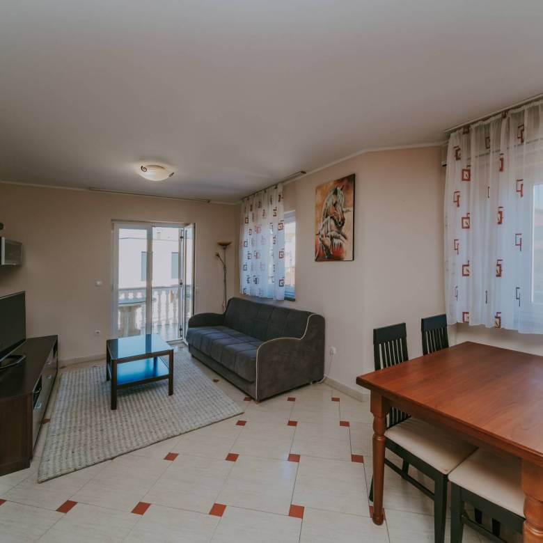 Nalazi se na lijepoj, mirnoj lokaciji u Umagu, 500 metara od mora. U neposrednoj blizini nalaze se trgovine, centar grada s restoranima, obalna šetnica, plaže i razni drugi zanimljivi sadržaji. S obzirom na položaj i blizinu svih potrebnih sadržaja, stan je idealan za stanovanje, odmor, ali iu turističke svrhe.