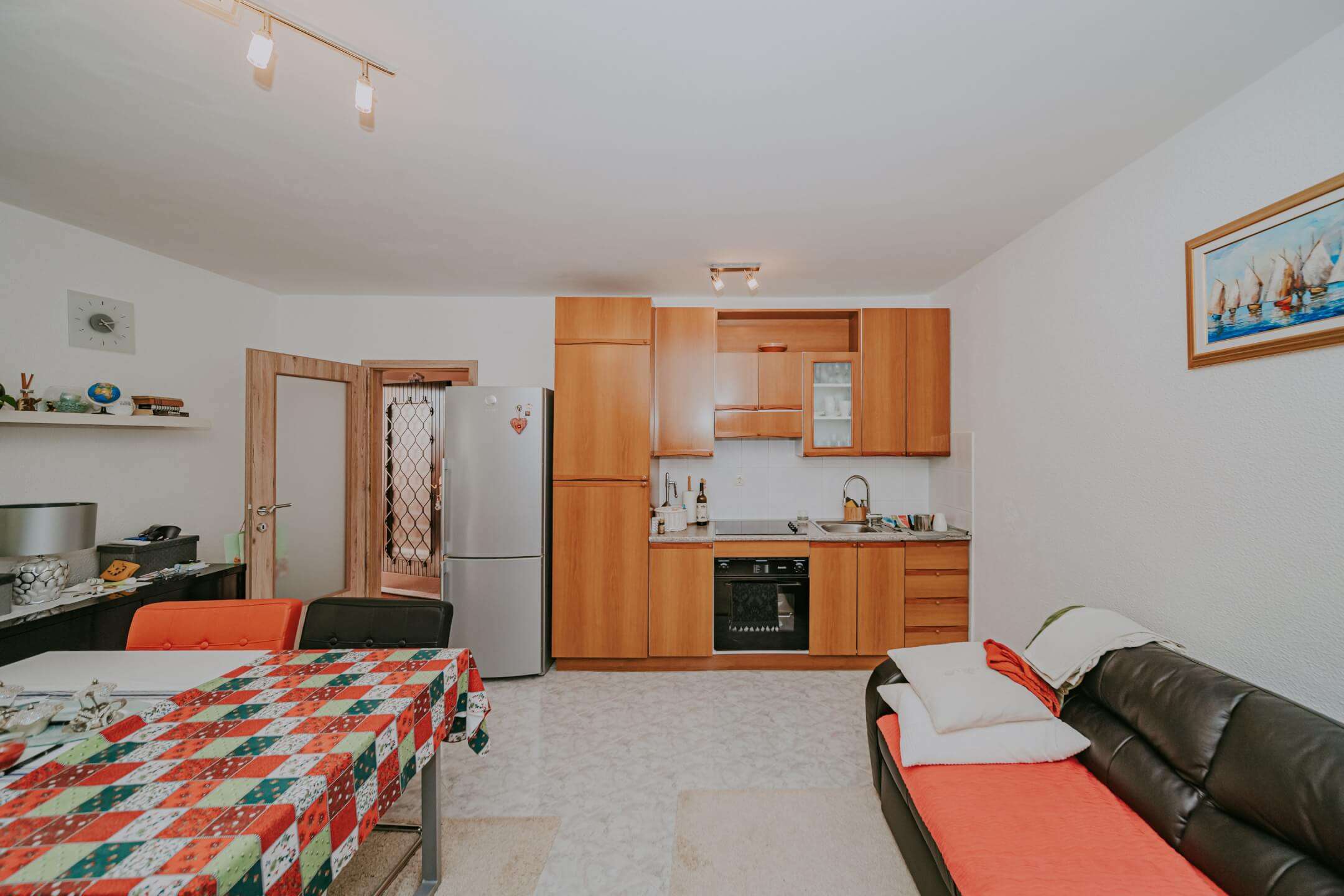 U neposrednoj blizini Umaga prodaje se kvalitetno renovirana samostojeća kuća sa 4 stana. Kuća je površine 180,50 m² i nalazi se na prostranoj parceli od 600 m2. U prizemlju kuće nalazi se jednosobni stan i garaža sa kupaonicom koja se može preurediti u dodatnu garsonijeru. U prizemlju se također nalazi manji apartman ili garsonijera sa zasebnom sobom i velikom natkrivenom terasom koju je moguće dodatno izolirati i time dobiti dodatni prostor od cca. 15 m². Ovdje se nalazi i praktičan mali podrum koji je kasnije pretvoren u mini kuhinju s perilicom posuđa, štednjakom i pećnicom.