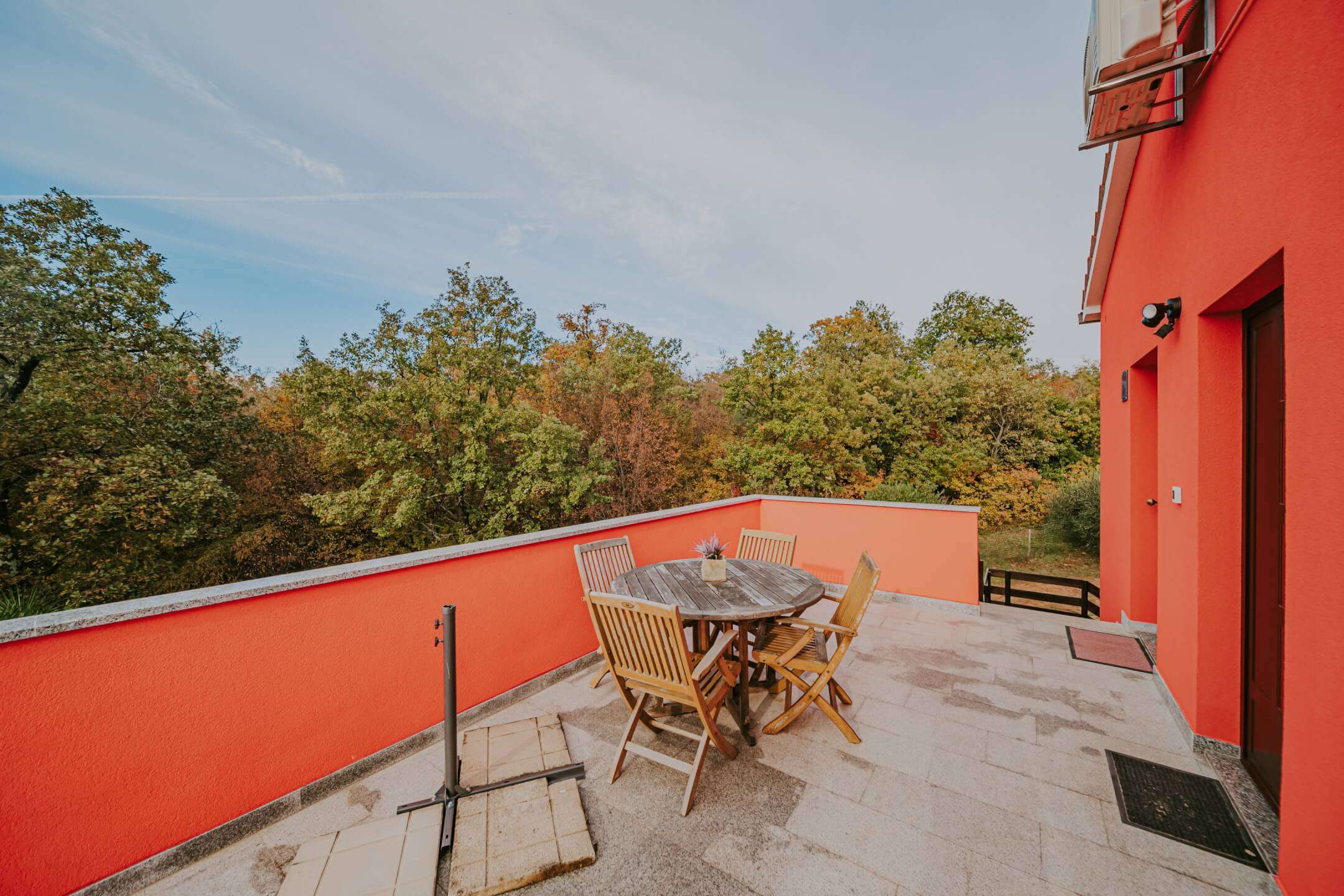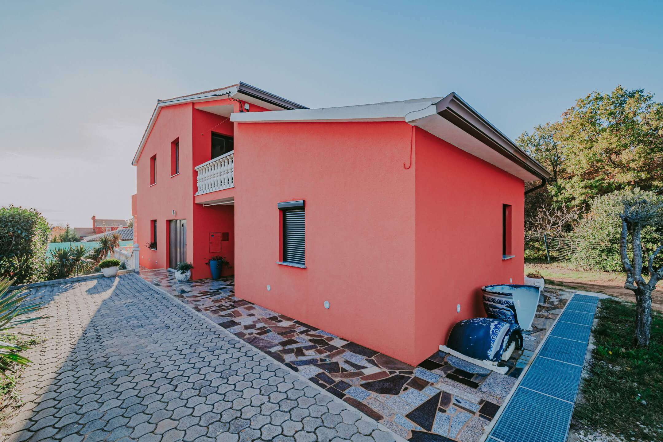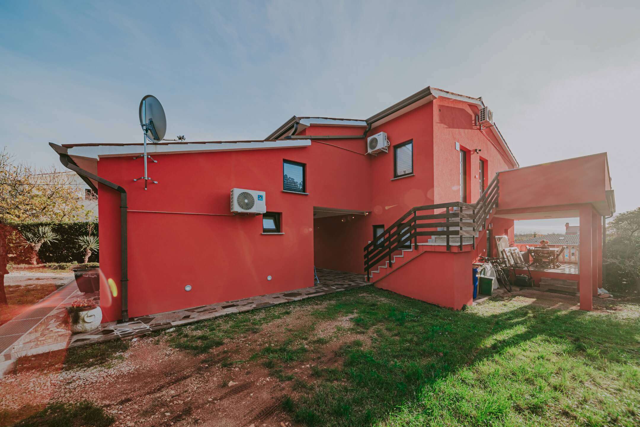Kuća ima centralno grijanje na lož ulje te se dodatno hladi klima uređajima. Vanjska izolacija je urađena 2015. godine, a tada je dodana nova fasada. Udaljenost do plaže je 1 km, a do grada Umaga 6 km.