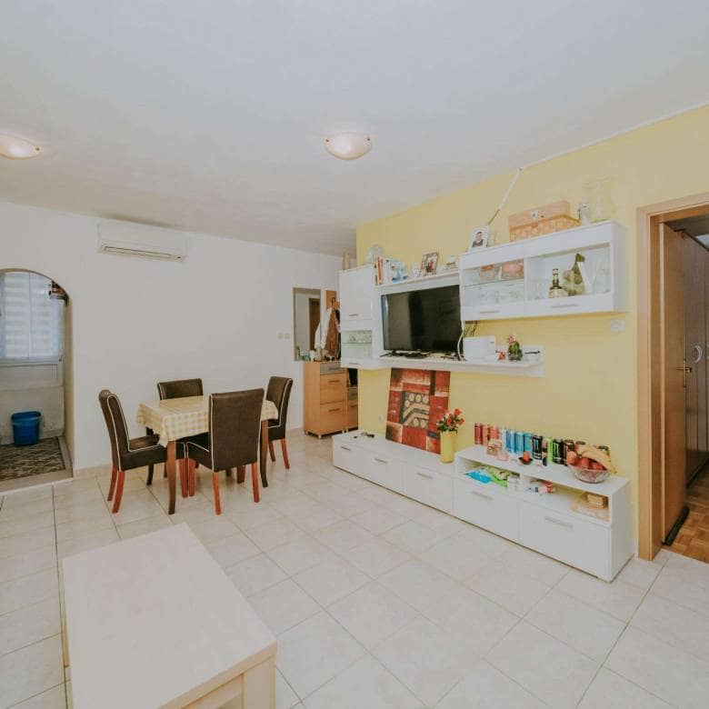 Sastoji se od dnevnog boravka s blagovaonicom, kuhinje, dvije spavaće sobe, kupaonice, ostave, hodnika i terase. Uređena plaža nalazi se u neposrednoj blizini apartmana, au blizini se nalaze brojni restorani, kafići, trgovine, park, igralište, šetnice i razni drugi sadržaji. S obzirom na atraktivnu lokaciju i blizinu svih potrebnih sadržaja, stan je idealan za stanovanje, odmor, ali iu turističke svrhe.