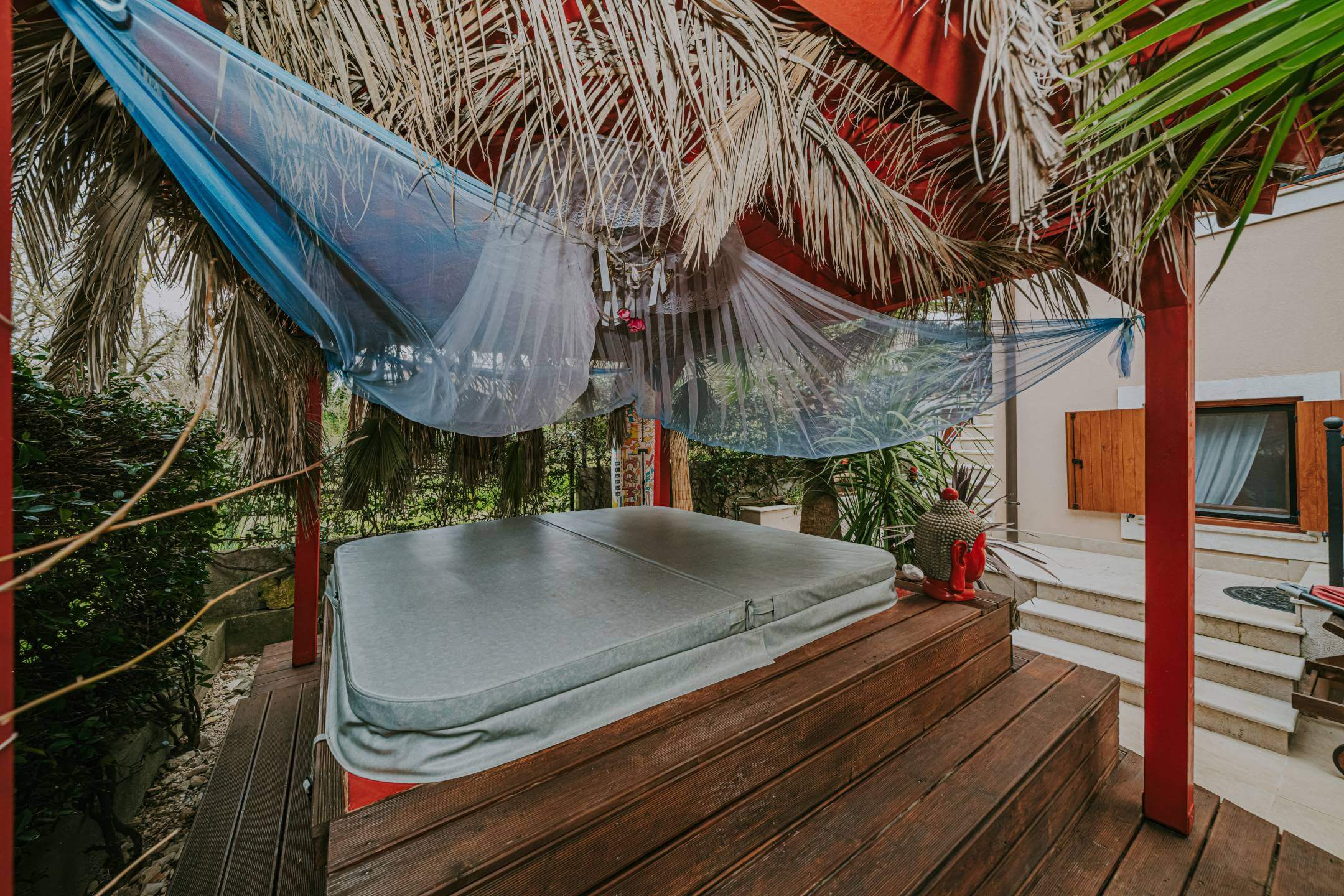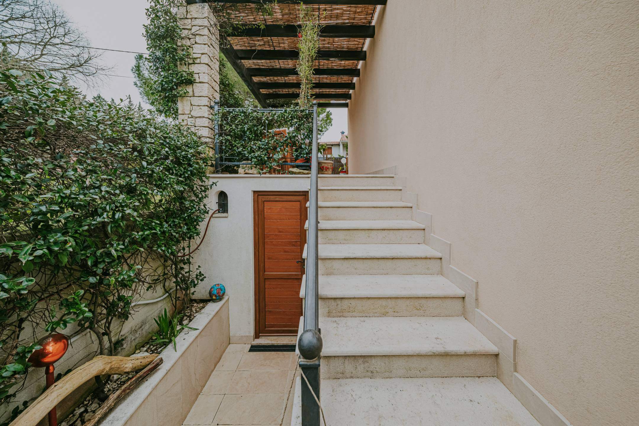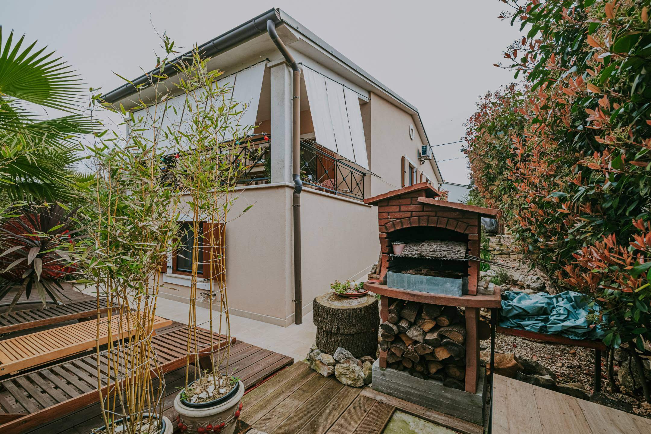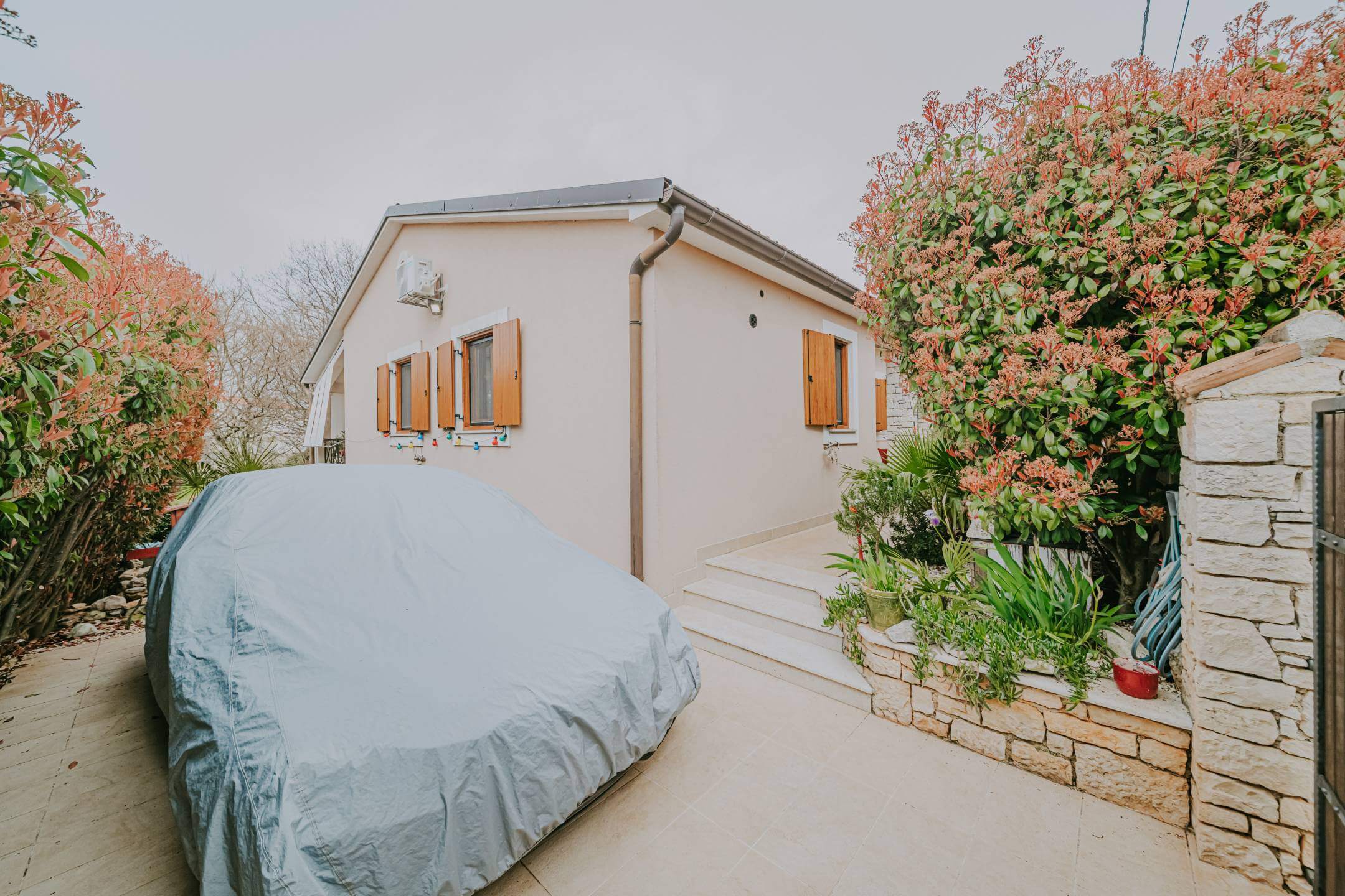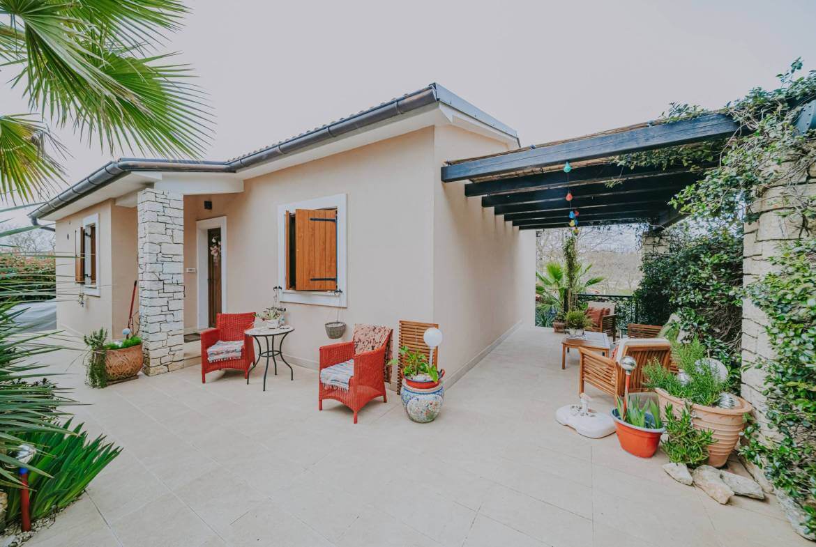 Casa indipendente in vendita nelle immediate vicinanze di Marčana. Superficie abitabile totale di 172 m² distribuita su due piani e due unità abitative. L'unità superiore contiene un ingresso, due camere da letto, uno spogliatoio, una cucina in pietra con soggiorno, un bagno e un'ampia terrazza coperta. Il piano terra comprende una cucina rustica in pietra con soggiorno e camino, un bagno, un corridoio, un ripostiglio, una camera da letto e una sauna privata! La casa è riscaldata da un sistema centrale a gas e aria condizionata. Il giardino di 330 m² contiene una jacuzzi per sei persone, una tettoia, un barbecue all'aperto, un posto auto, una pergola e un ripostiglio all'aperto. Ogni piano ha un ingresso separato. La casa è stata costruita nel 2016 con materiali di alta qualità come ceramica in pietra, legno massello e parquet di qualità, e viene venduta completamente arredata.