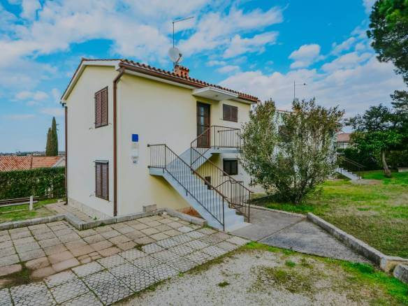 In vendita è un complesso di due case a Dajla vicino a Cittanova, ciascuna con 2 unità abitative, con un totale di 4 appartamenti e una vista aperta sul mare! Si trovano in una posizione molto desiderabile, a soli 100 metri dal mare e dalla spiaggia. Ogni casa copre un totale di 132 m² e il terreno ha una superficie totale di 1002 m².