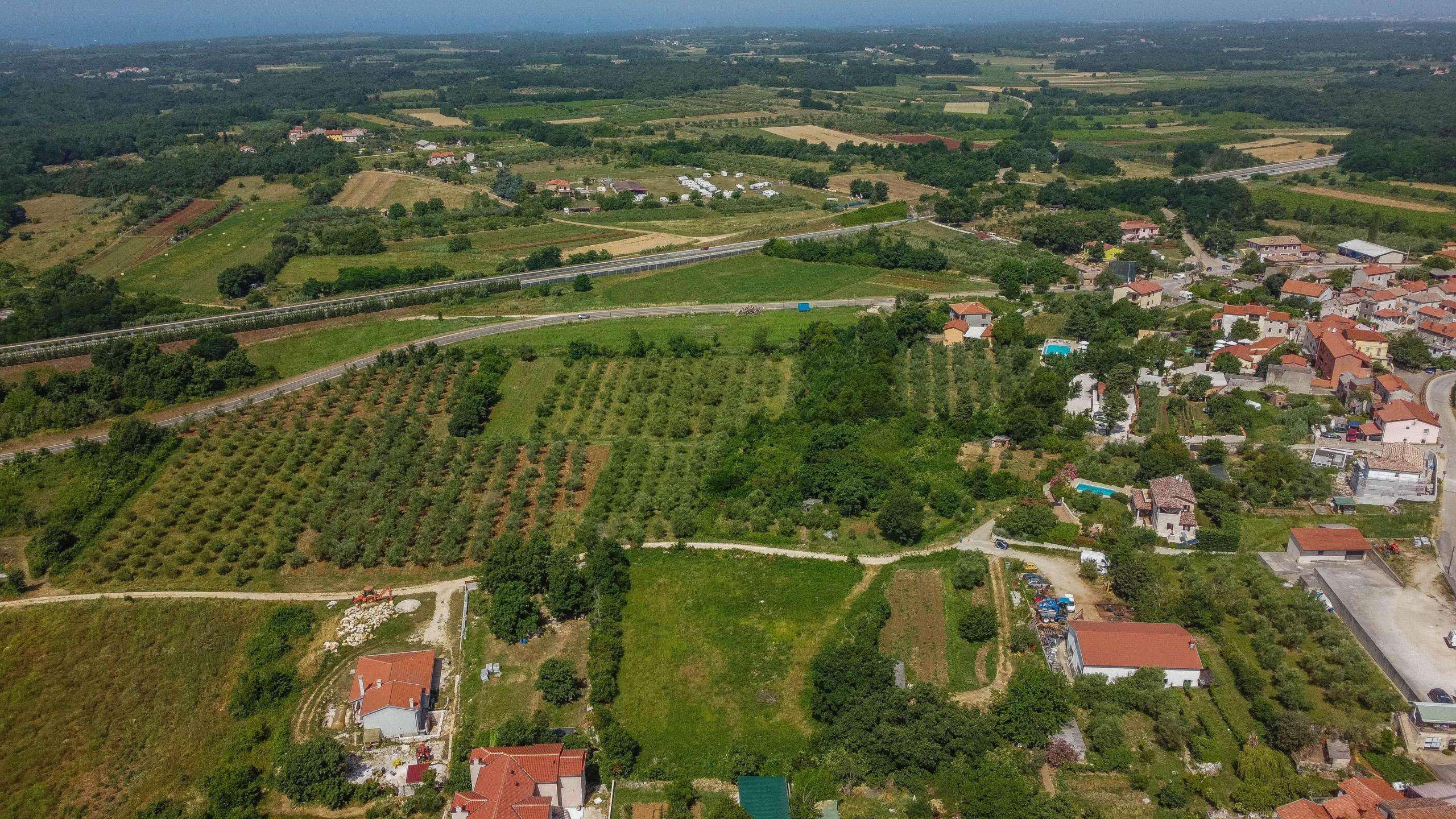A beautiful spacious building plot of 3618 m² in Brtonigla for sale. The land is of regular shape, flat surface, with infrastructure close to the terrain and access road. It is on the edge of the construction zone and is surrounded by greenery. The center of Brtonigla is only a few steps away, and Novigrad, the sea and the beaches are a 10-minute drive away. An ideal opportunity for investors to build more houses for rent or rent for tourist purposes.