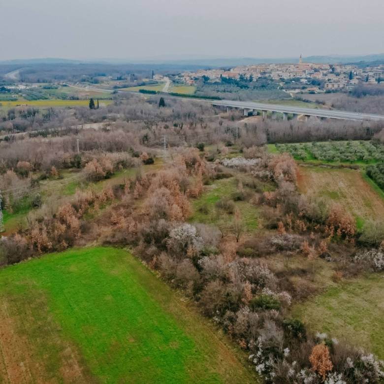 Agricultural land for sale located near Brtonigla and the highway. The size of the land is 6075 m². The land has a nice rectangular shape and is located next to the tourist cave Mramornica. Water and electricity are located in the immediate vicinity of the plot. Access to the land is provided from the public area via a macadam road.