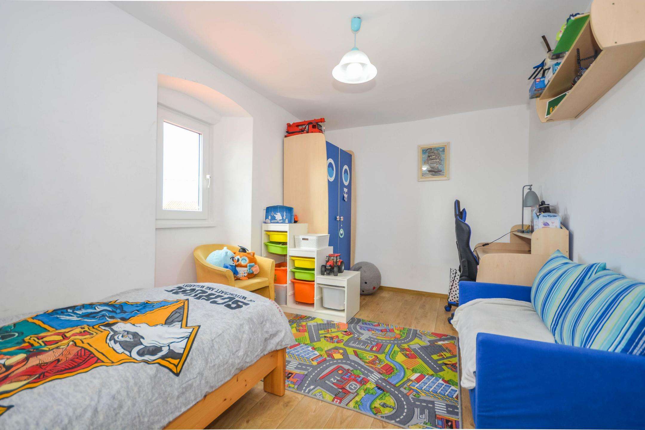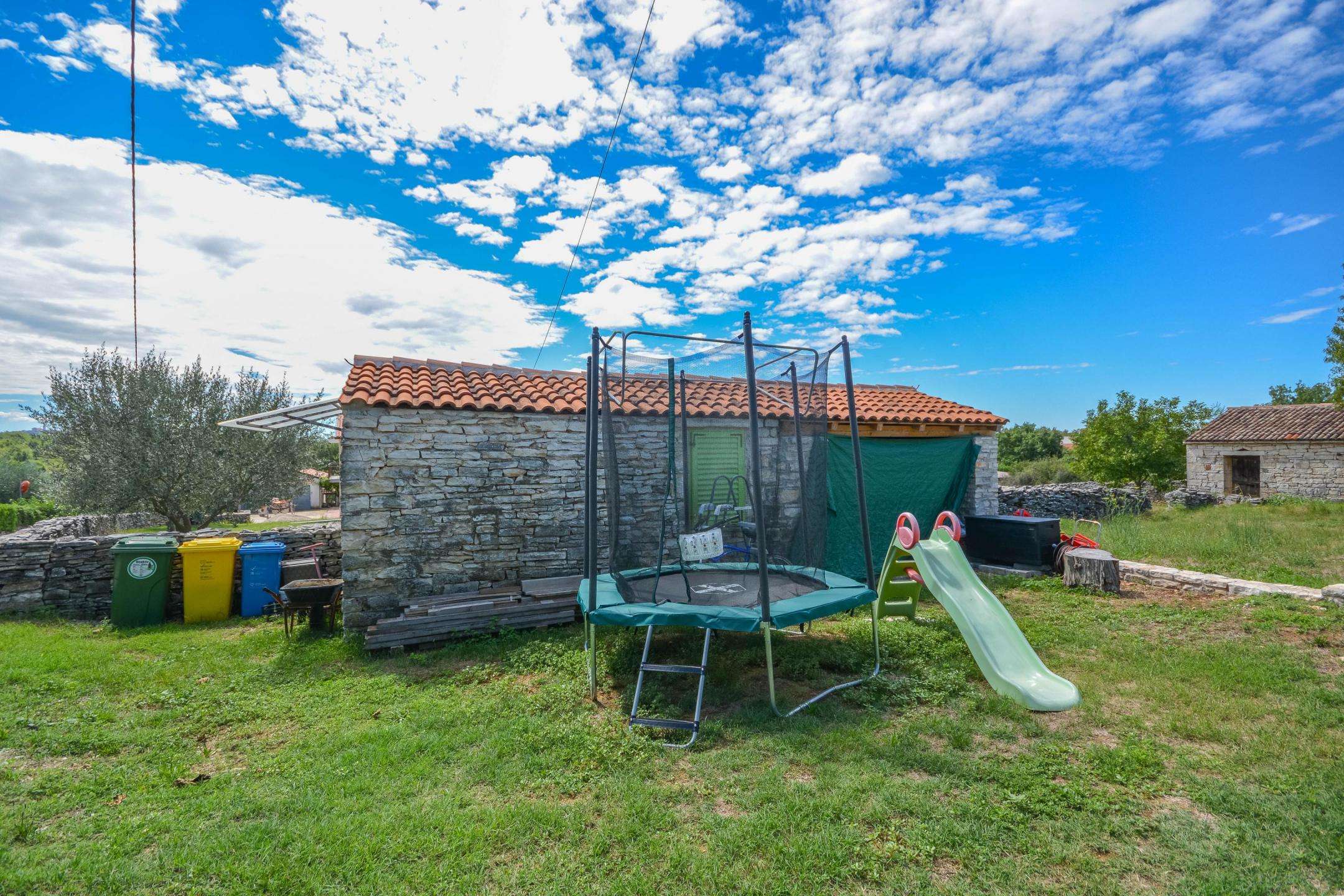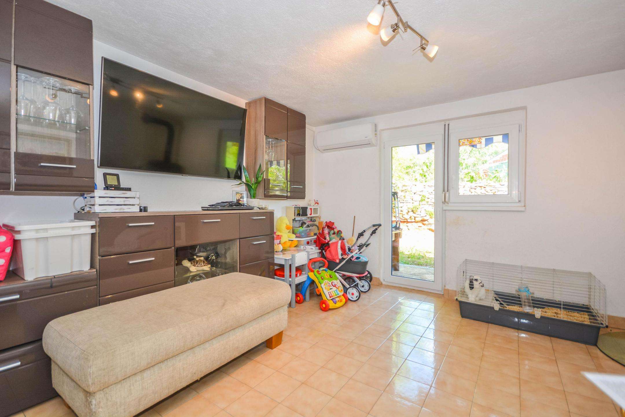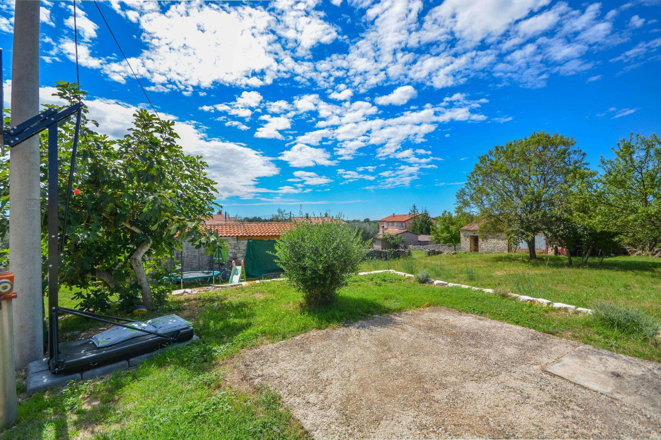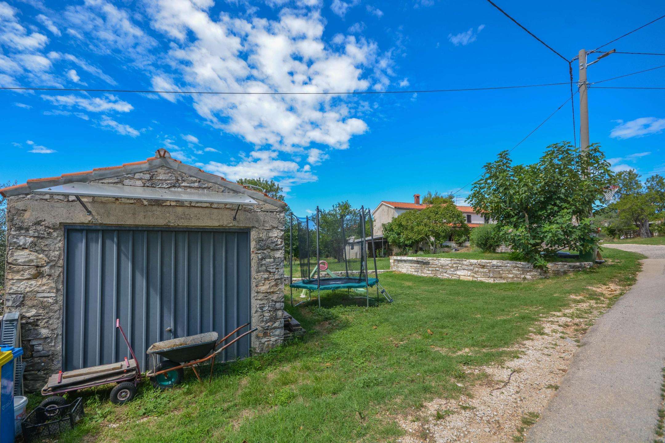 The yard is 300 m² in size. In the garden there is also a garage, a storage room and a parking space. The house is located near the highway and the border with Slovenia, restaurants, wineries, agrotourism, bicycle paths, and the sea, which is only a few minutes’ drive away. This property is ideal for vacation and tourist rental, but also for family life.