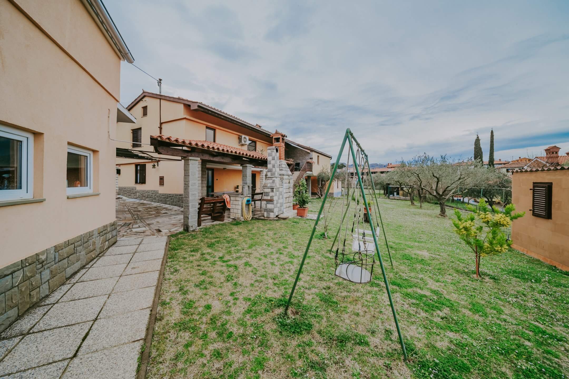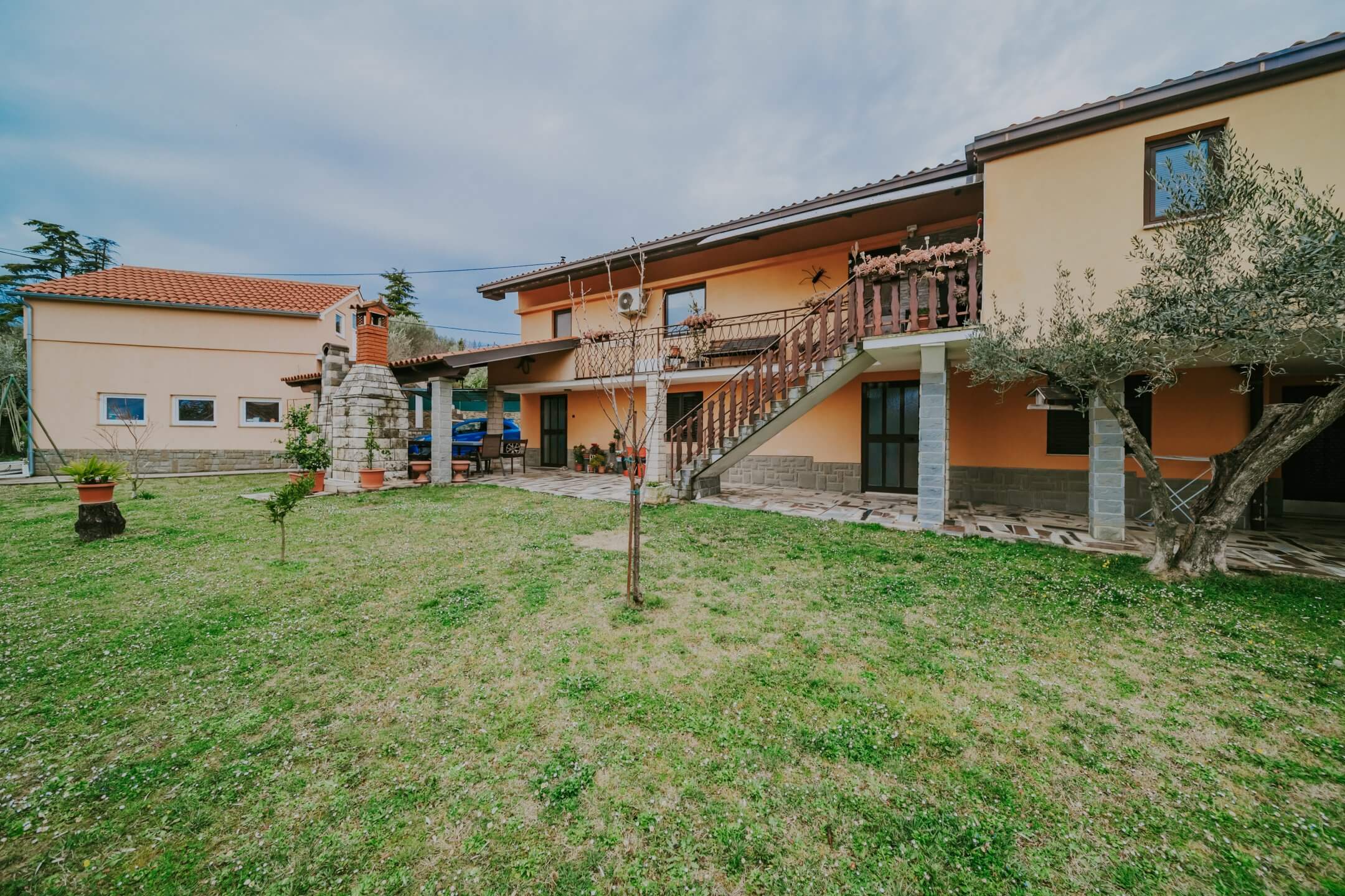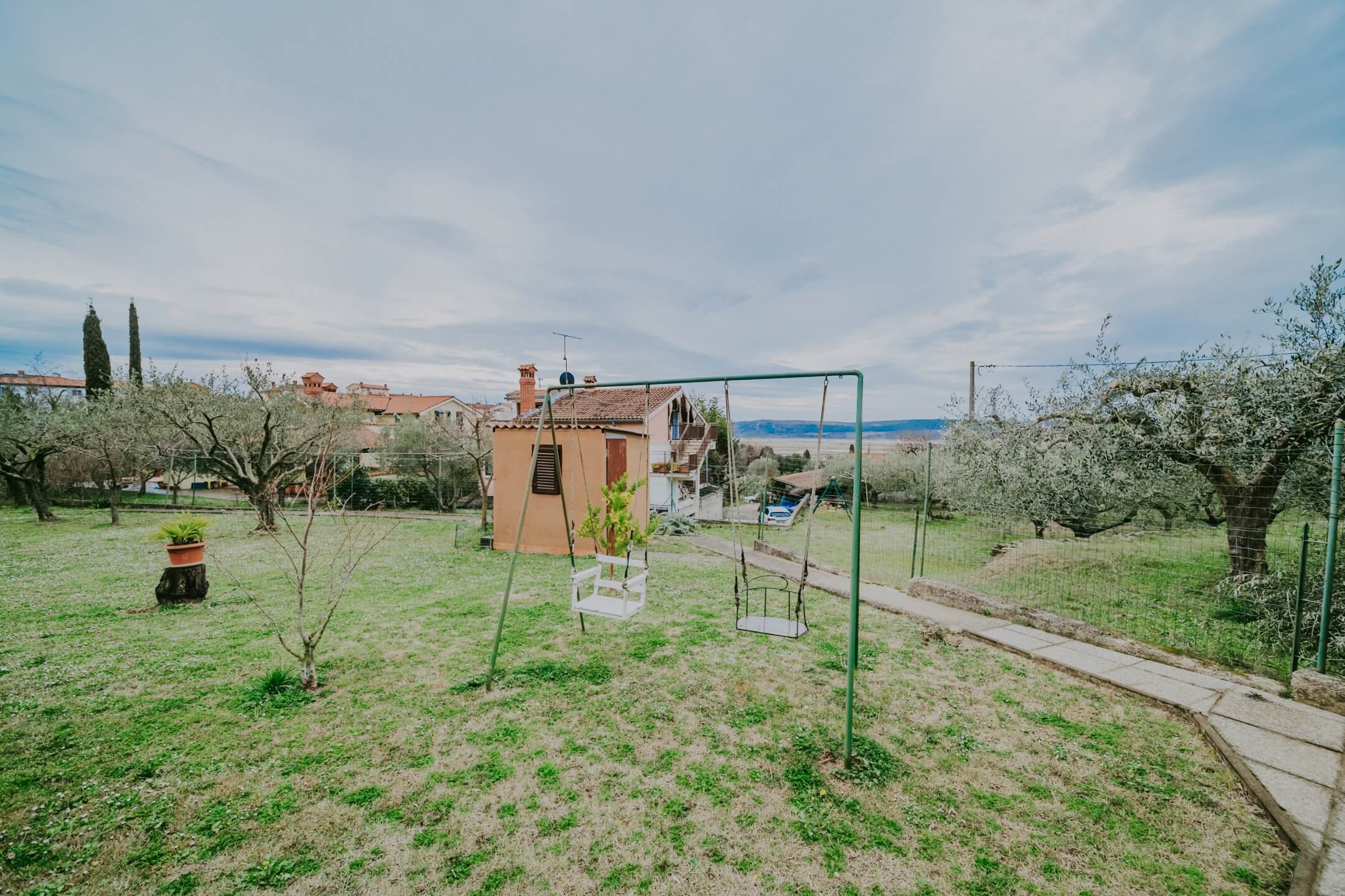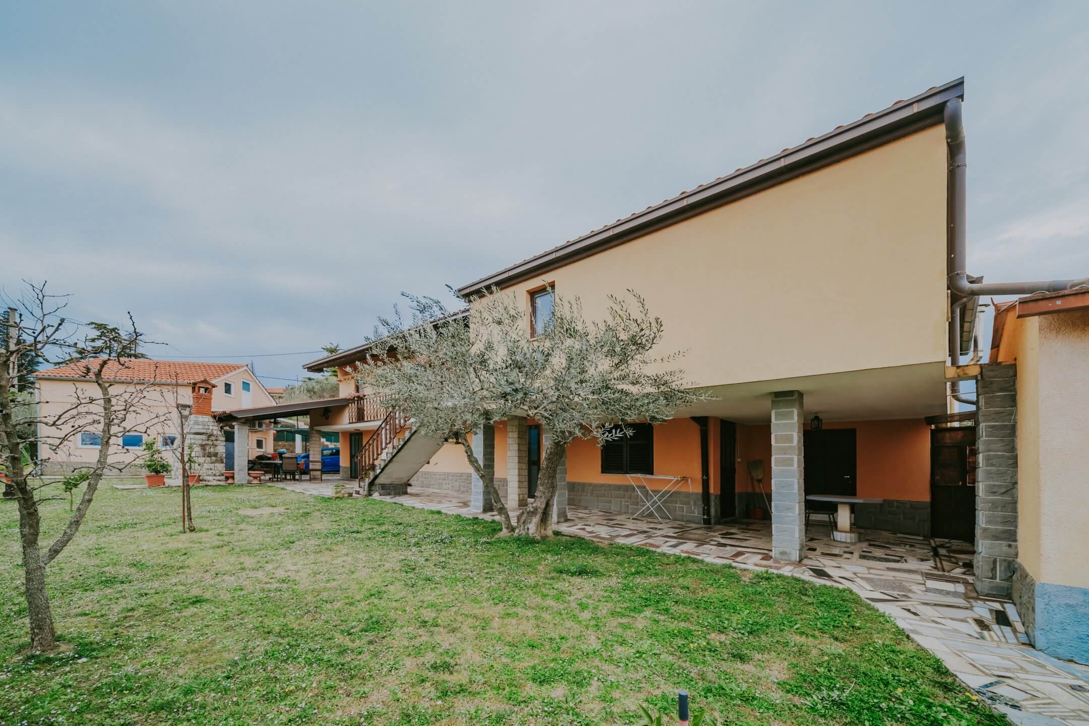 Just a few minutes’ drive from beautiful Portorož is this family house with an open view of the sea and salt pans! The house is located in a quiet neighborhood and offers the owners peace and privacy. The house is spread over two floors on a fenced plot of 765 m², and the total area of the house is 204 m². It consists of two residential units with a total of five bedrooms, three bathrooms, two outdoor summer kitchens, a garage and a spacious terrace with an open sea view!