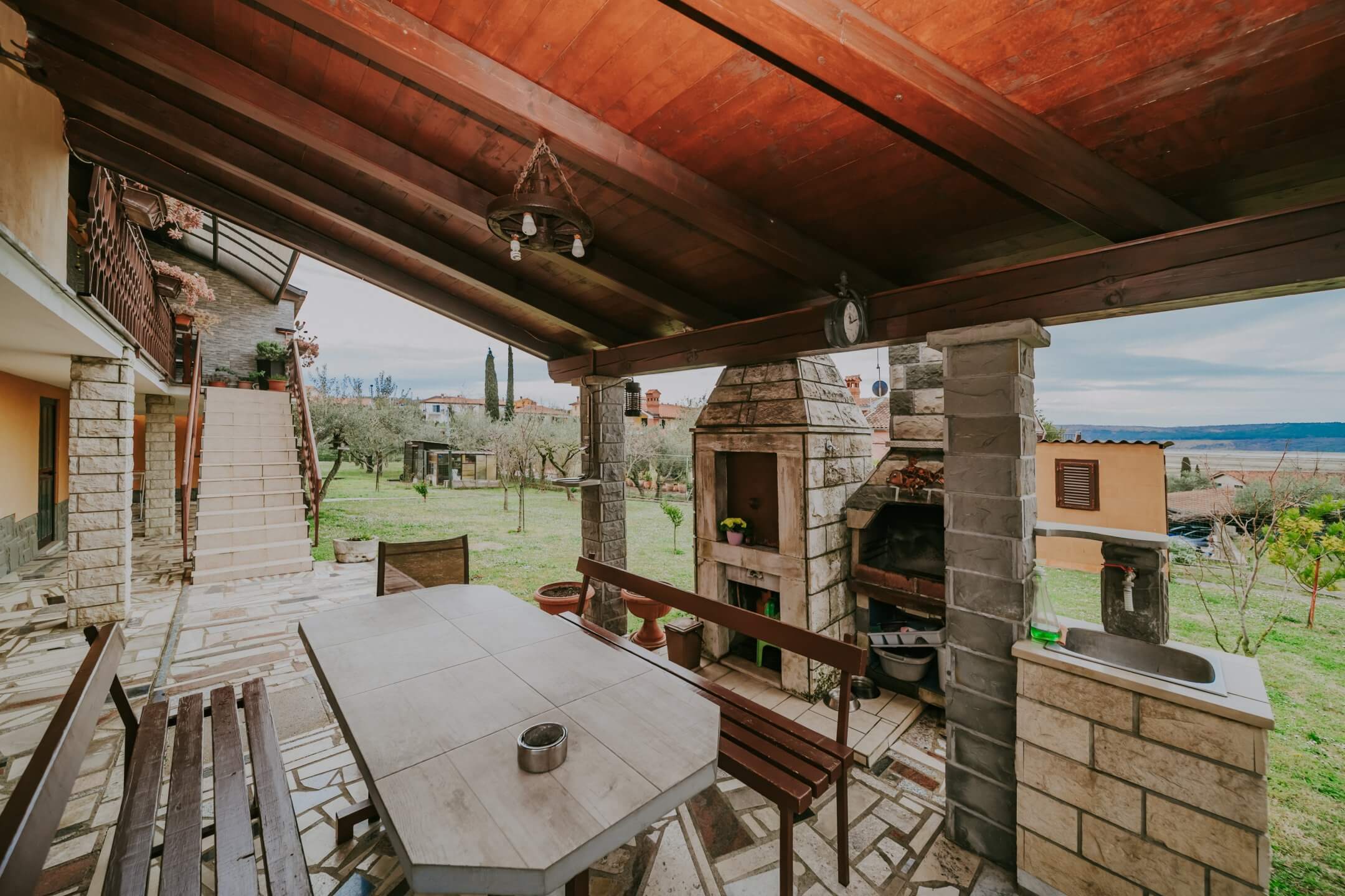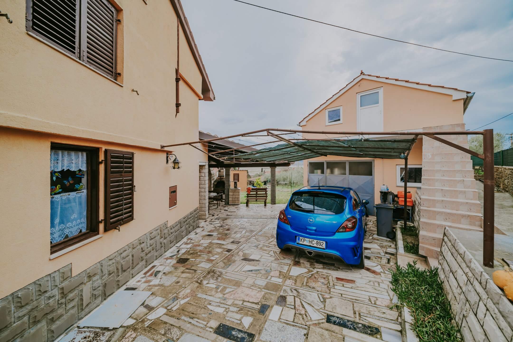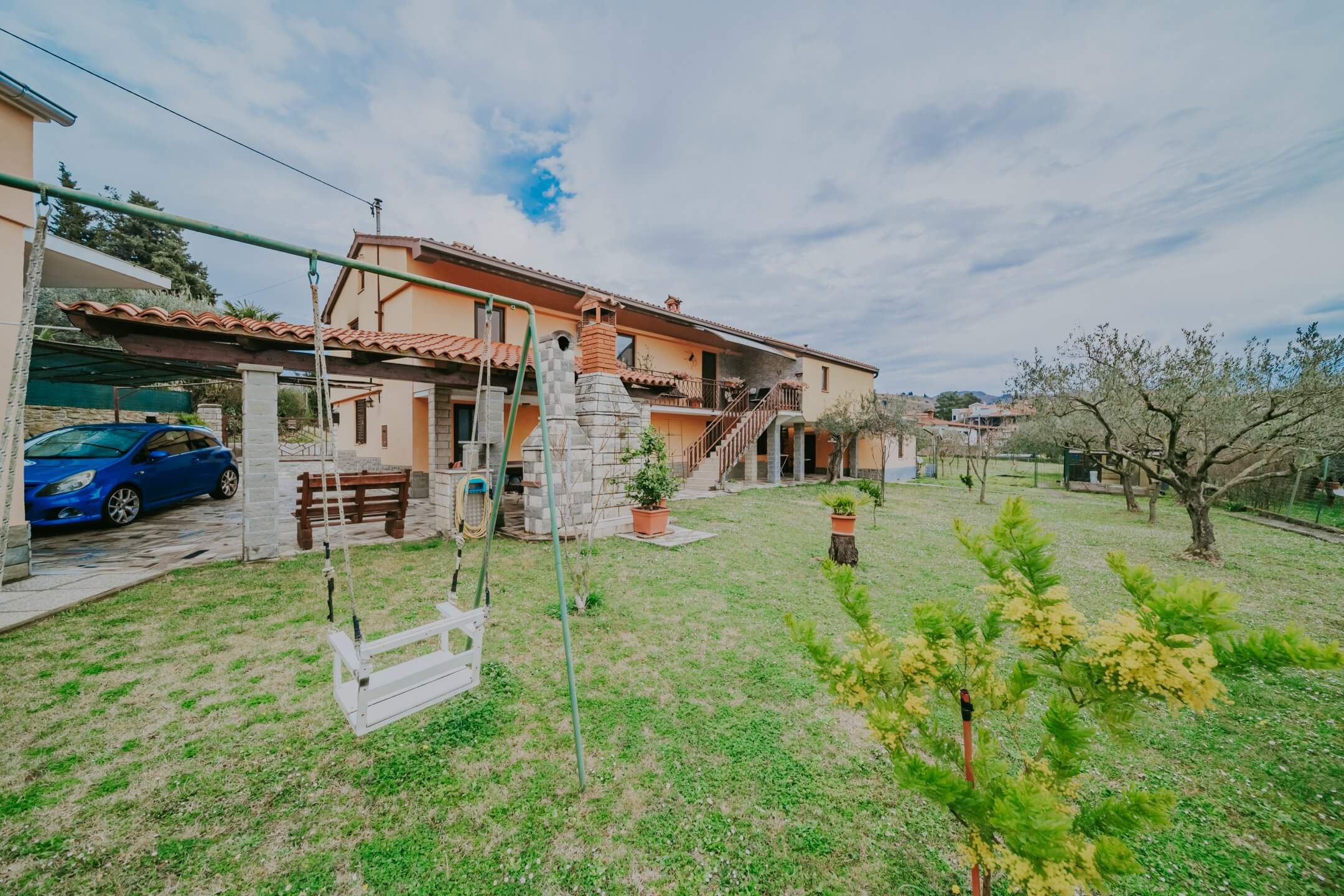 Just a few minutes’ drive from beautiful Portorož is this family house with an open view of the sea and salt pans! The house is located in a quiet neighborhood and offers the owners peace and privacy. The house is spread over two floors on a fenced plot of 765 m², and the total area of the house is 204 m². It consists of two residential units with a total of five bedrooms, three bathrooms, two outdoor summer kitchens, a garage and a spacious terrace with an open sea view!