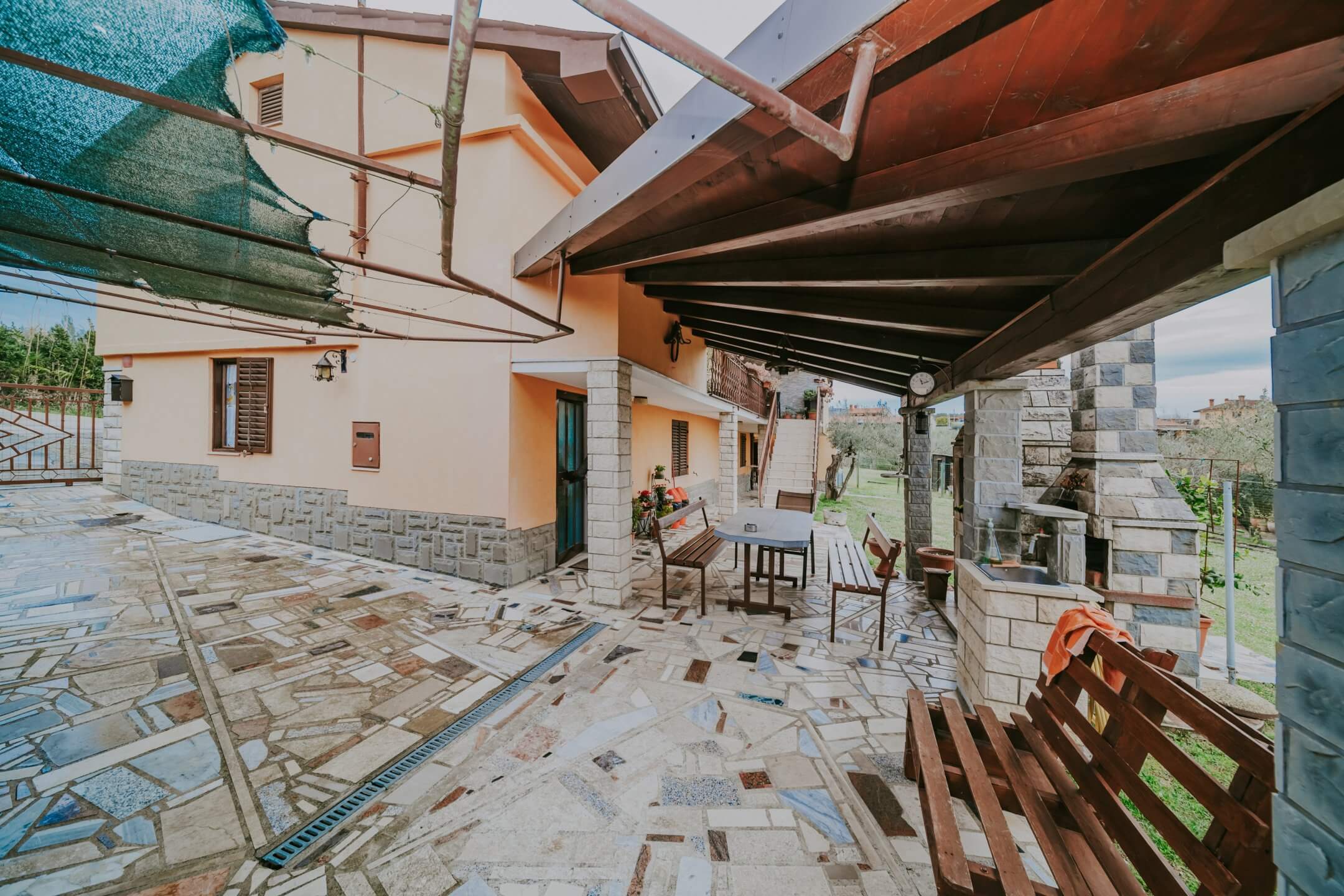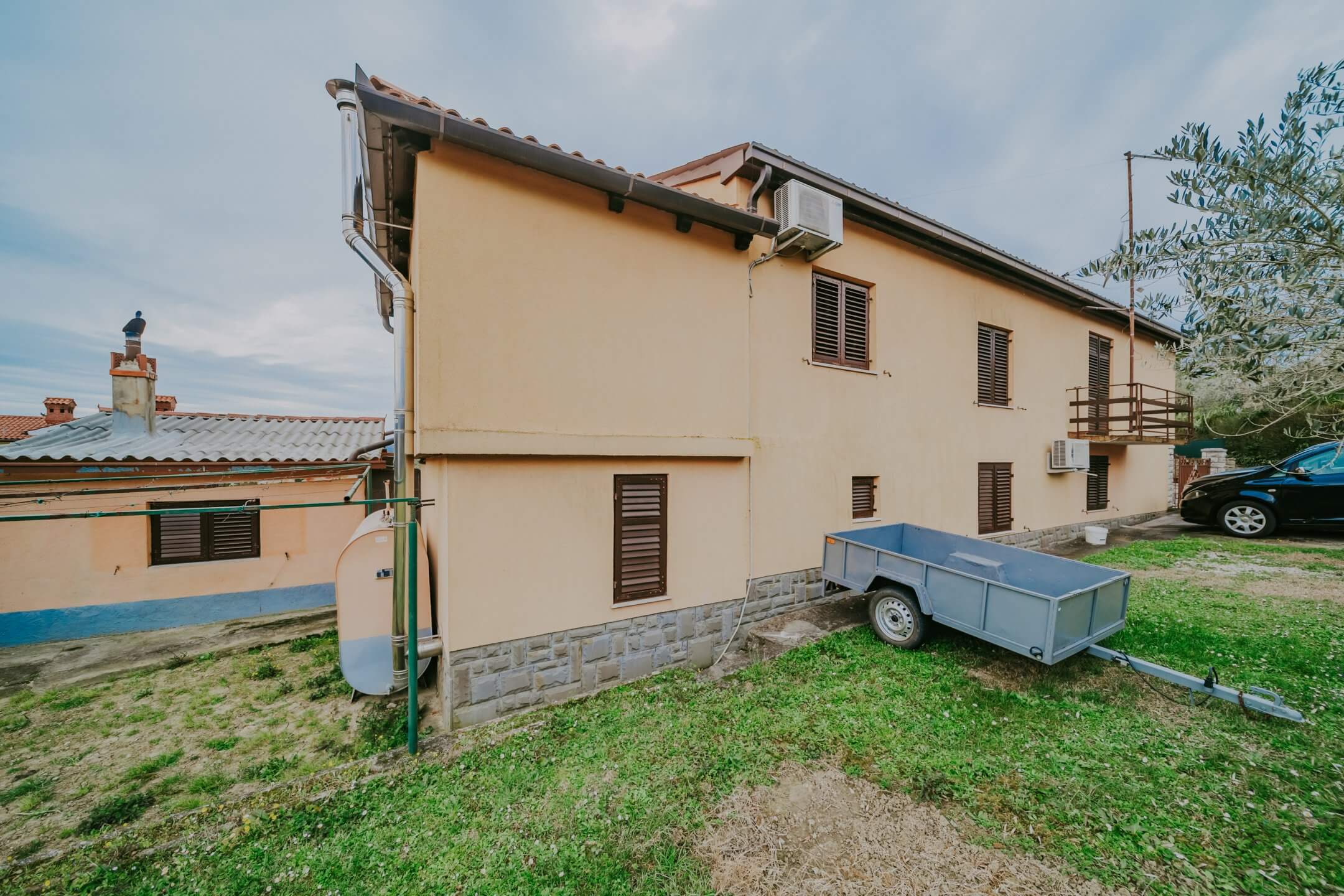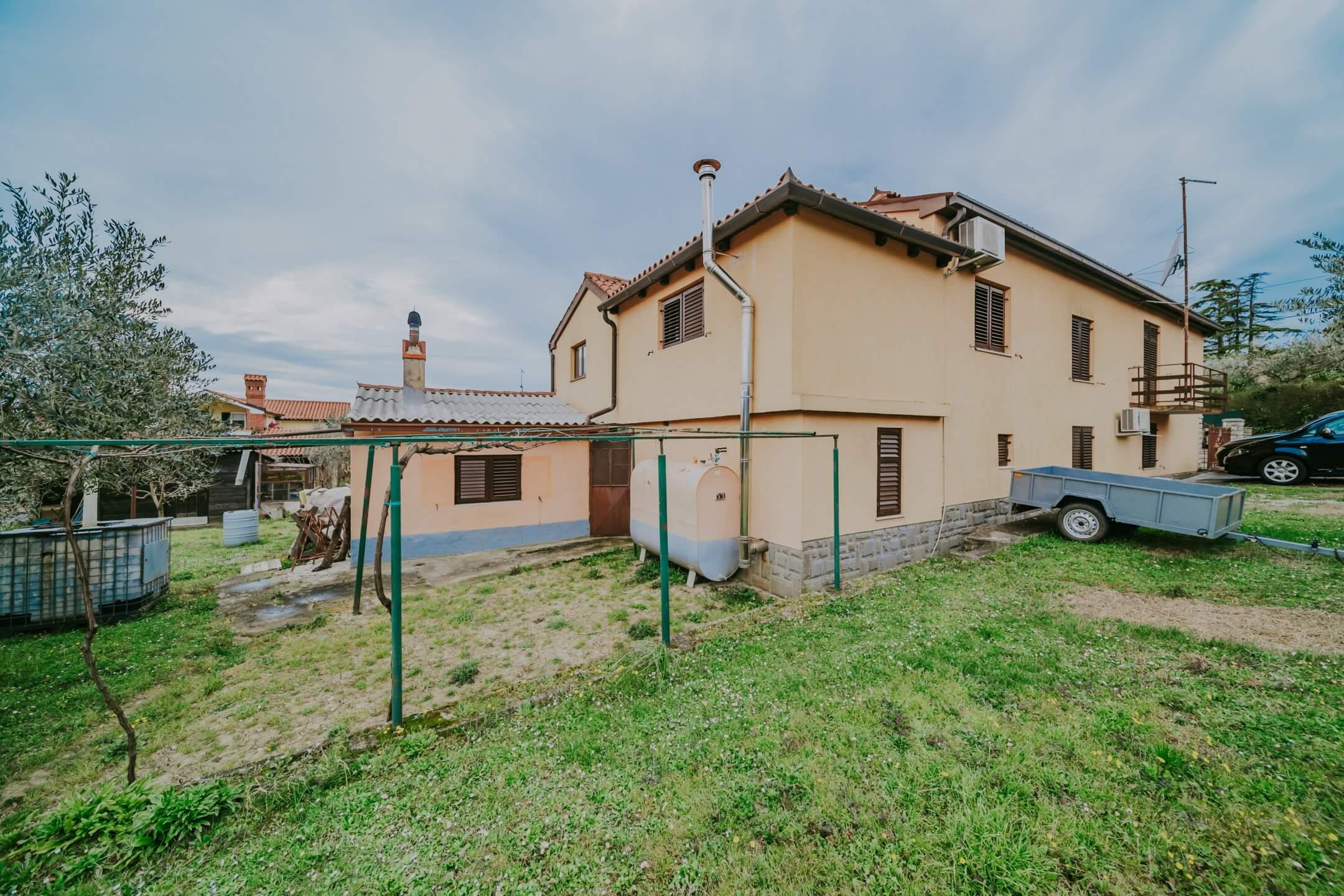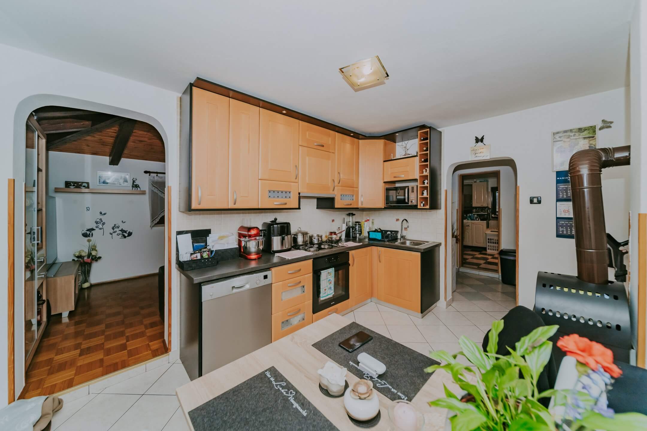 Just a few minutes’ drive from beautiful Portorož is this family house with an open view of the sea and salt pans! The house is located in a quiet neighborhood and offers the owners peace and privacy. The house is spread over two floors on a fenced plot of 765 m², and the total area of the house is 204 m². It consists of two residential units with a total of five bedrooms, three bathrooms, two outdoor summer kitchens, a garage and a spacious terrace with an open sea view!