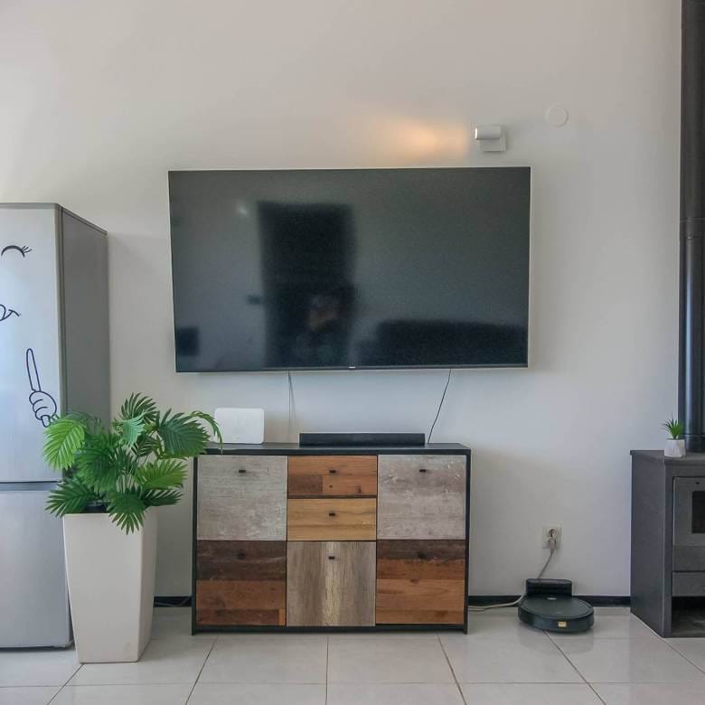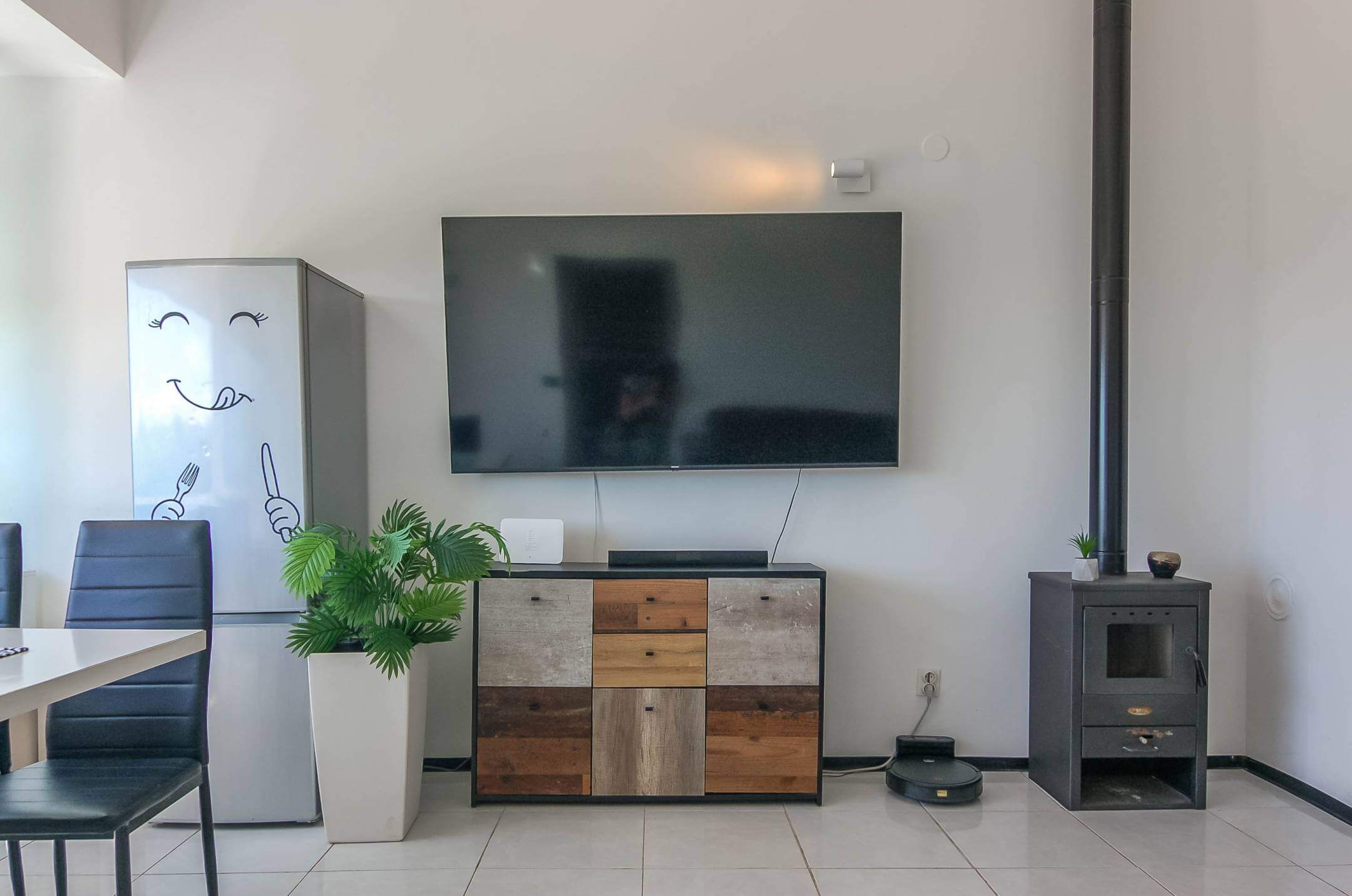 - Heating via high-efficiency infrared panels, wood-burning stoves and air conditioning
