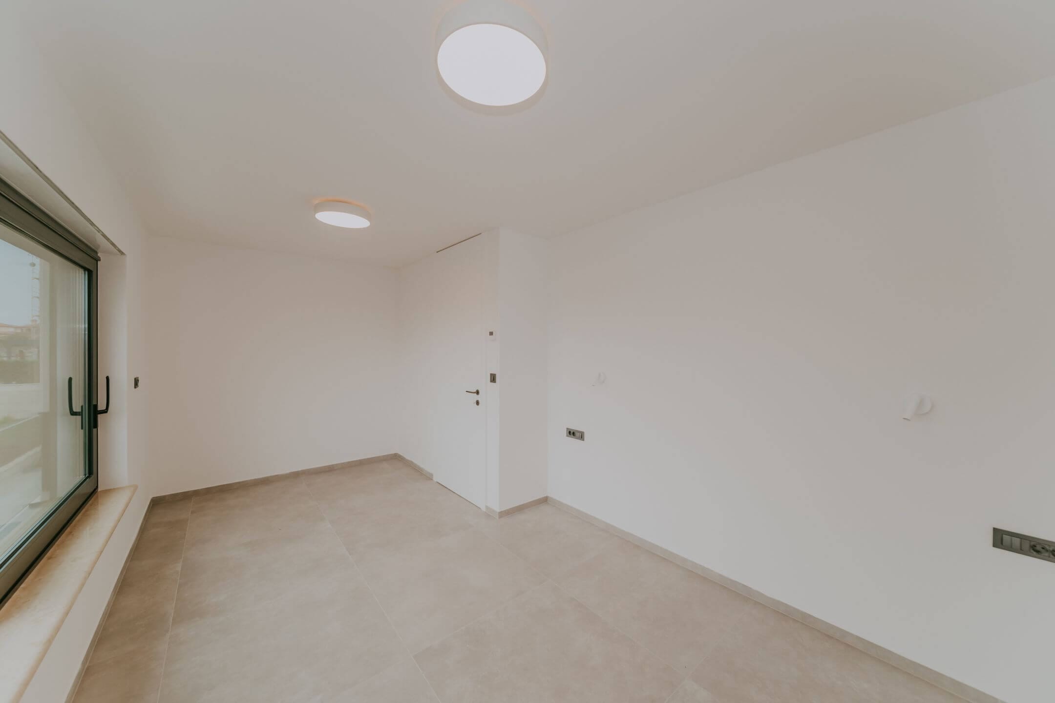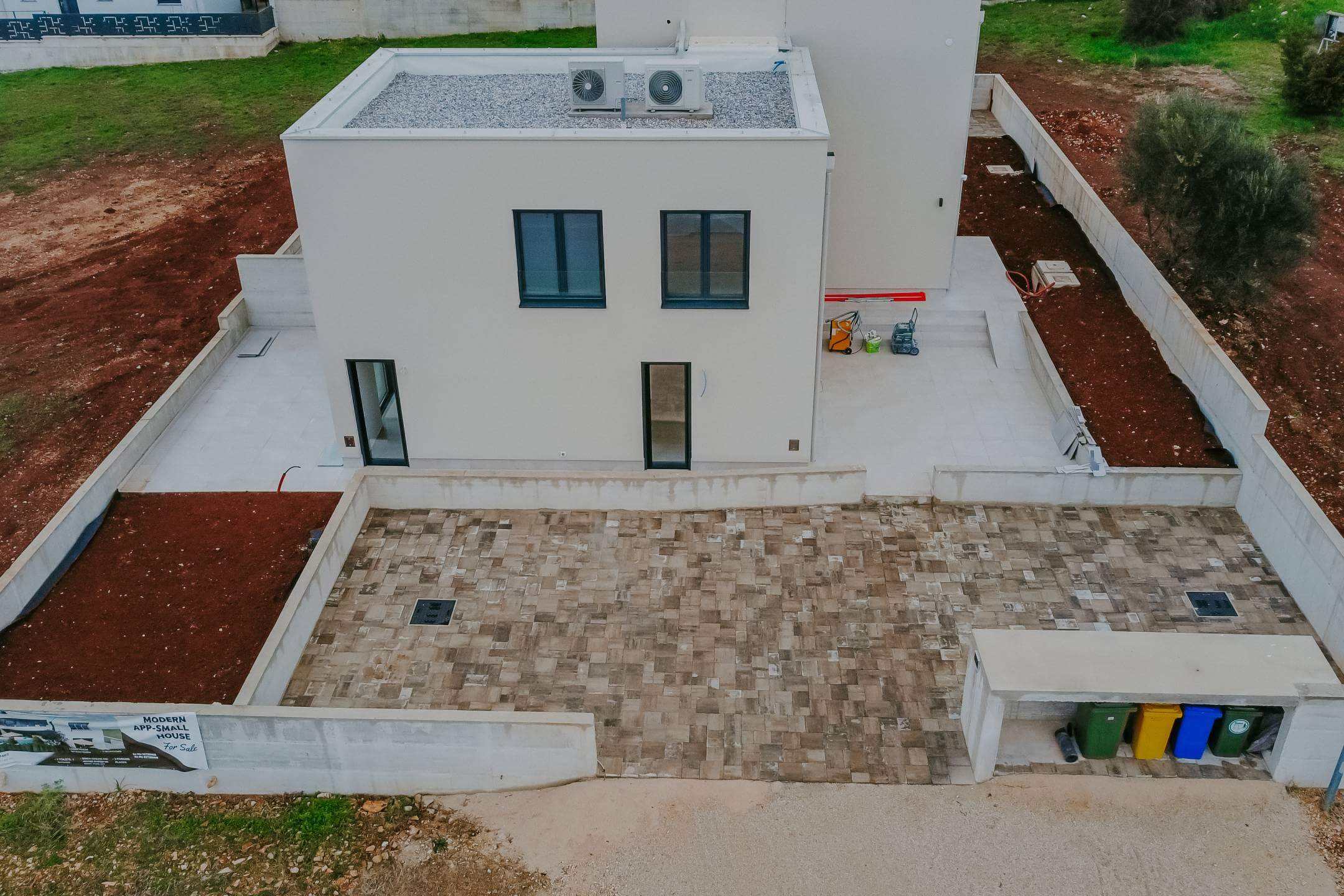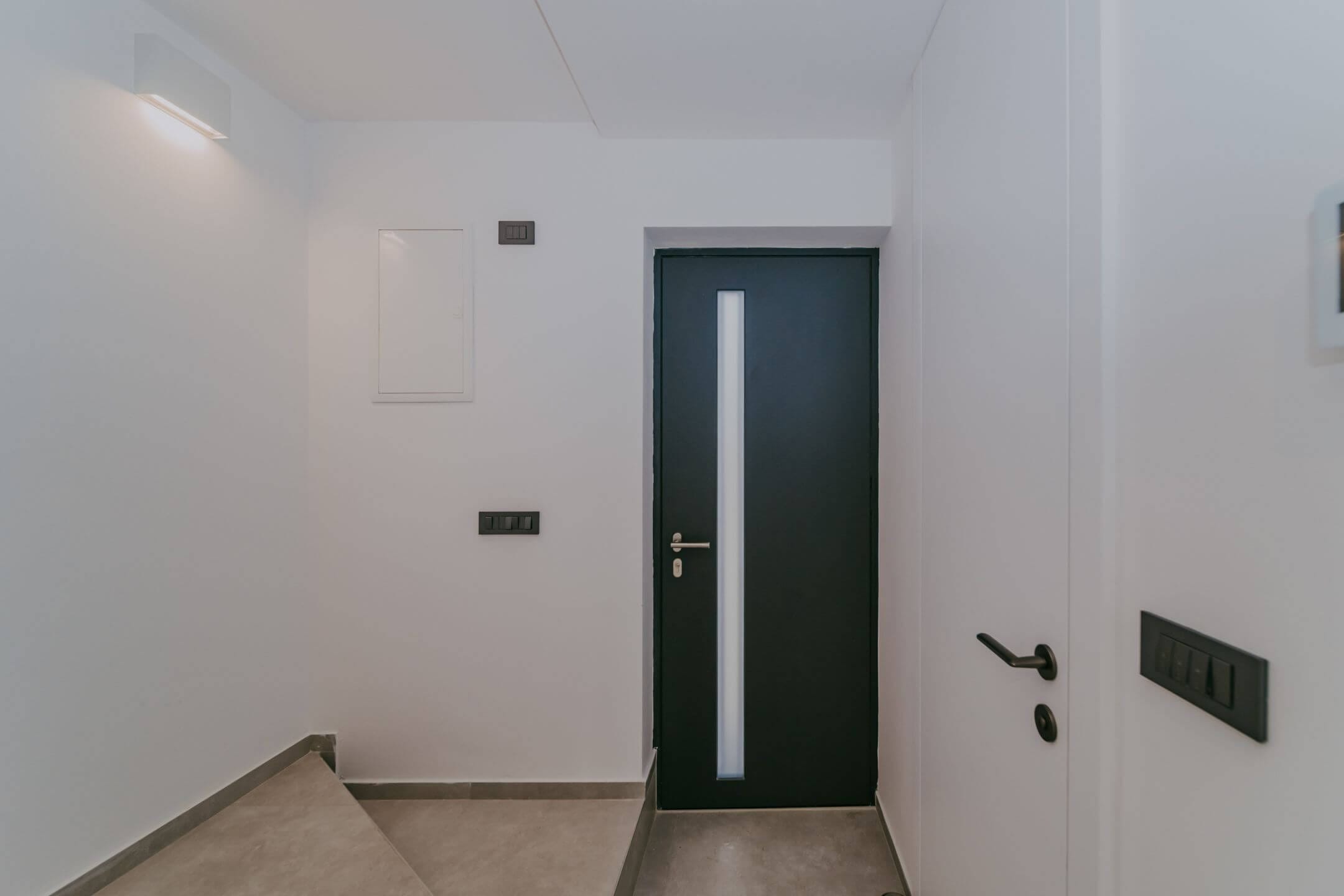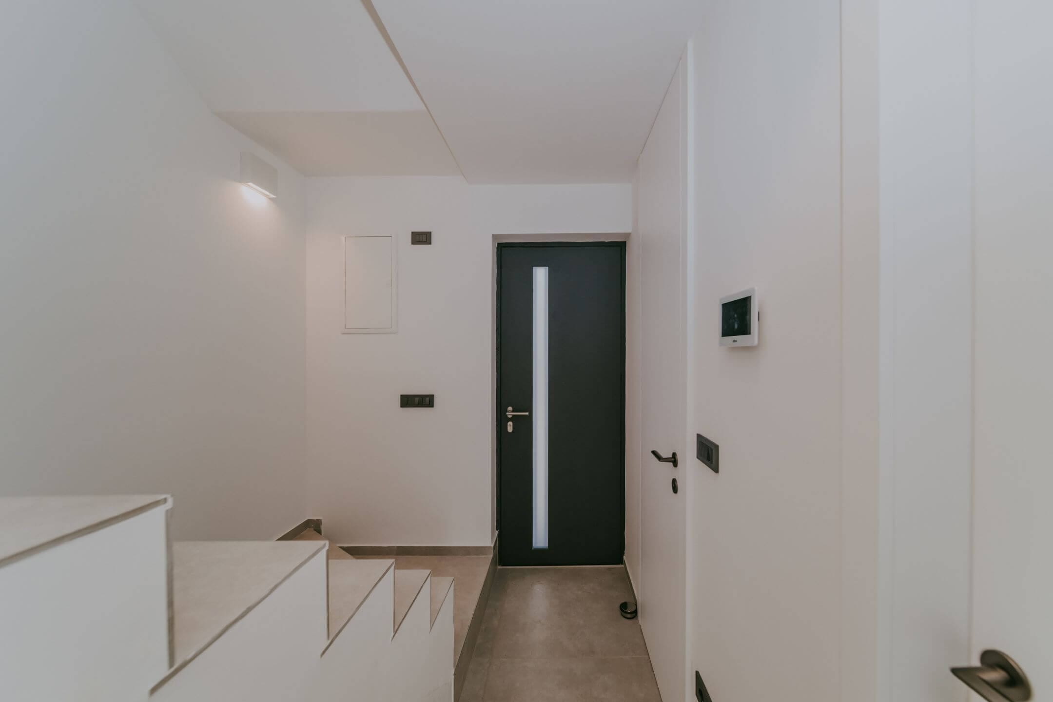 The entire house is heated with underfloor heating and each room has its own thermostat. A Bosh heat pump with 4 air conditioners for cooling with Wi-Fi control via the application is installed. High quality materials were used in the construction, aluminum carpentry with shutters and mosquito nets, ceramics 90×90 cm, high-quality LED lighting, interior doors as high as the ceiling, and an internet network installation was installed throughout the house. Due to the use of large glass walls, the house is rich in natural light.
