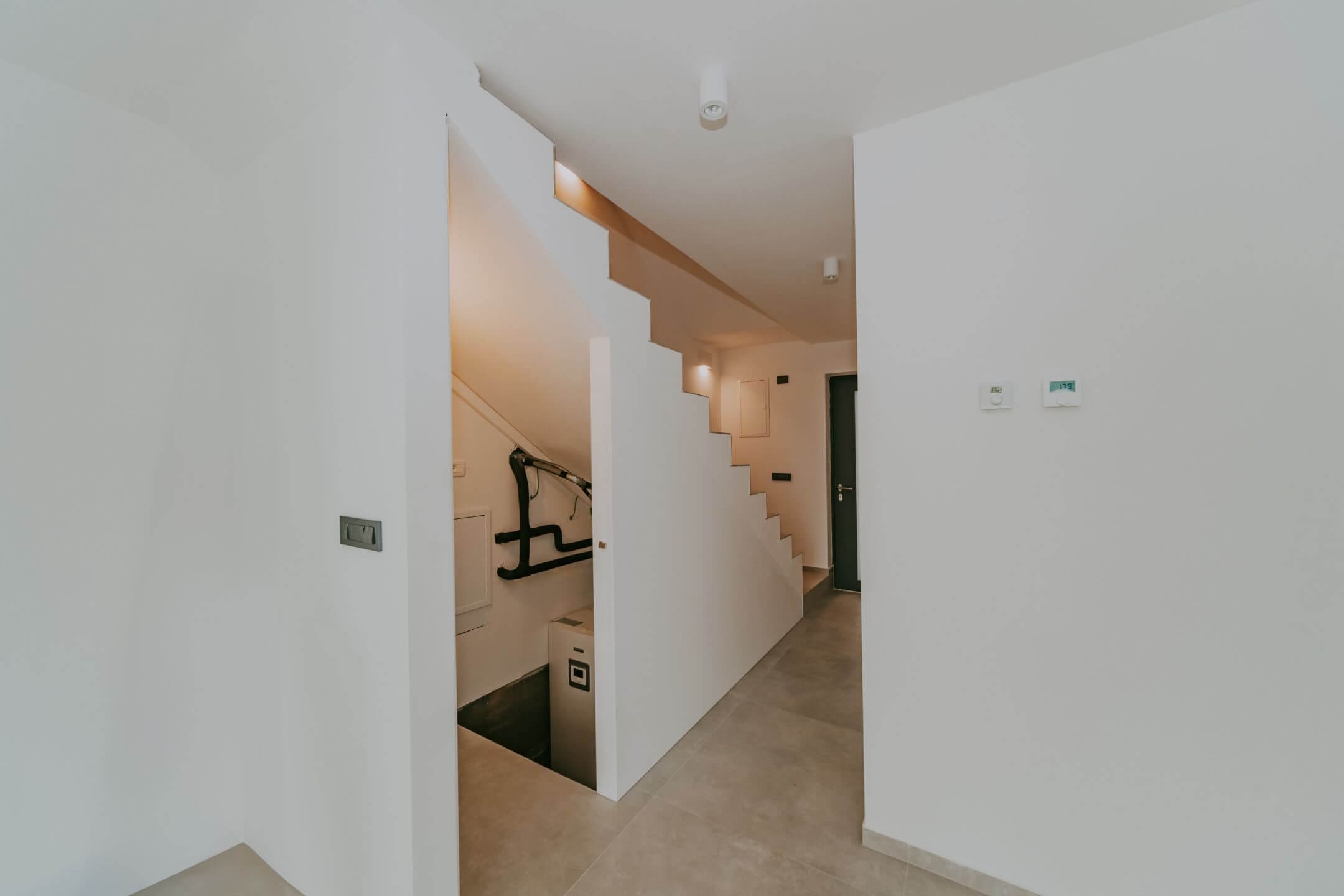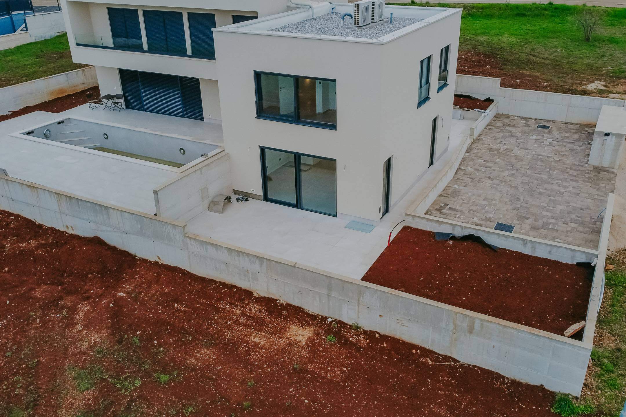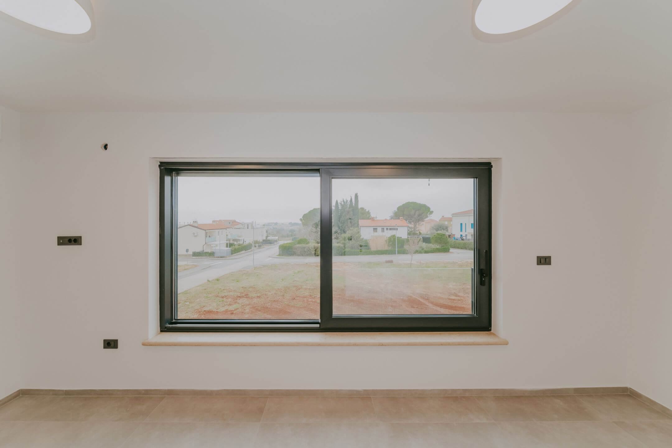 The entire house is heated with underfloor heating and each room has its own thermostat. A Bosh heat pump with 4 air conditioners for cooling with Wi-Fi control via the application is installed. High quality materials were used in the construction, aluminum carpentry with shutters and mosquito nets, ceramics 90×90 cm, high-quality LED lighting, interior doors as high as the ceiling, and an internet network installation was installed throughout the house. Due to the use of large glass walls, the house is rich in natural light.