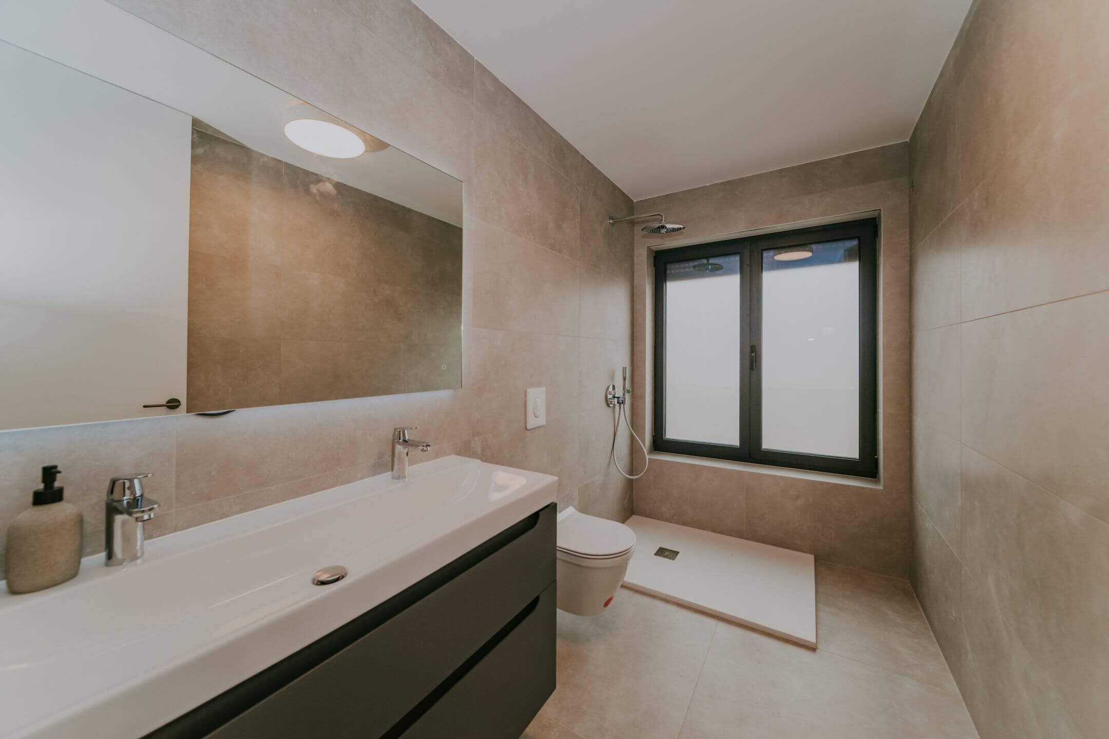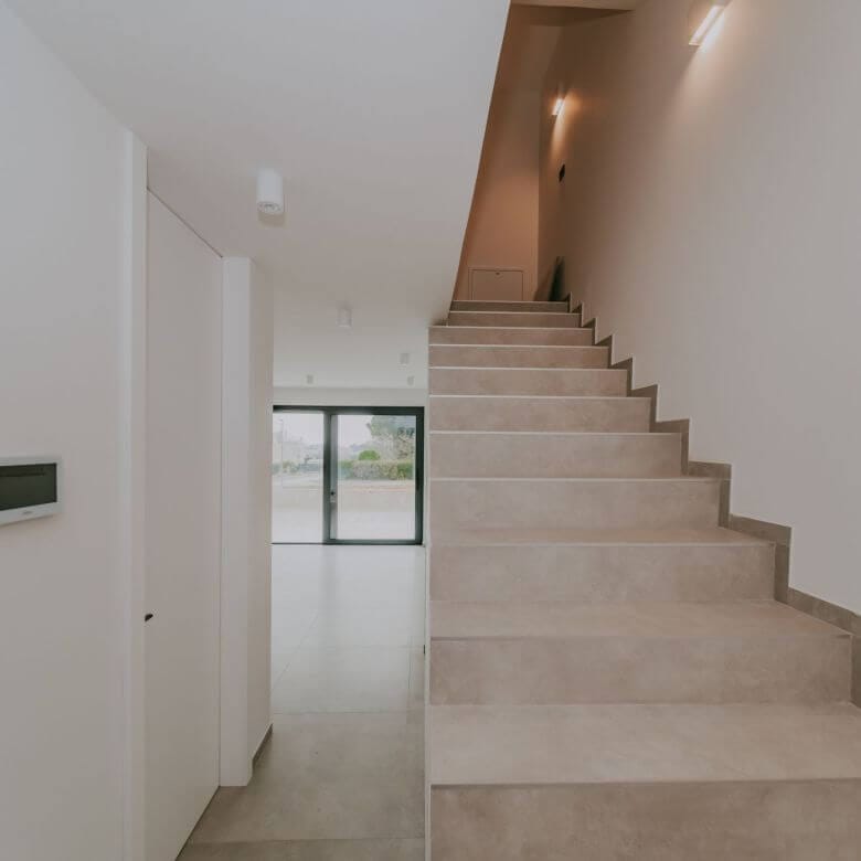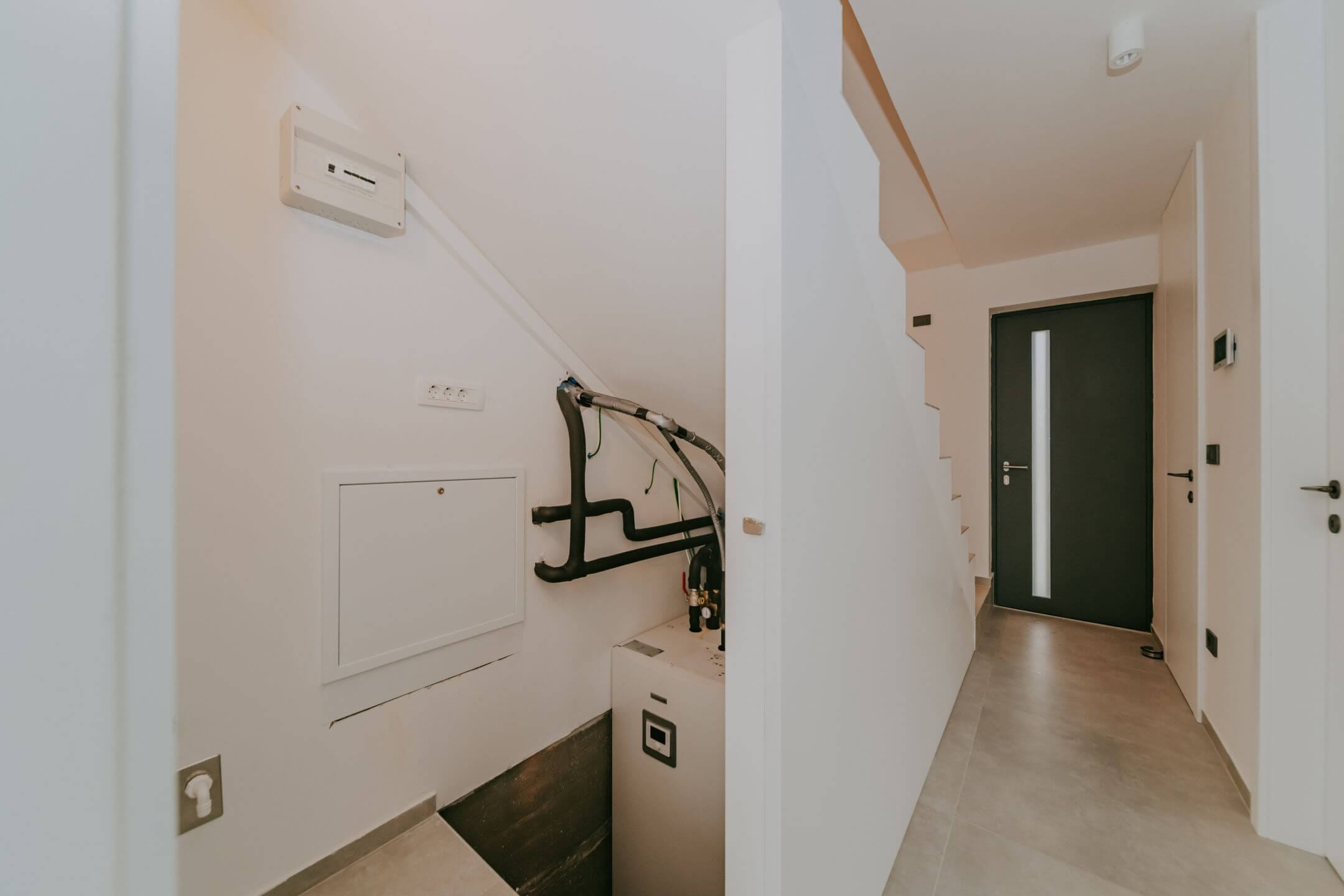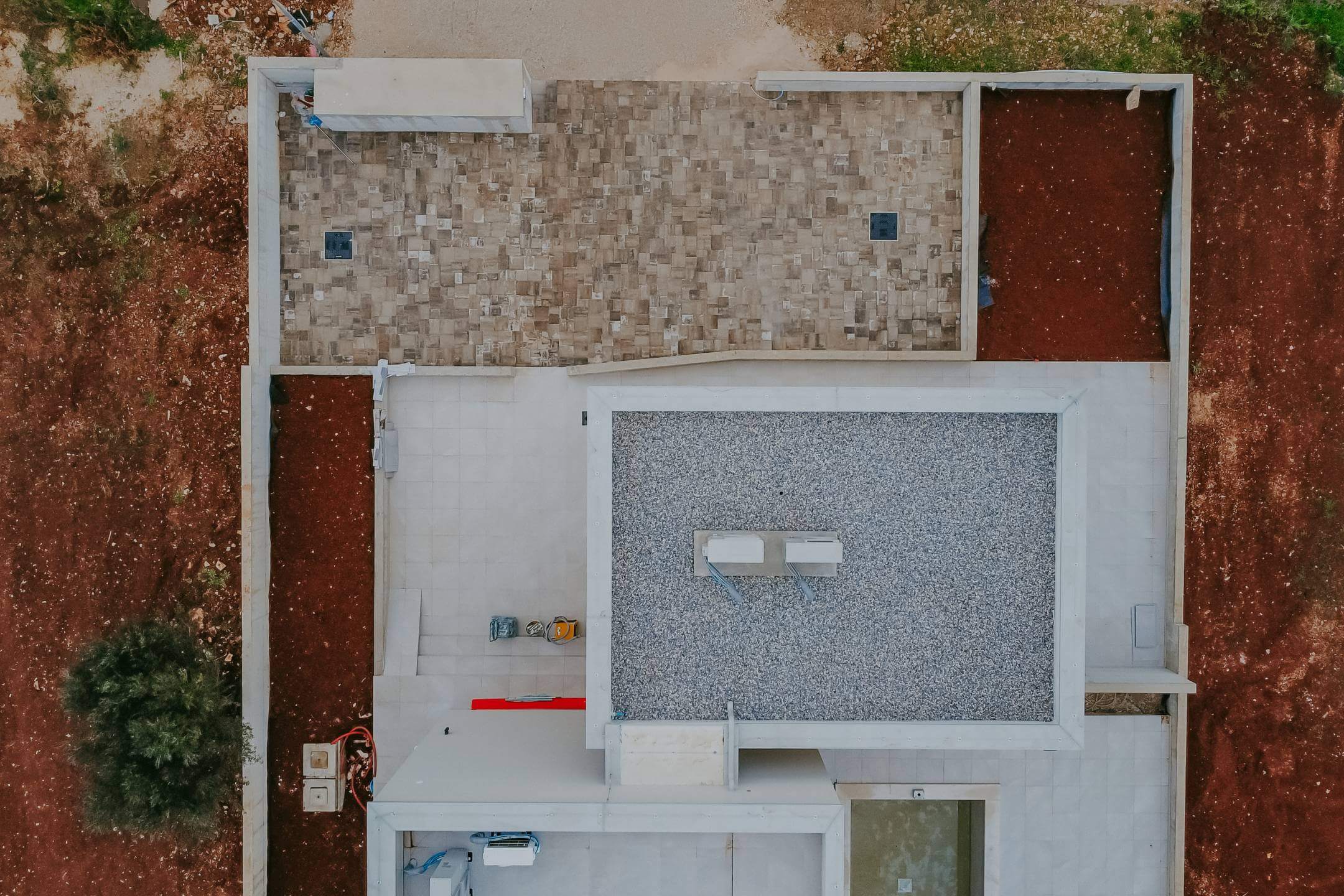 The entire house is heated with underfloor heating and each room has its own thermostat. A Bosh heat pump with 4 air conditioners for cooling with Wi-Fi control via the application is installed. High quality materials were used in the construction, aluminum carpentry with shutters and mosquito nets, ceramics 90×90 cm, high-quality LED lighting, interior doors as high as the ceiling, and an internet network installation was installed throughout the house. Due to the use of large glass walls, the house is rich in natural light.