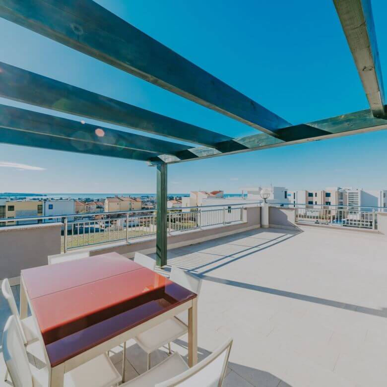 A spacious apartment for sale in an attractive location in Novigrad, just a few minutes from the sea and the beach and with an open view of the sea and the city. The apartment is located on the second floor of a newer residential building. The total area of the property is 178.50 m². The area of the apartment is a spacious 159.50 m². The apartment consists of an entrance hall, a kitchen, a living room with a dining room, three separate bedrooms, a bathroom, a toilet, a corridor and a balcony of 52 m² with a beautiful view of the sea and the city. The apartment is heated by a pellet stove, underfloor heating and electric heaters, and cooled by air conditioners.