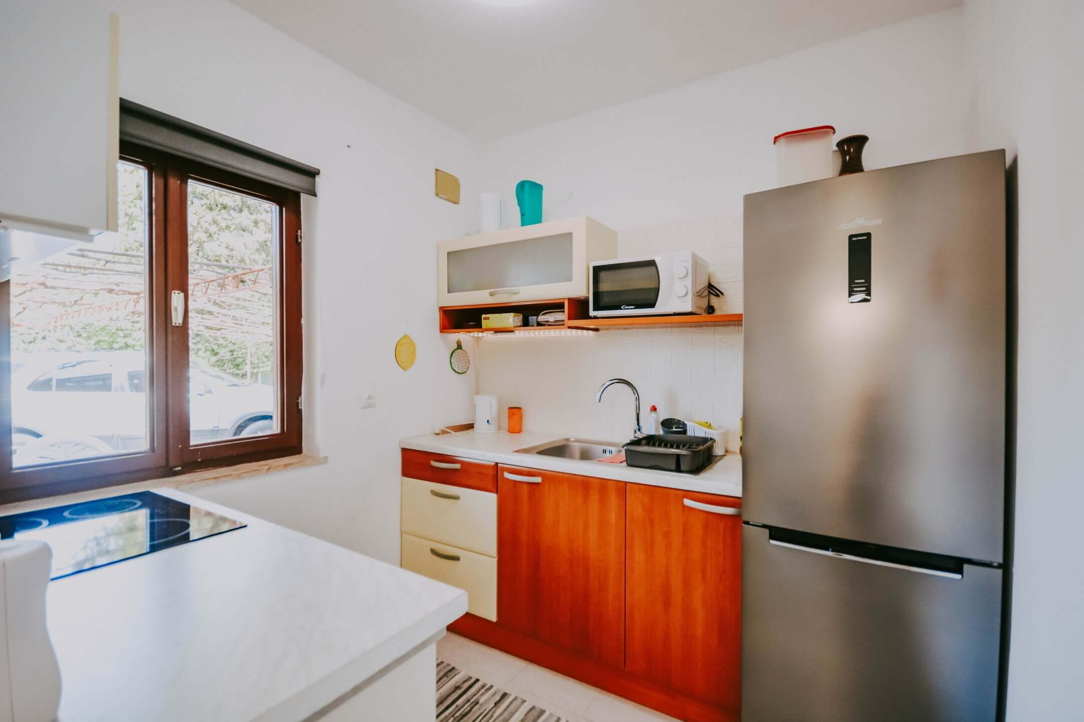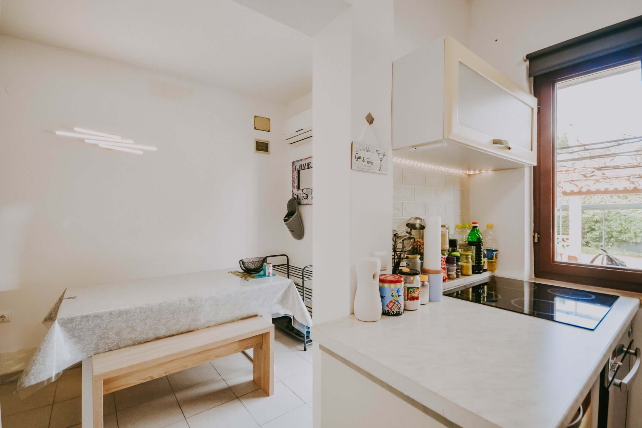 In Dajla near Novigrad, we are selling a newly renovated apartment with a garden on the ground floor of an apartment house. The apartment has a total area of 63 m², of which 47.50 m² is the apartment, which consists of a kitchen with a dining room, a living room, one separate bedroom and a bathroom. In front of the apartment there is a fenced private yard of 32 m², which is used as a parking lot. Behind the apartment there is a large storage room of 15 m², which is also owned.