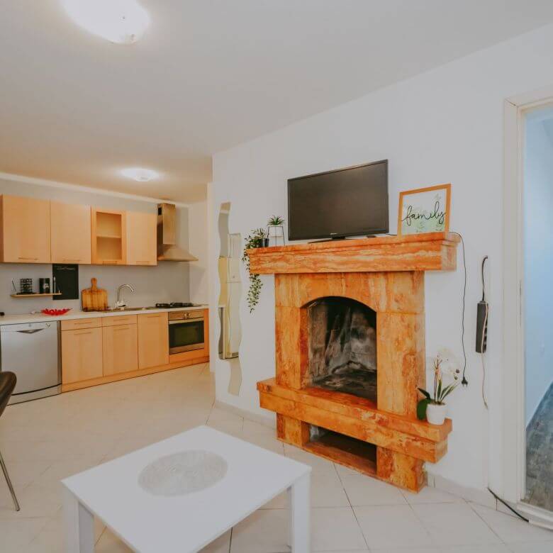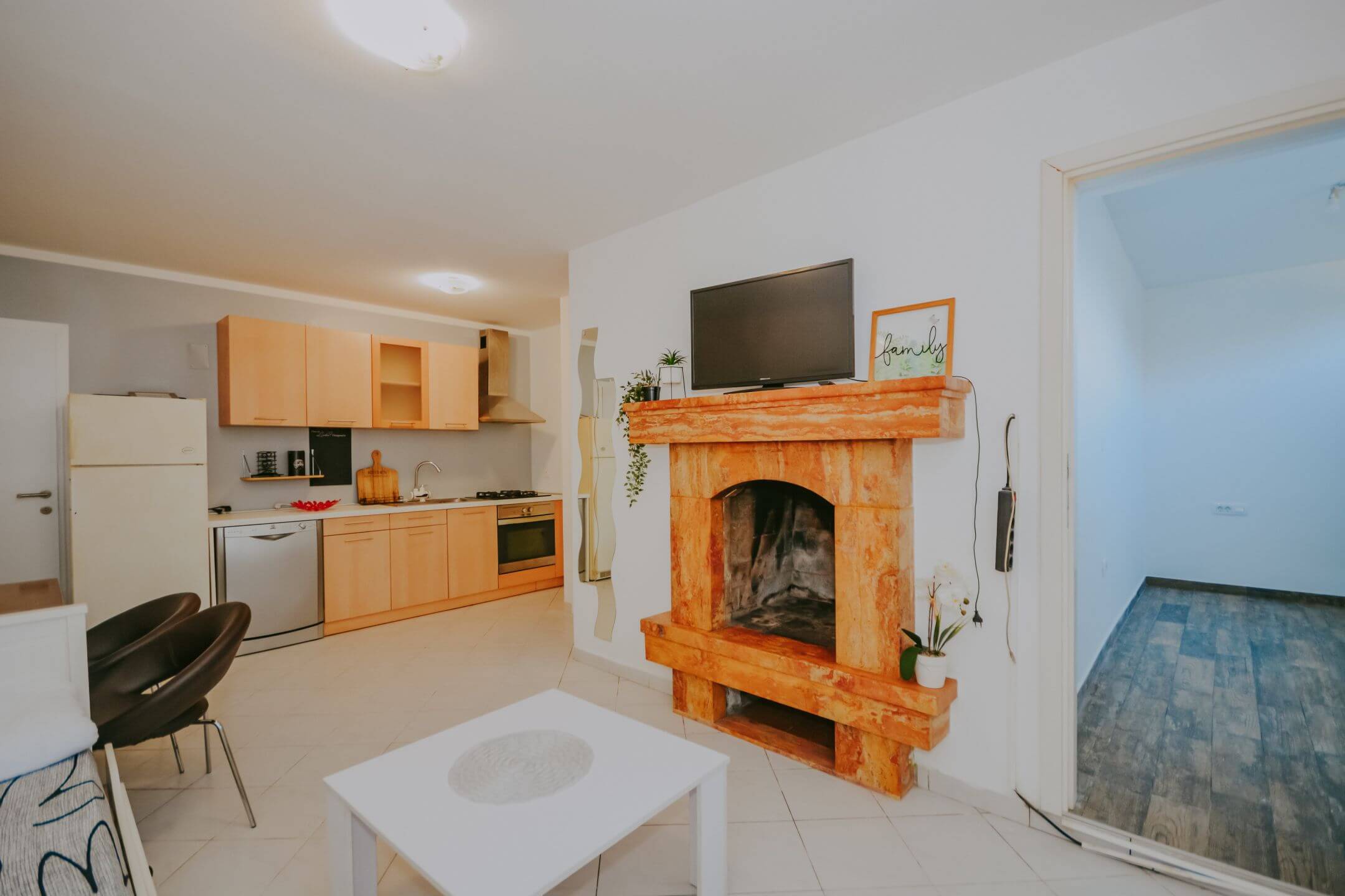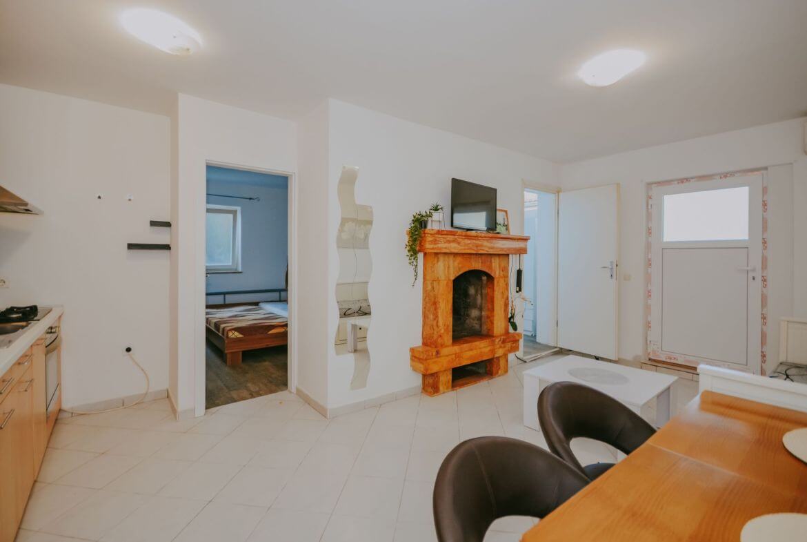 An apartment for sale in Poreč in an excellent location. The total area of the property is 56 m². The apartment has an area of 46.50 m² and is located in the basement of a smaller residential building. It consists of a living room with a kitchen and a dining room, 2 bedrooms, a bathroom, a hallway and a storage room. Heating is on a wood-burning fireplace and cooling is on air conditioners. The apartment has two storage rooms that are owned.