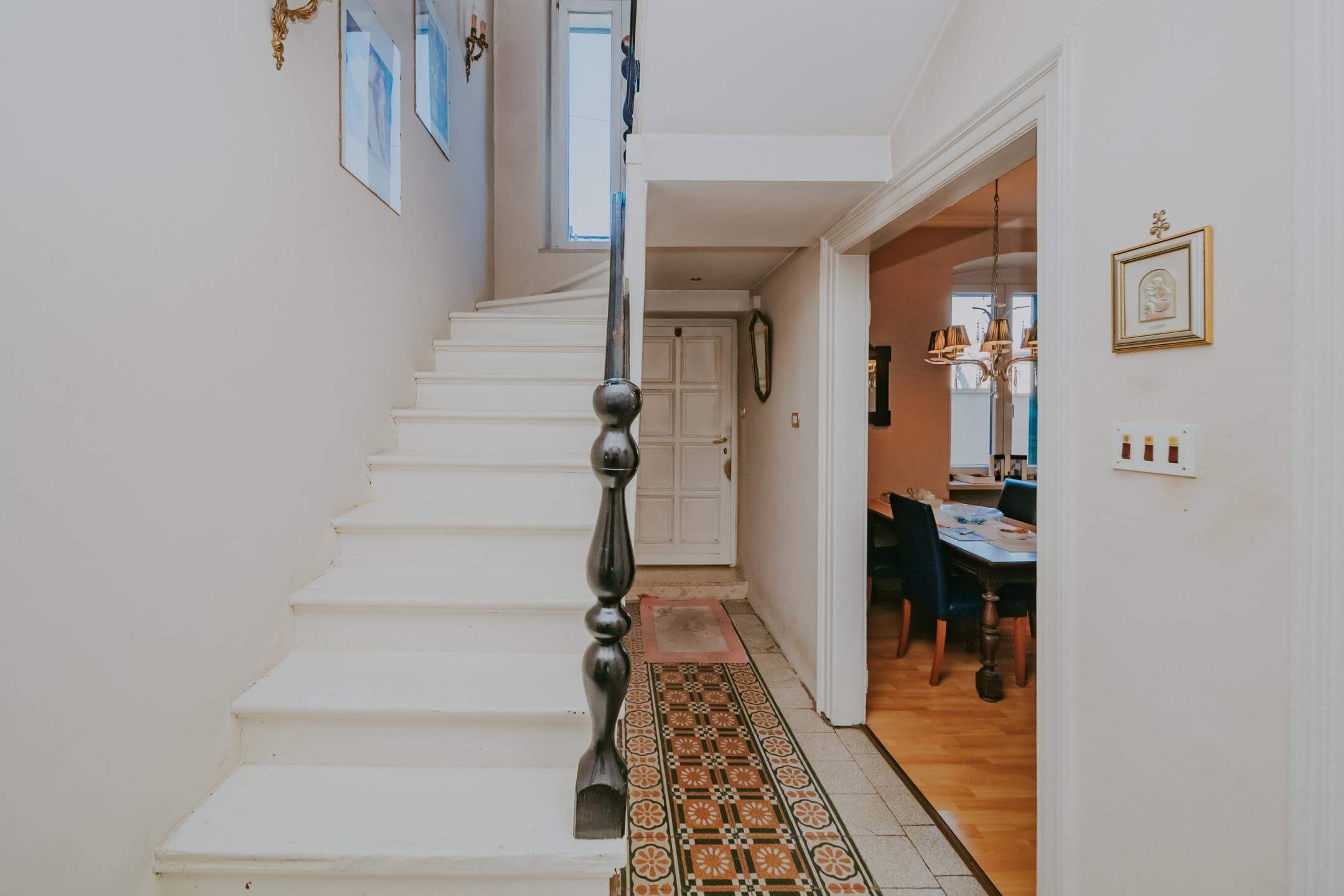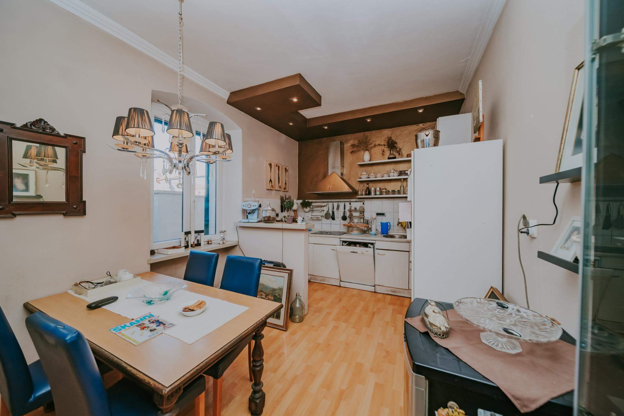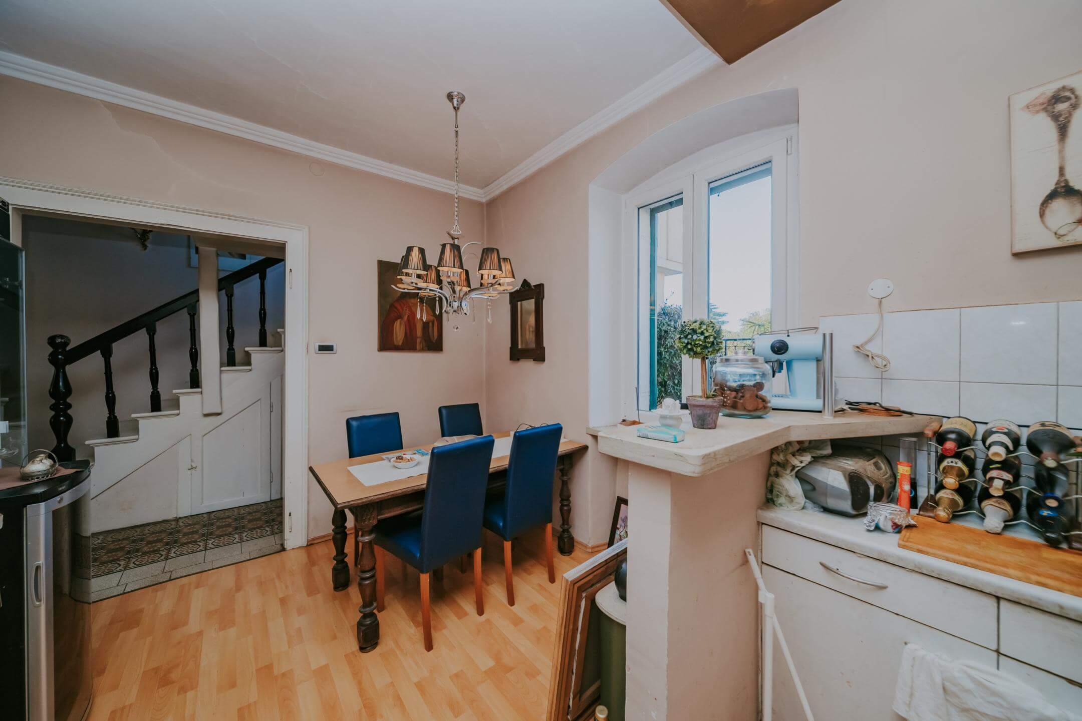 A rarity on the market! In the very center of the city of Umag, a semi-detached house on the second row to the sea with a sea view is for sale. The house with a total area of 194 m² extends over three floors. In the basement there is a room for exercise (fitness) with a bathroom and a storage room. The upper ground floor is accessed by external stone stairs, where there is also a small terrace. The ground floor of the house has an entrance hall, a kitchen with a dining room, a spacious rustic living room and a bathroom. On the first floor there are three separate bedrooms and a terrace with a view of the Umag waterfront and the sea. The house is furnished with high-quality antique furniture and is being sold as such.