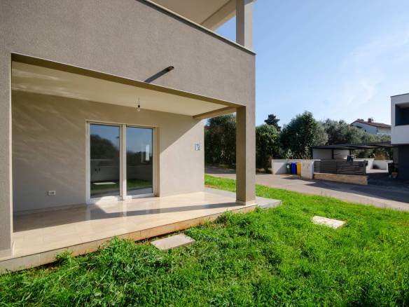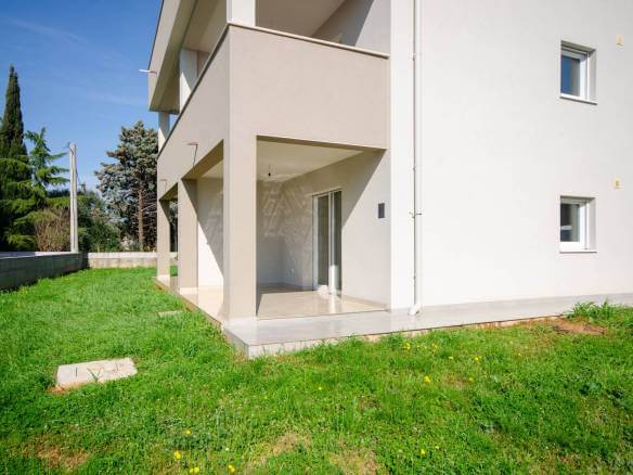 Exclusive listing offered only by the agency Vista Pro Network. We are pleased to present this premium ground-floor apartment featuring its own private garden, located in a new, high-quality residential building in the quiet and attractive neighborhood of Murine, near Umag.