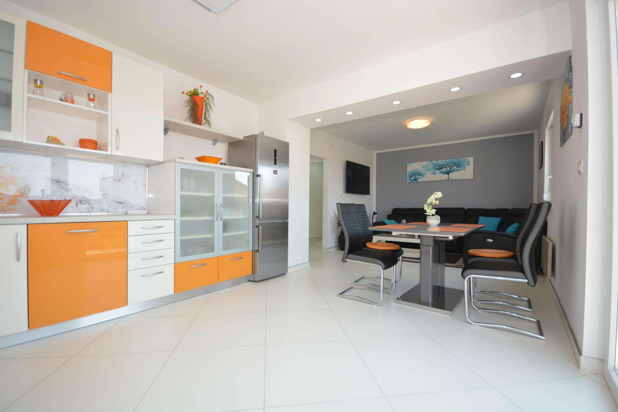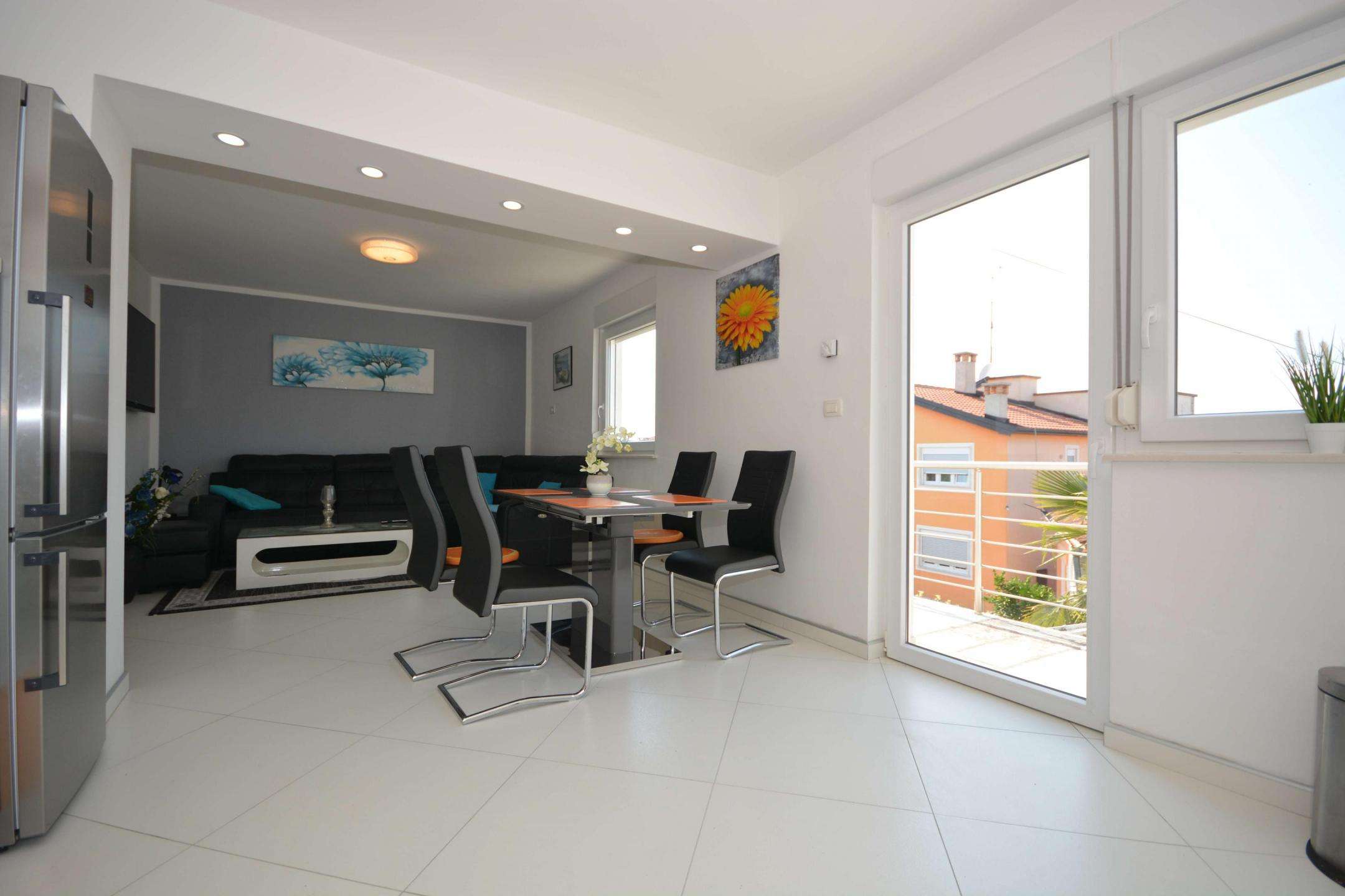 A beautifully furnished apartment is for sale in an attractive location in Umag in the Punta settlement. The apartment covers an area of 165 m² and contains a garden of approx. 228 m² with its own 4 parking spaces, 2 of which are covered. The yard is also owned and contains a multifunctional garden house. The apartment consists of 2 large bedrooms with access to a balcony that partially surrounds the house, a living room with a kitchen, a storage room and access to an extremely spacious partially covered terrace of 60 m². There is a summer kitchen and a table on the terrace. There you will be surprised by an outdoor open hot shower that will brighten up your arrival from the beach. One bedroom has its own bathroom.