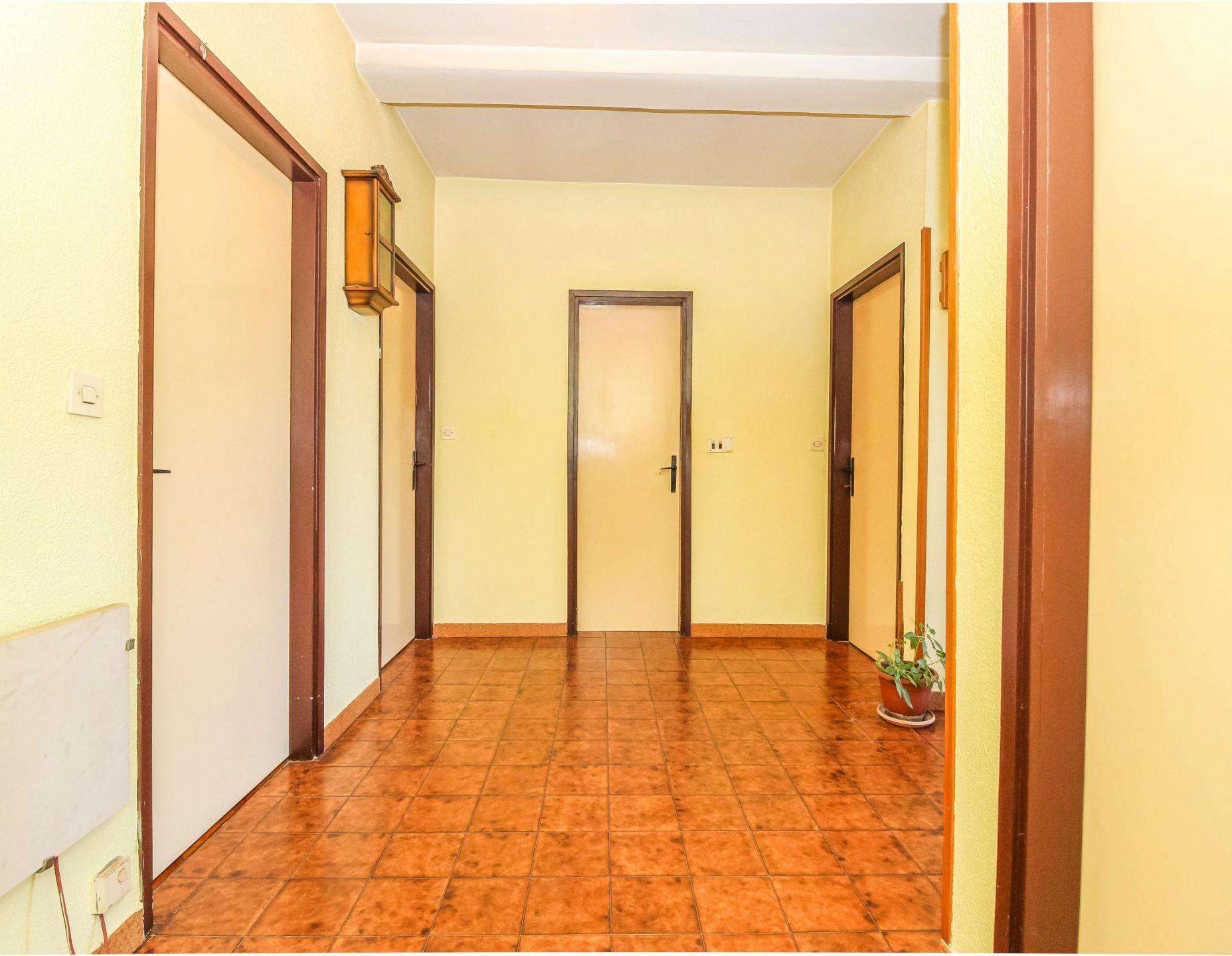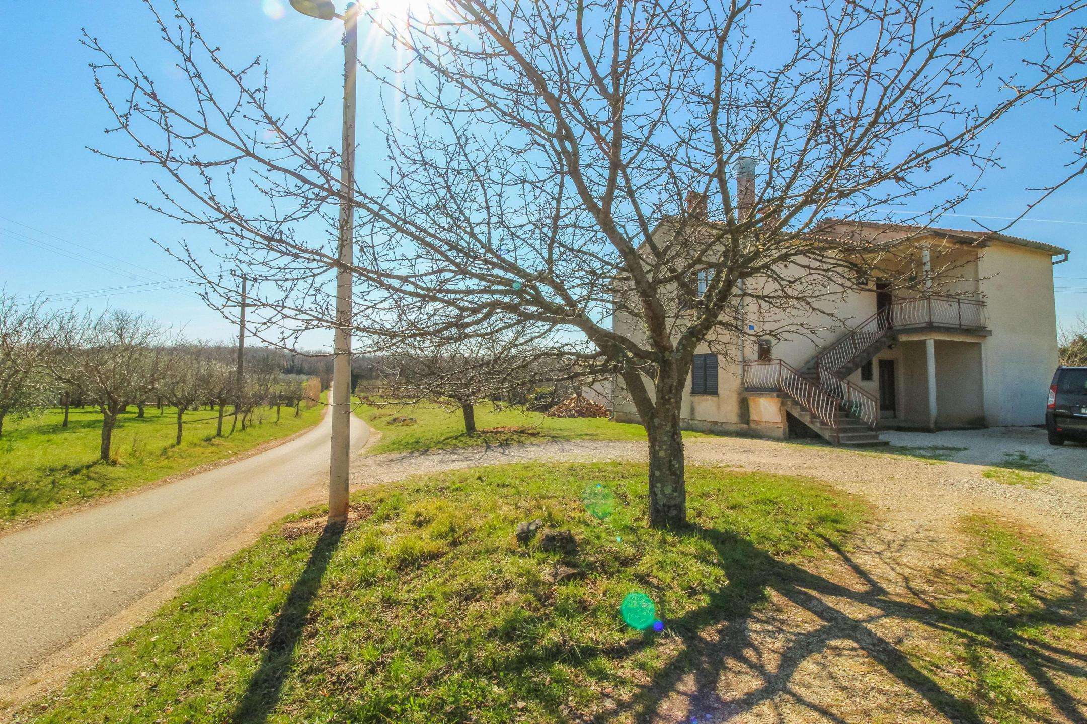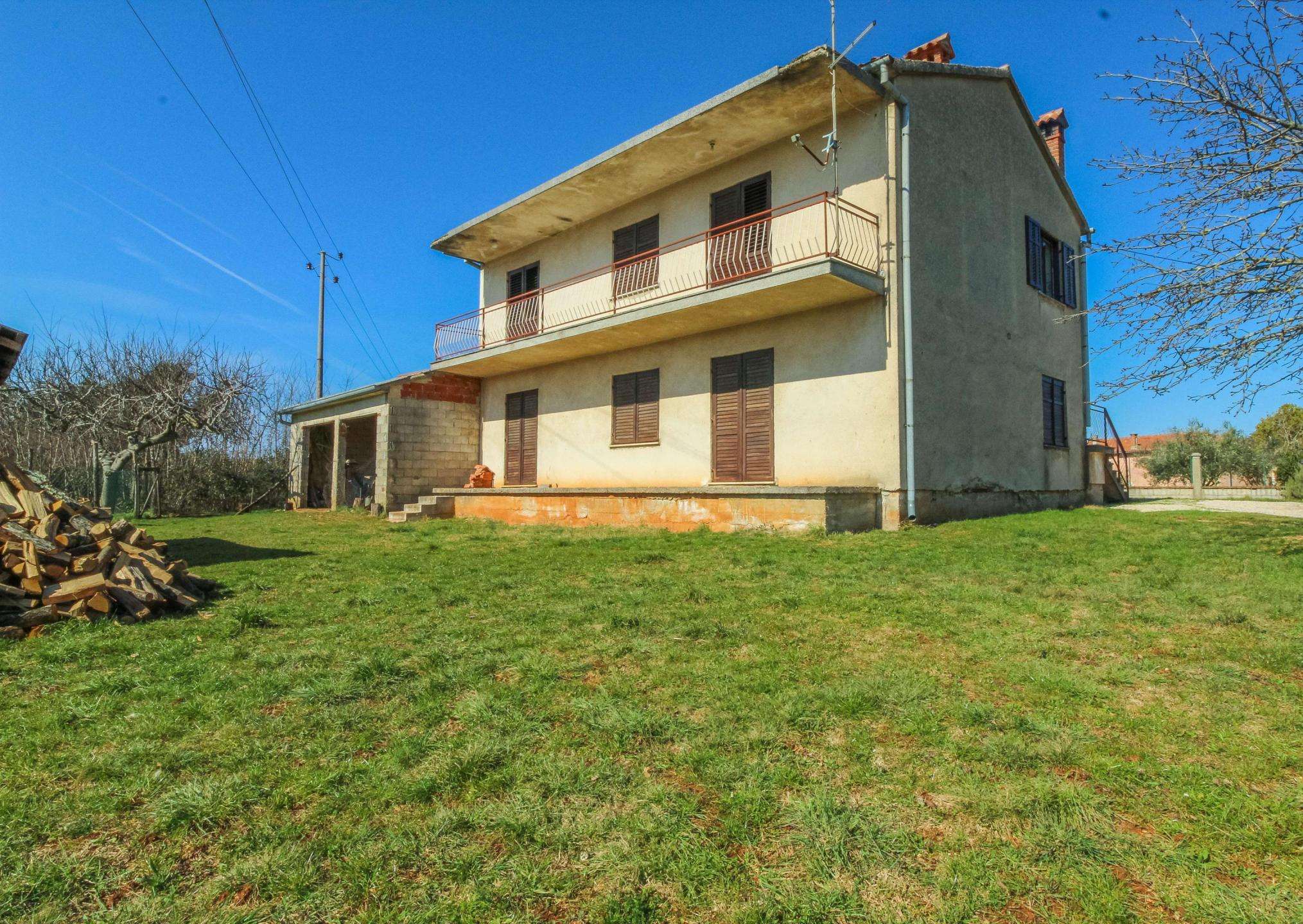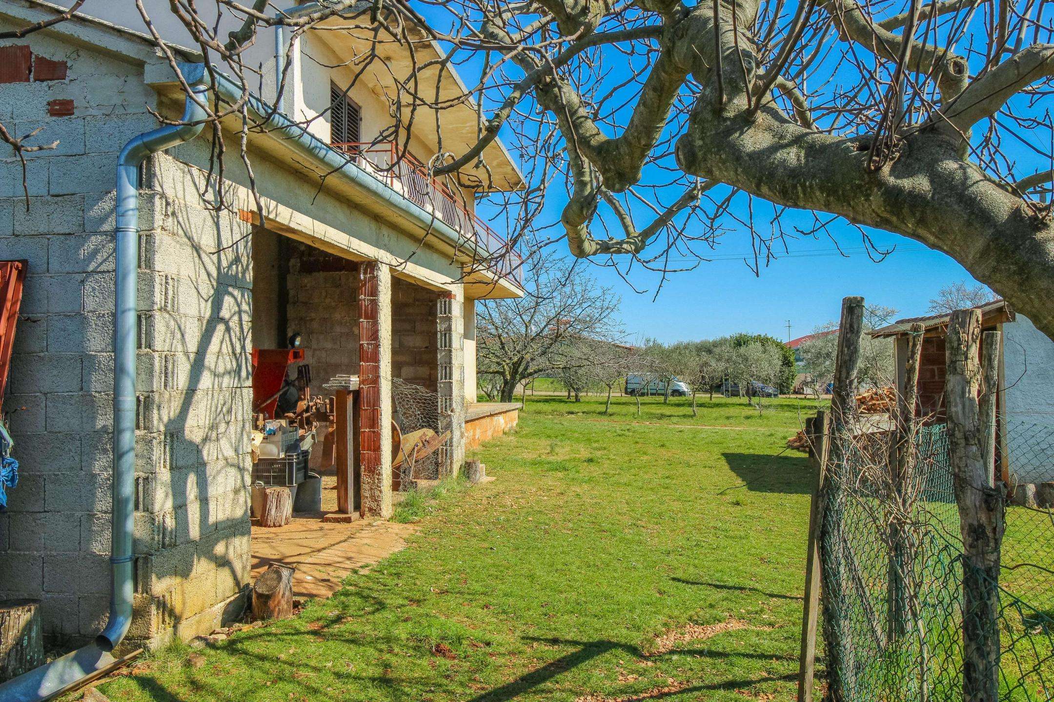 Near Umag, on the edge of a quiet village, a house of 266 m² is for sale, on two floors, with a spacious garden of 900 m². The house has two residential units (2 apartments) and one garage with storage. The house needs renovation. The apartment on the ground floor is in a higher phase of rough construction. The apartment on the first floor is finished. The building needs to be completed and completely renovated. Due to the beautiful position near Umag and a large building plot, it is a great opportunity for investment. Umag, shops and the sea are only a 5-minute drive away.