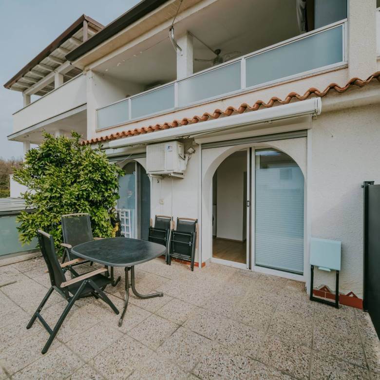 Exclusive, only offered by the agency Vista Pro Network! A renovated apartment on the ground floor with a garden in Valica near Umag is for sale. The total area of the apartment is 42 m². The apartment consists of an entrance hall, living room with kitchen and dining room, one bedroom and bathroom. From the living room there is access to the landscaped and fenced yard of 60 m², where there is a terrace, a garden and a space for socializing. The apartment is heated by IR panels and cooled by air conditioning. The apartment is for sale completely newly furnished. Next to the apartment there is a parking space for use.