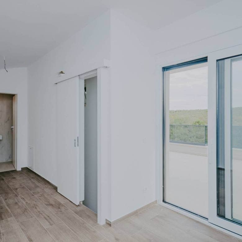 This is a modern, bright, two-story apartment located on the first and second floor of a new residential building in Zambratija. The building is small, consisting of only four residential units. Its location is highly sought after, as it is only 300 meters from the sea and beaches.