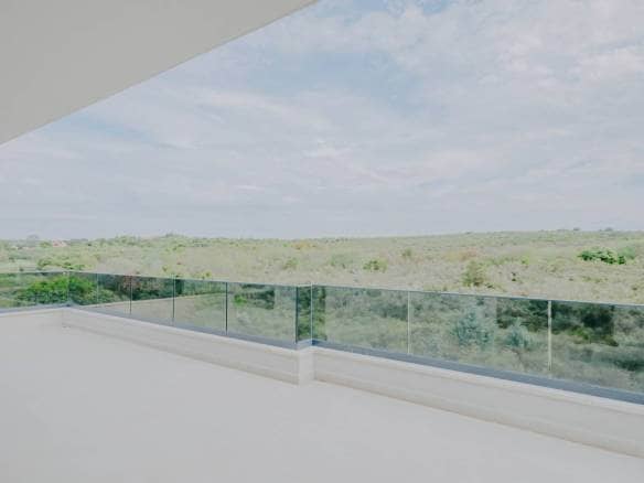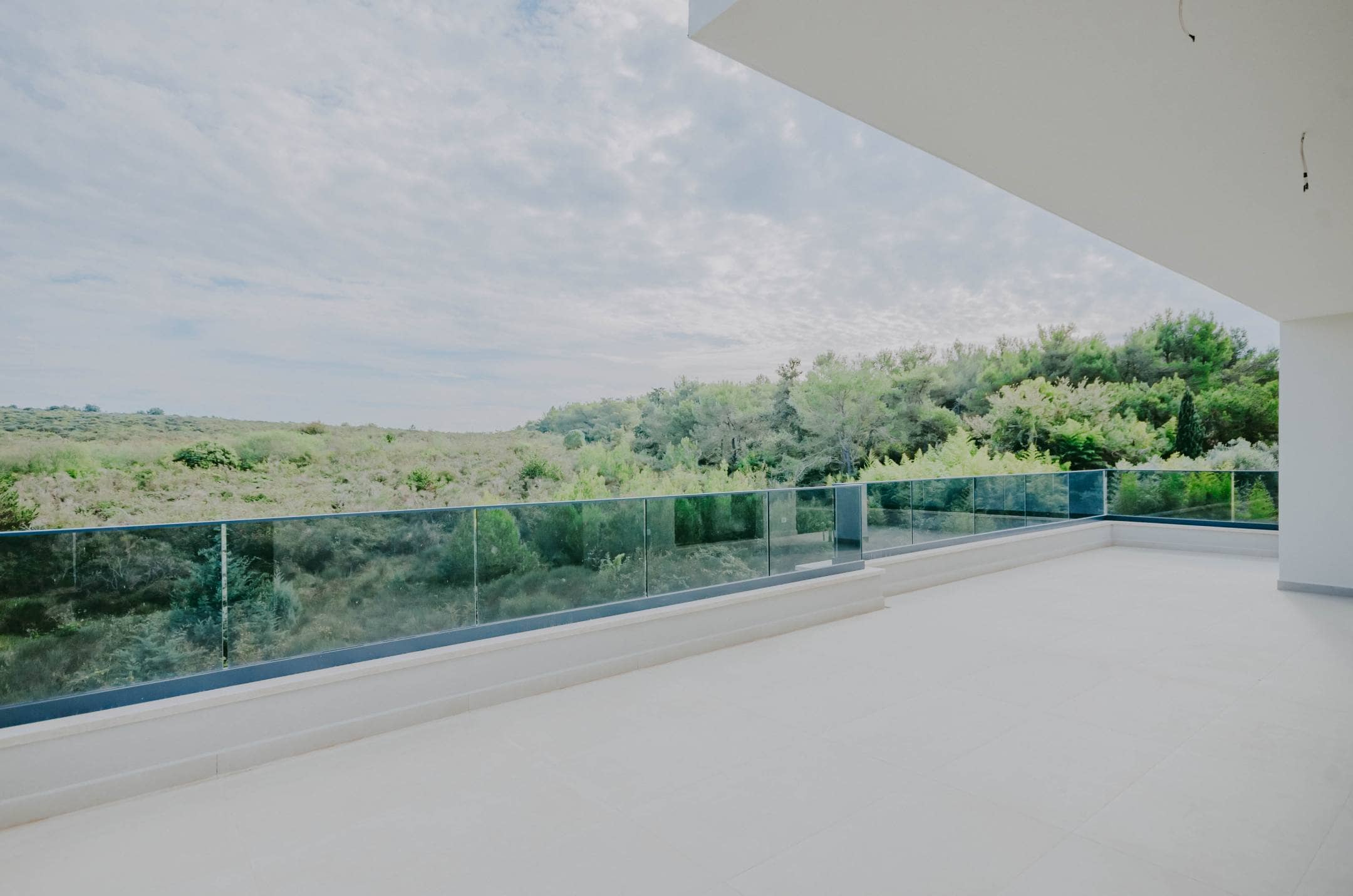 The property offers an internal area of 101 m² and is thoughtfully distributed to include an open-space living room with a kitchen and dining area, two bedrooms, a study, two bathrooms, a hallway, a storage room, and a staircase. One of its standout features is the spacious 55 m² terrace with a beautiful sea view, of which 20 m² are covered, with provision for a summer kitchen. The apartment has a separate entrance and is equipped with a modern heating system that includes air conditioning and water-based underfloor heating. It also features a private parking space, a photovoltaic system for electricity generation, and construction characterized by high-quality materials and large glass walls. The property is sold new, excluding furniture.