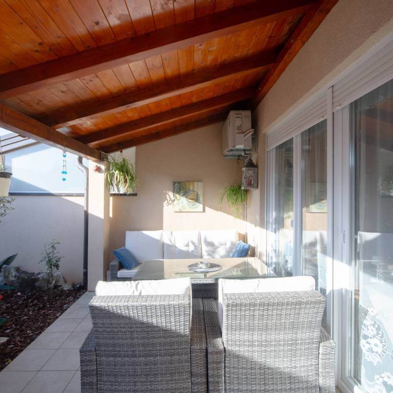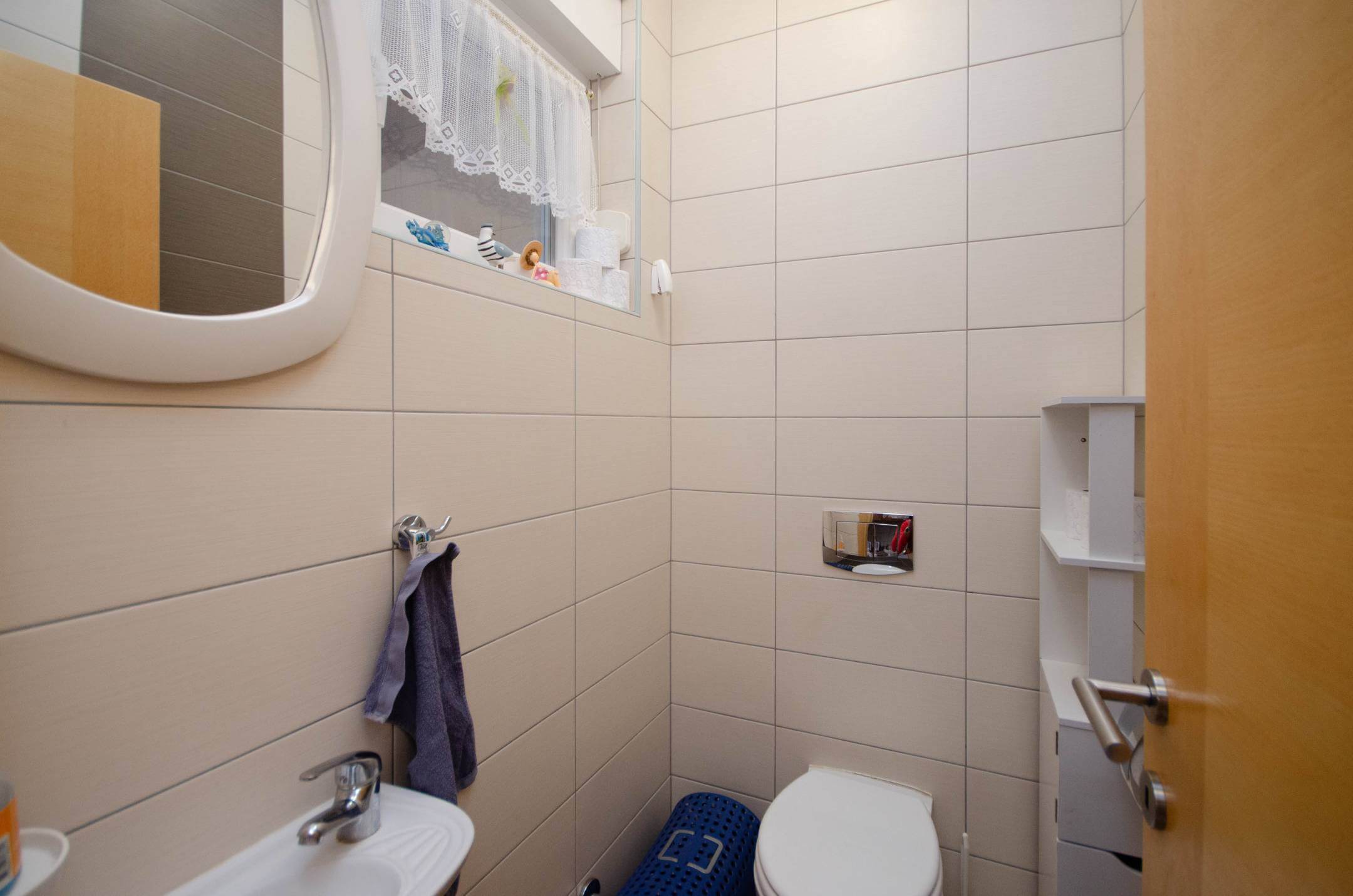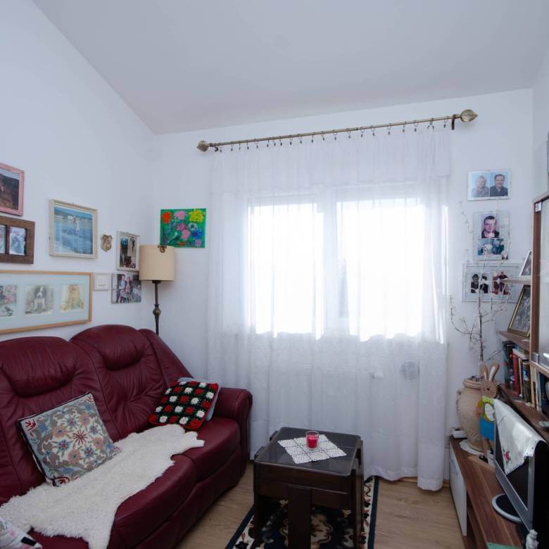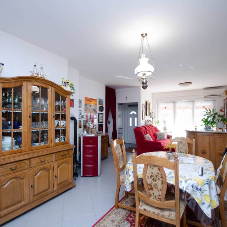 Предлагается к продаже исключительный семейный дом в ряду, расположенный в тихом и привлекательном месте в непосредственной близости от Каштелы. Этот дом общей жилой площадью 120 м² расположен на двух этажах и находится на благоустроенном участке площадью 163 м². Внутреннее пространство отличается функциональной планировкой, обеспечивающей максимальный комфорт проживания, и включает в себя прихожую, просторную кухню, соединенную со столовой, три уютные спальни, большую ванную комнату, отдельный туалет и практичную внутреннюю кладовую.
