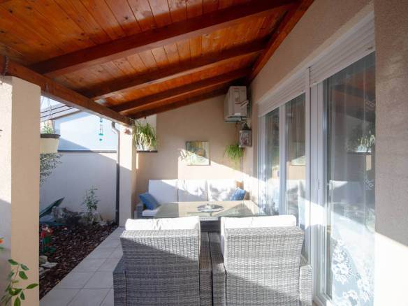 Внешний вид дома тщательно продуман, чтобы обеспечить высокое качество жизни на открытом воздухе. Перед зданием расположена крытая терраса и просторная крытая парковка на три автомобиля, а за домом, в полной приватности, находится вторая крытая терраса. Она окружена красиво благоустроенным и огороженным садом, украшенным такими эстетическими деталями, как фонтан, что делает это пространство идеальным оазисом для отдыха. Дом построен качественно, полностью оборудован и находится в отличном состоянии, готов к немедленному заселению без необходимости дополнительных инвестиций.