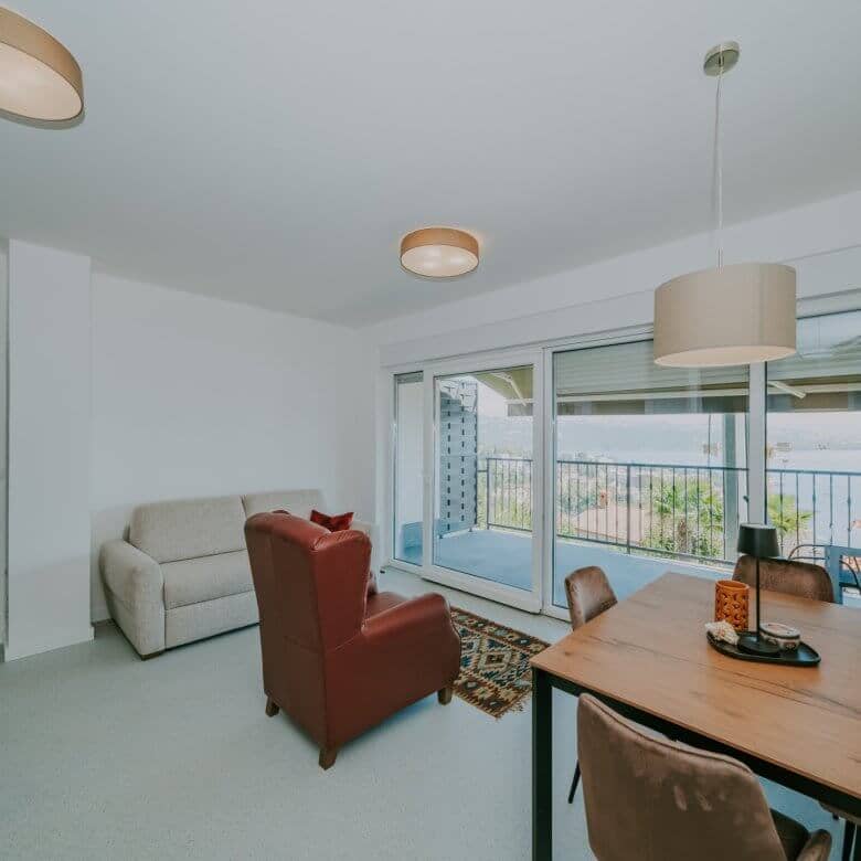 В Опатии продается новая дизайнерская квартира в ТОП-позиции с открытым видом на море. Недвижимость имеет общую площадь 71 м² и состоит из кухни, гостиной со столовой, одной спальни, ванной комнаты и просторной террасы площадью 19 м² с панорамным видом. Квартира обставлена качественной мебелью на заказ, полы в квартире залиты эпоксидной смолой. Он обогревается и охлаждается с помощью кондиционера. В квартире также есть одно парковочное место площадью 12,50 м², которое находится в собственности. Недвижимость имеет отличное расположение, всего в 350 метрах от моря и Опатийской Ривьеры, и идеально подходит для проживания или в качестве туристической недвижимости для летнего отдыха.