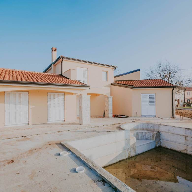 V Kaštelu, le nekaj minut od Buj in meje s Slovenijo, se nahaja ta kakovostna hiša v novogradnji z bazenom. Skupna površina hiše je 170 m² na parceli 1230 m². Hiša se razprostira na dveh etažah. V pritličju se nahaja prostorna dnevna soba, ki je povezana s kuhinjo in jedilnico po konceptu odprtega prostora, dve kopalnici z WC-ji, tehnični prostor, shramba in dve spalnici. Iz dnevne sobe in jedilnice gre direktno na teraso, kjer se nahaja letna kuhinja in bazen. V prvem nadstropju je še ena spalnica s kopalnico in pokrito teraso s pogledom na morje.