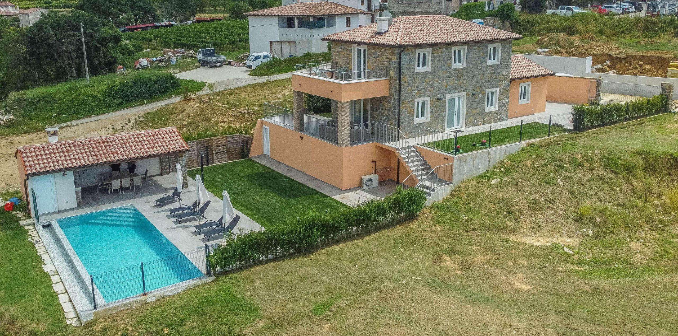 Ta novozgrajena vila z bazenom se nahaja v Momjanu, nedaleč od Buj in meje s Slovenijo. Vila je trenutno v gradnji, dokončanje pa je predvideno do konca leta 2023. Vila skupne bruto površine 210 m². Sestavljen je iz kuhinje, jedilnice, dnevne sobe, treh spalnic in treh kopalnic ter prostorne terase, ki ponuja nepozaben pogled na zelenje narave. Na parceli velikosti 681 m² se nahaja ogrevan bazen s teraso za sončenje in letna kuhinja. Ogrevanje bo na toplotne črpalke, vgrajene bodo klimatske naprave.