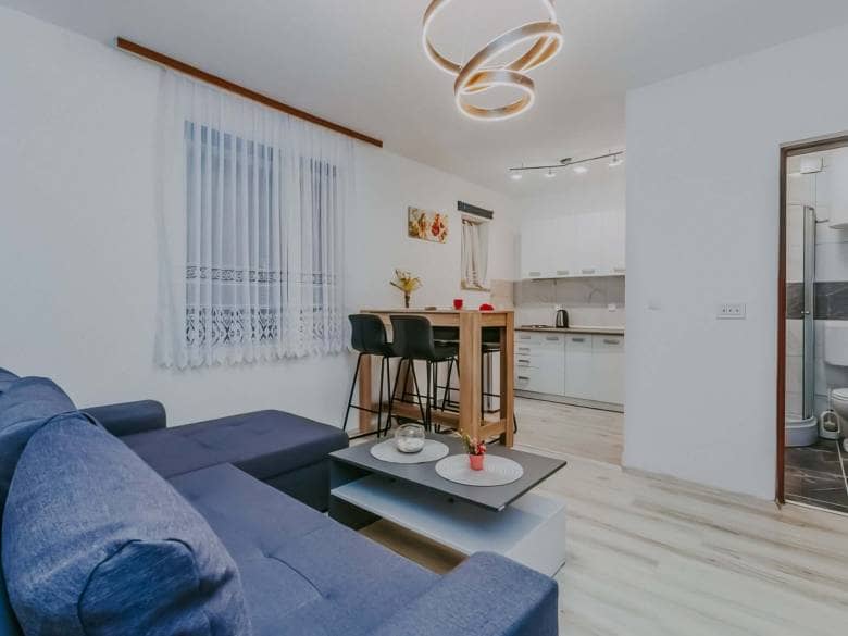 V predmestju Poreča se prodaja ta prostorna apartmajska hiša s petimi apartmaji in pogledom na morje. Hiša ima tri etaže in skupno meri 390 m². Hiša se uspešno oddaja v poletni sezoni, tako da je možna vzpostavitev storitve najema. V pritličju se nahaja en apartma s prostorno dnevno sobo, kuhinjo, jedilnico z izhodom na pokrito teraso, dve spalnici in kopalnico. V prvem in drugem nadstropju sta dva apartmaja, ki sta prav tako popolnoma opremljena s kuhinjo, jedilnico, dnevno sobo, kopalnico, vsak apartma pa ima svojo teraso. Hiša je orientirana proti jugozahodu, tako da lahko zvečer uživate v sončnem zahodu in pogledu na morje.