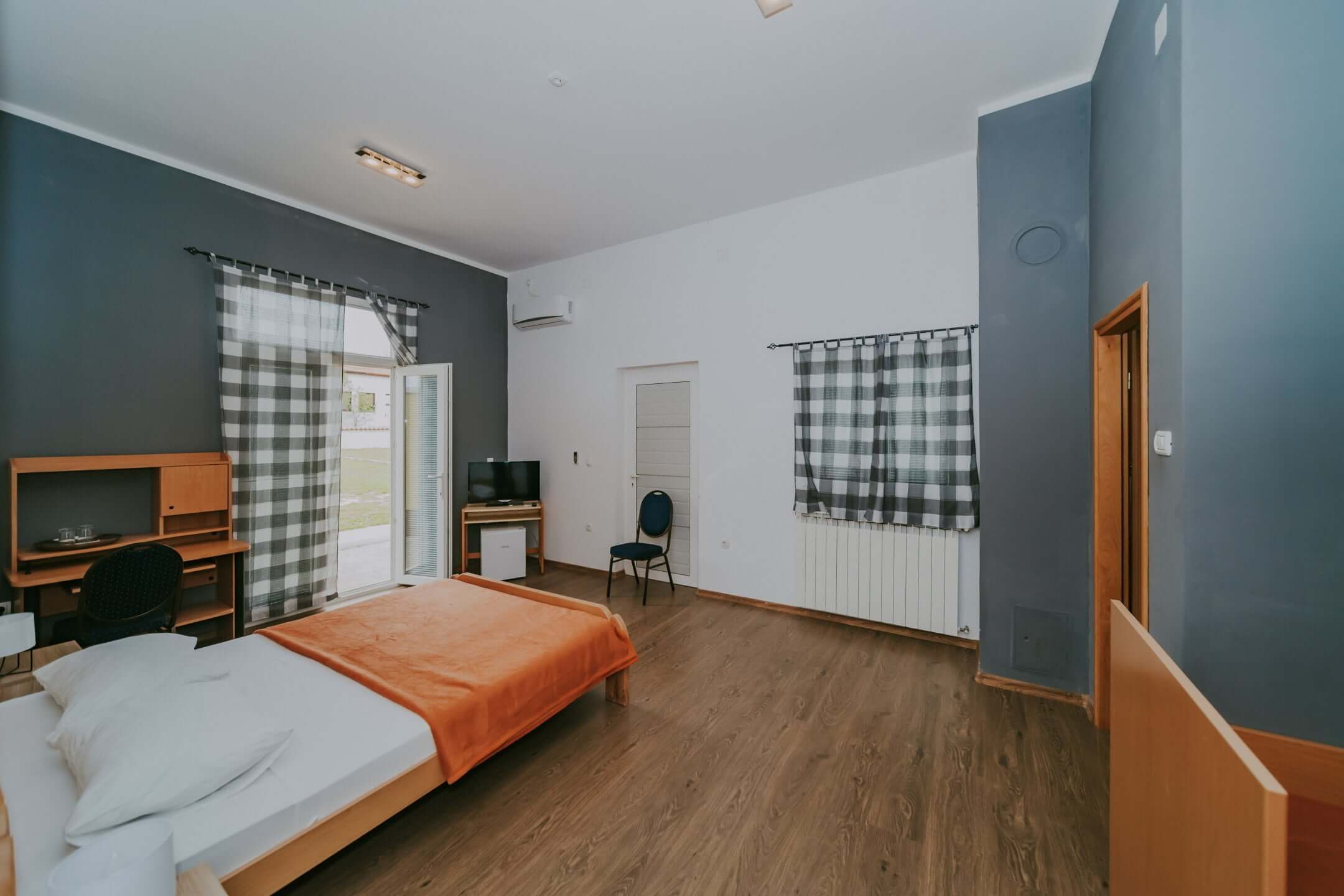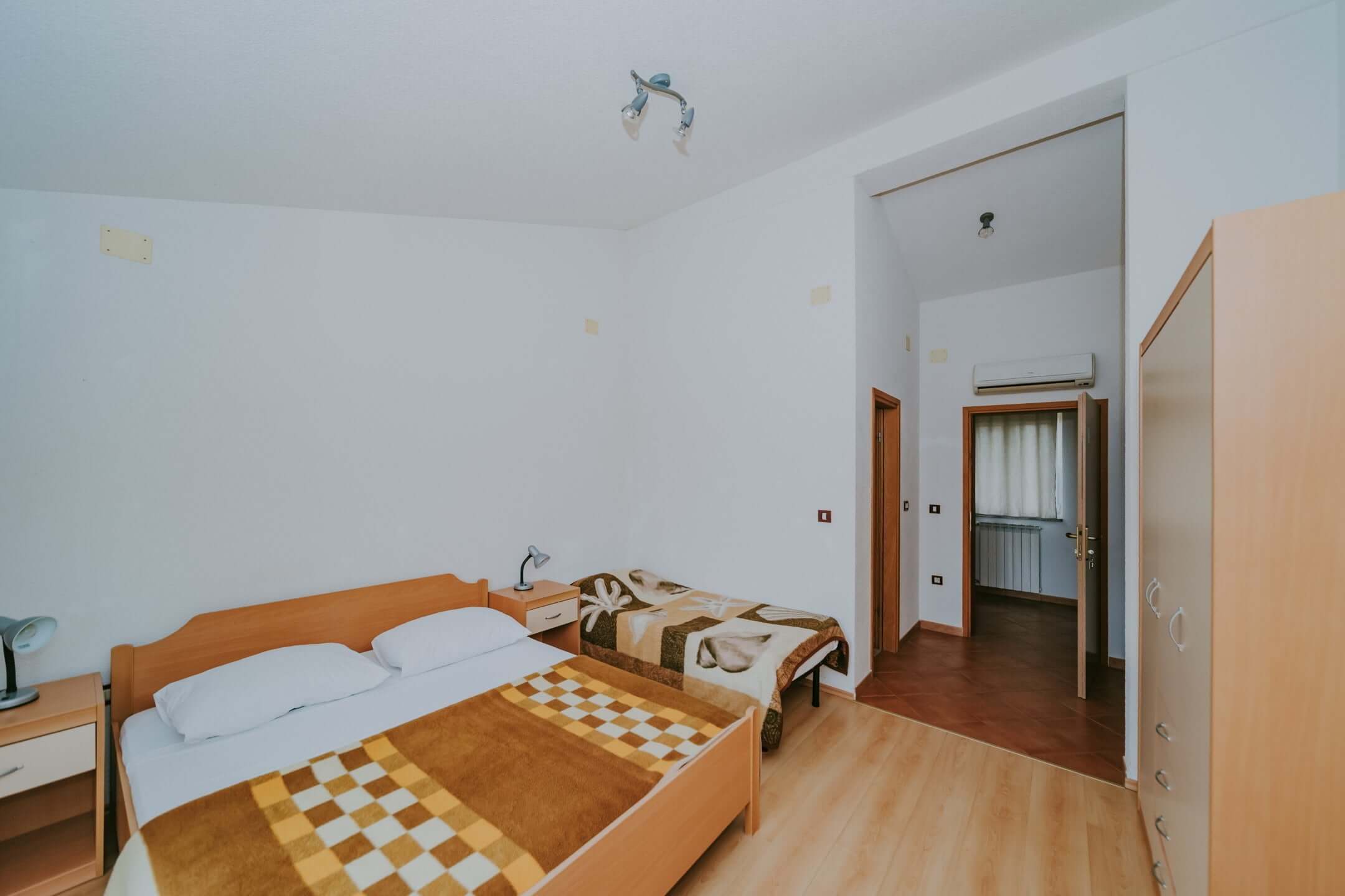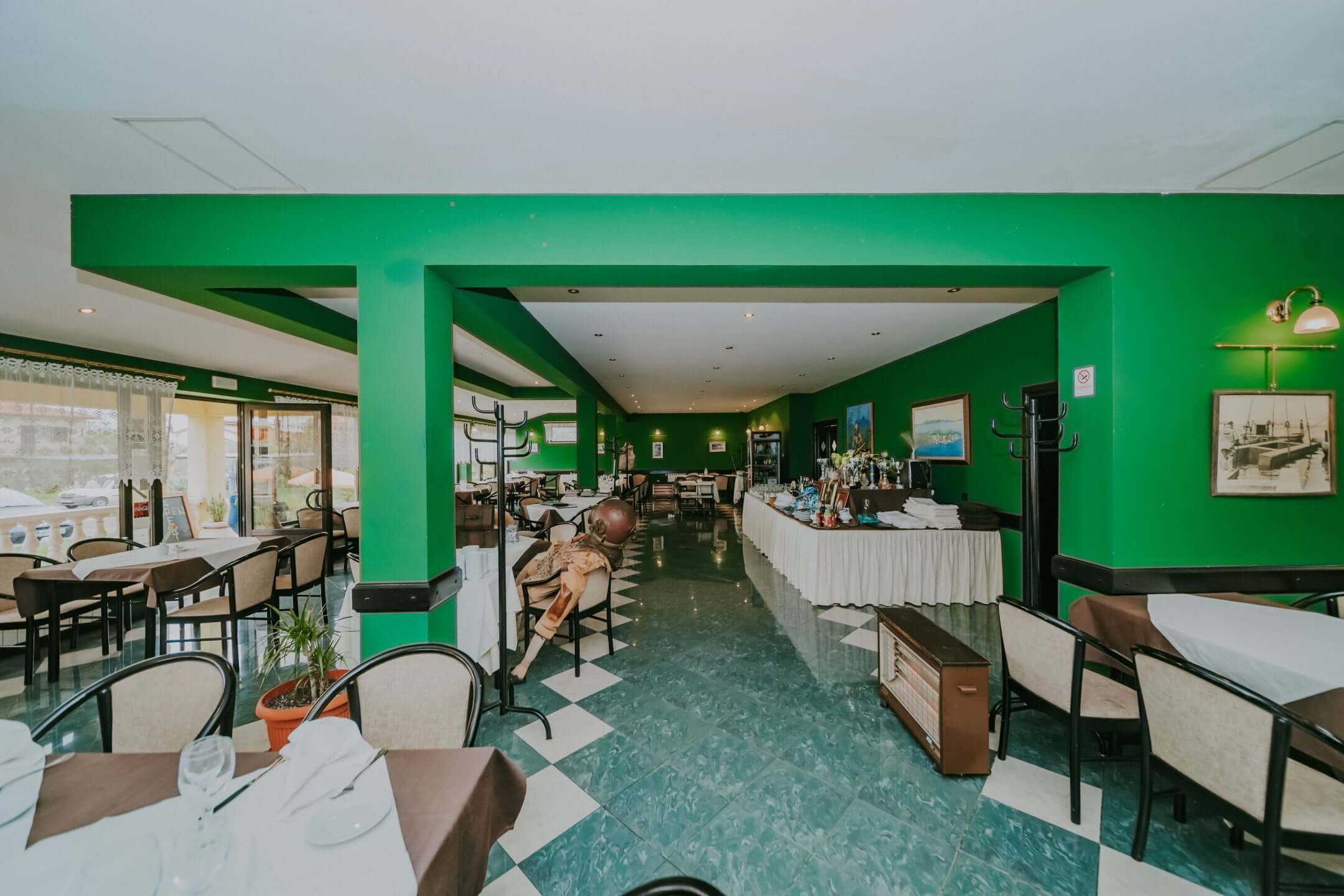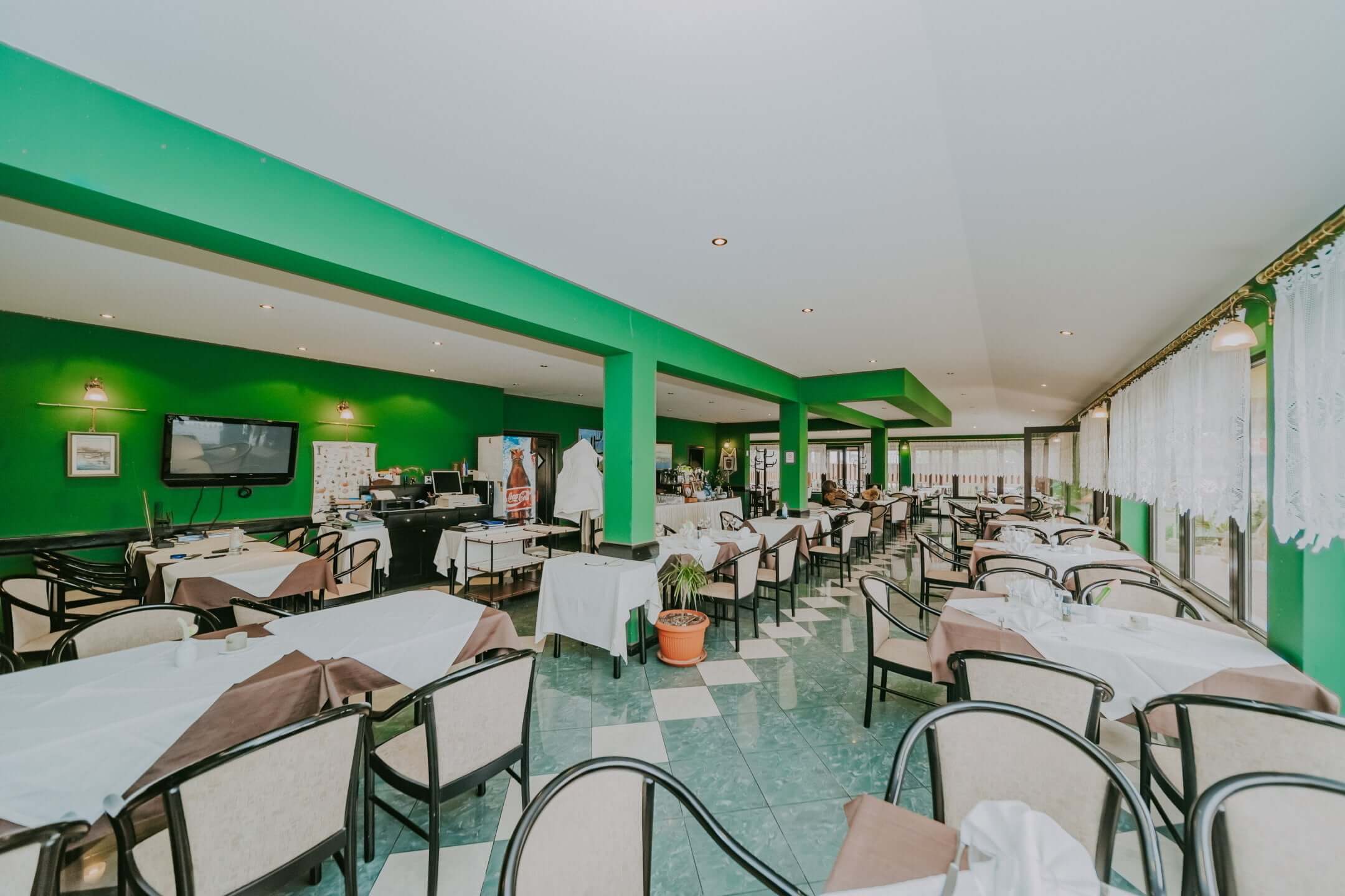 Prodamo poslovni objekt s prostornim stanovanjem in stanovanjsko hišo s 6 apartmaji v mirnem naselju v neposredni bližini Umaga. Gre za 2 samostojni nepremičnini, ki se nahajata ena poleg druge in skupaj tvorita eno celoto. Nepremičnine se nahajajo na ograjenem zemljišču velikosti 2.134 m². V pritličju poslovnega objekta se nahaja poslovni prostor – gostinski lokal s kuhinjo v izmeri 260 m², za katerega obstaja možnost opravljanja različnih gospodarskih dejavnosti. Objekt lahko sprejme do 100 oseb v notranjih prostorih. Ob prostoru se nahaja pokrita terasa, ki lahko sprejme do 100 oseb. V prvem nadstropju se nahaja prostorno stanovanje velikosti 150 m² s kuhinjo, jedilnico, hodnikom, kopalnico in tremi spalnicami. Poleg stanovanja je tudi manjša garsonjera. Pred objektom je parkirišče za 20 avtomobilov.