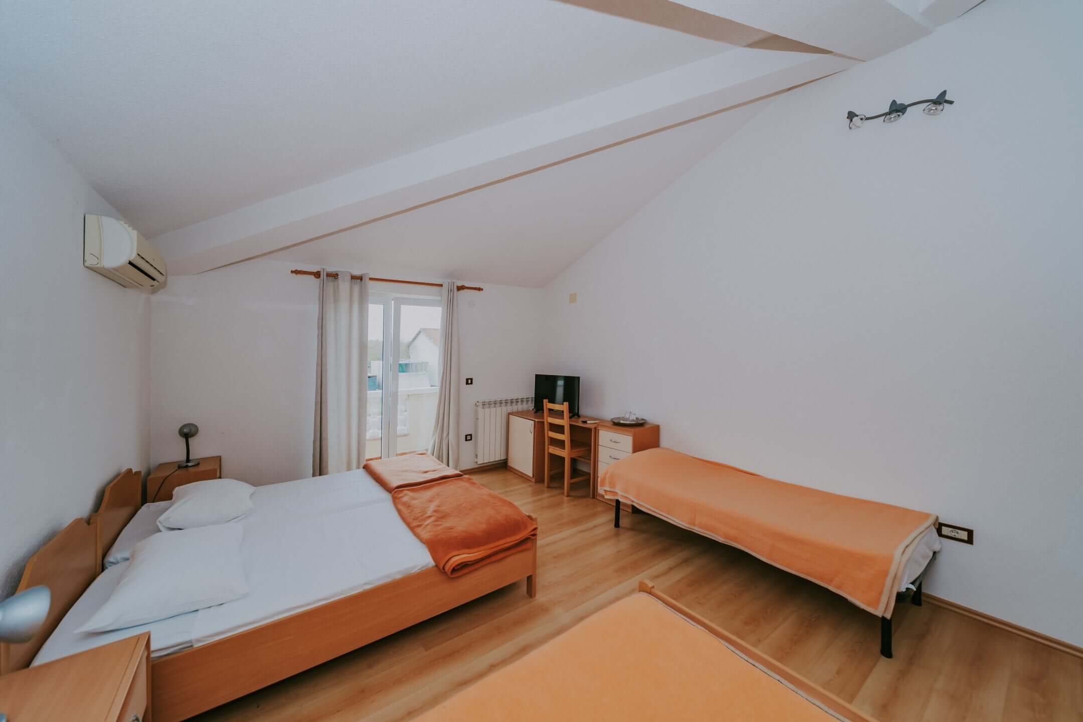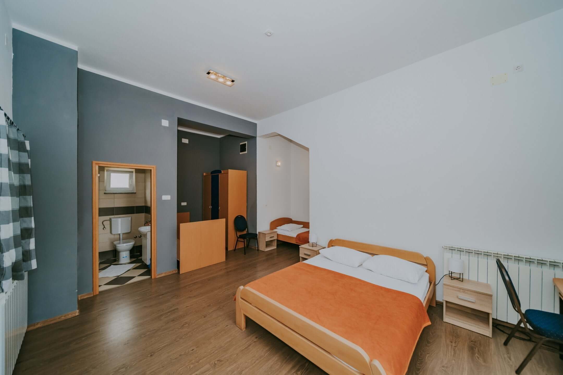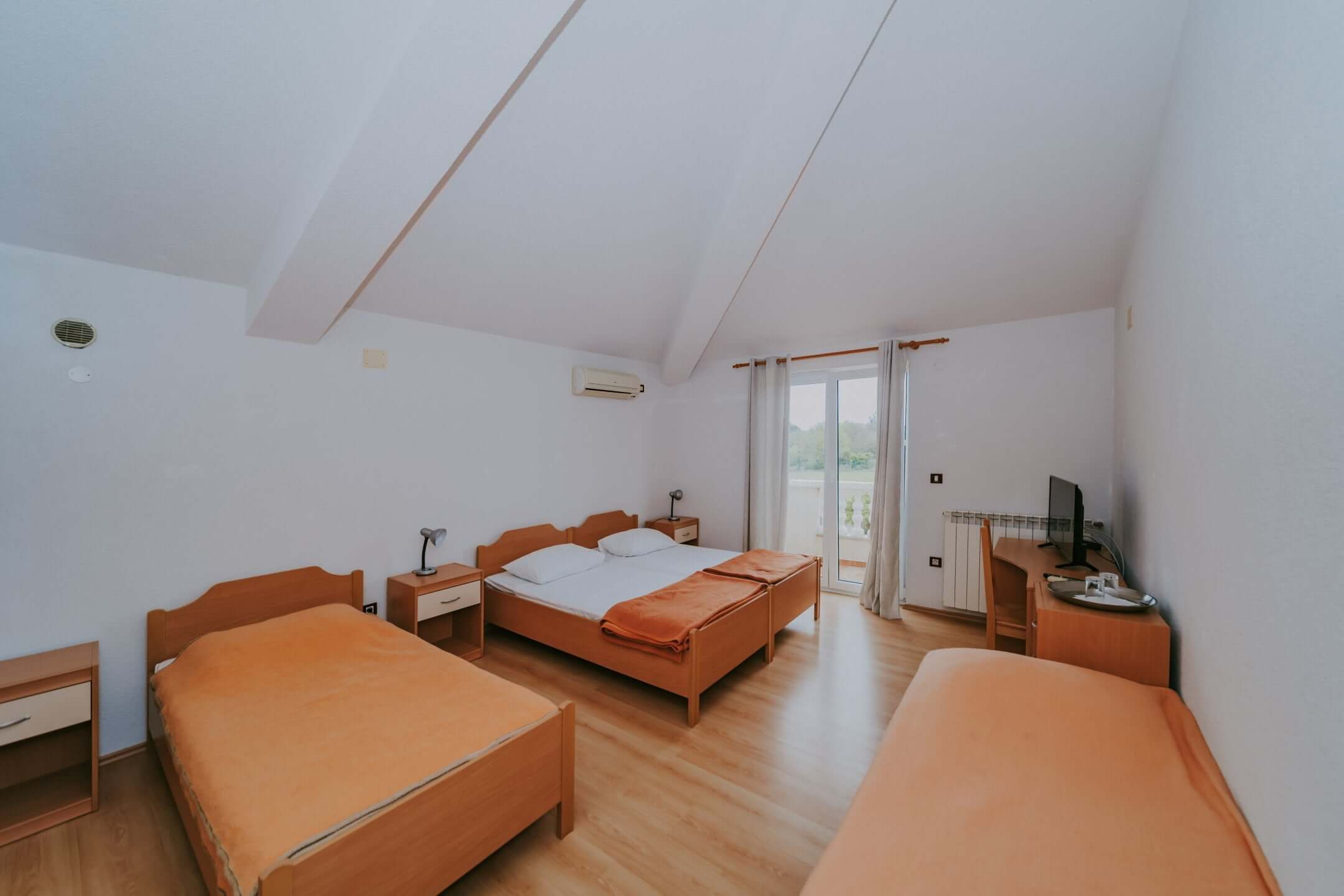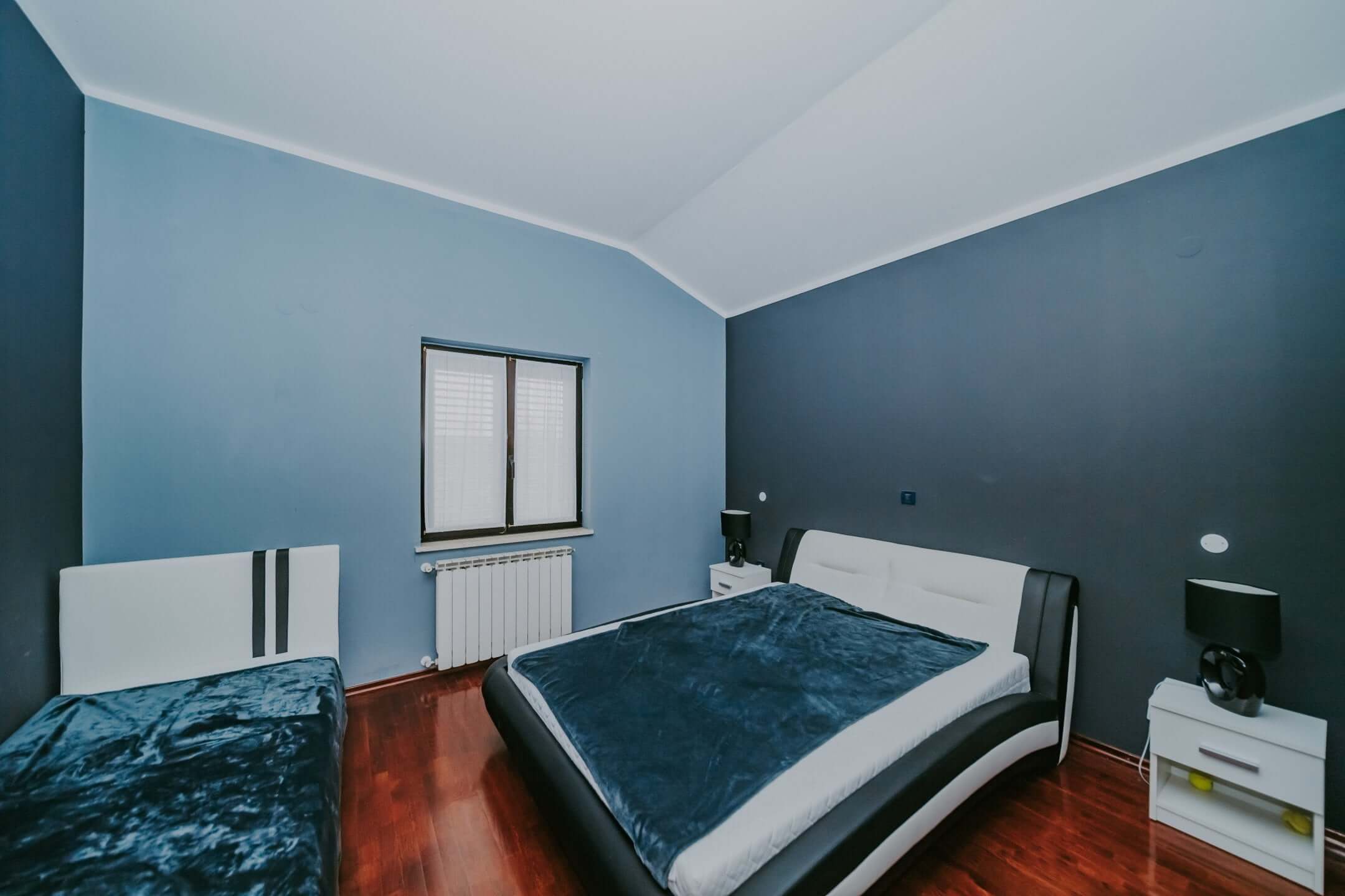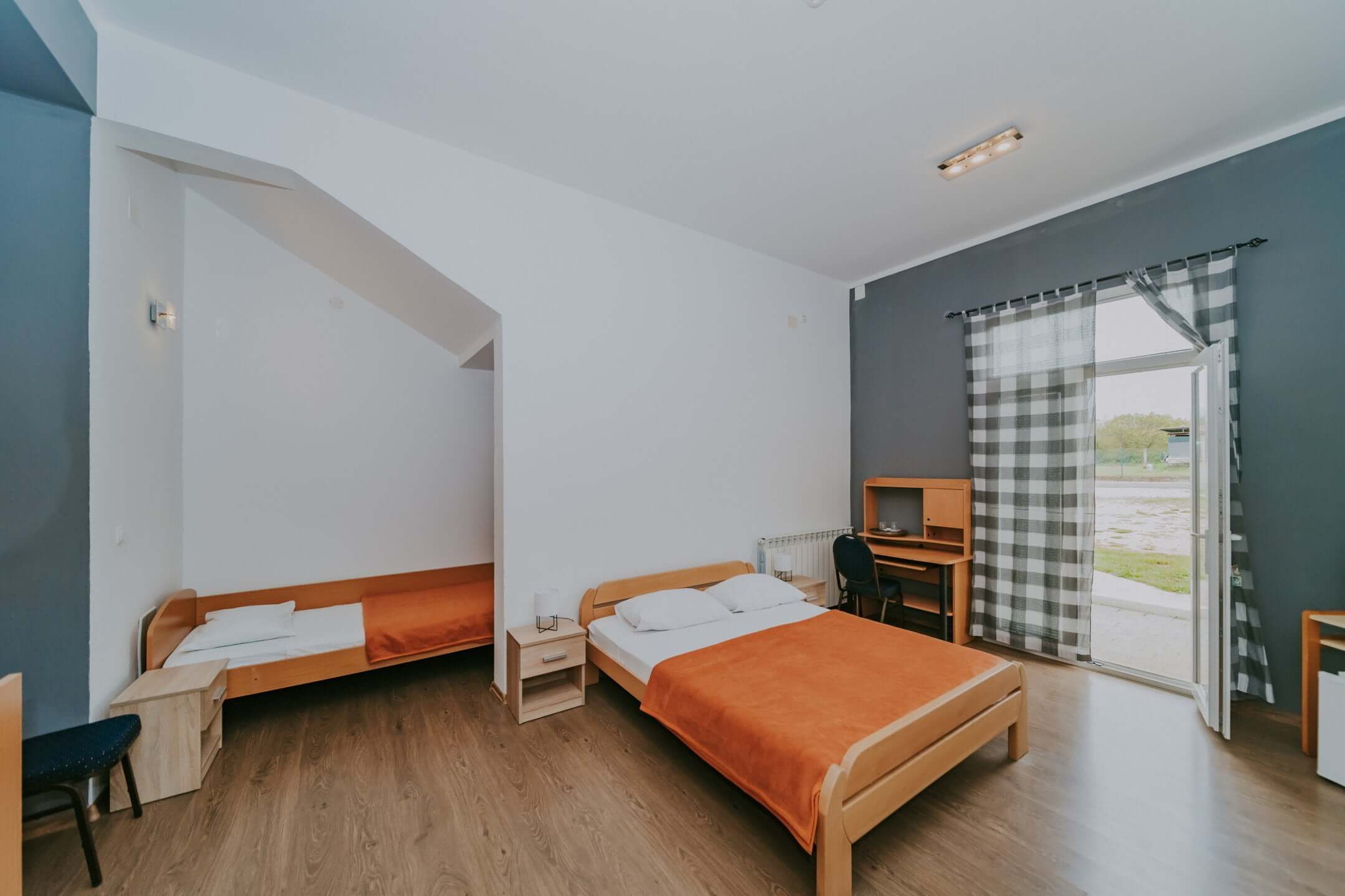 Prodamo poslovni objekt s prostornim stanovanjem in stanovanjsko hišo s 6 apartmaji v mirnem naselju v neposredni bližini Umaga. Gre za 2 samostojni nepremičnini, ki se nahajata ena poleg druge in skupaj tvorita eno celoto. Nepremičnine se nahajajo na ograjenem zemljišču velikosti 2.134 m². V pritličju poslovnega objekta se nahaja poslovni prostor – gostinski lokal s kuhinjo v izmeri 260 m², za katerega obstaja možnost opravljanja različnih gospodarskih dejavnosti. Objekt lahko sprejme do 100 oseb v notranjih prostorih. Ob prostoru se nahaja pokrita terasa, ki lahko sprejme do 100 oseb. V prvem nadstropju se nahaja prostorno stanovanje velikosti 150 m² s kuhinjo, jedilnico, hodnikom, kopalnico in tremi spalnicami. Poleg stanovanja je tudi manjša garsonjera. Pred objektom je parkirišče za 20 avtomobilov.