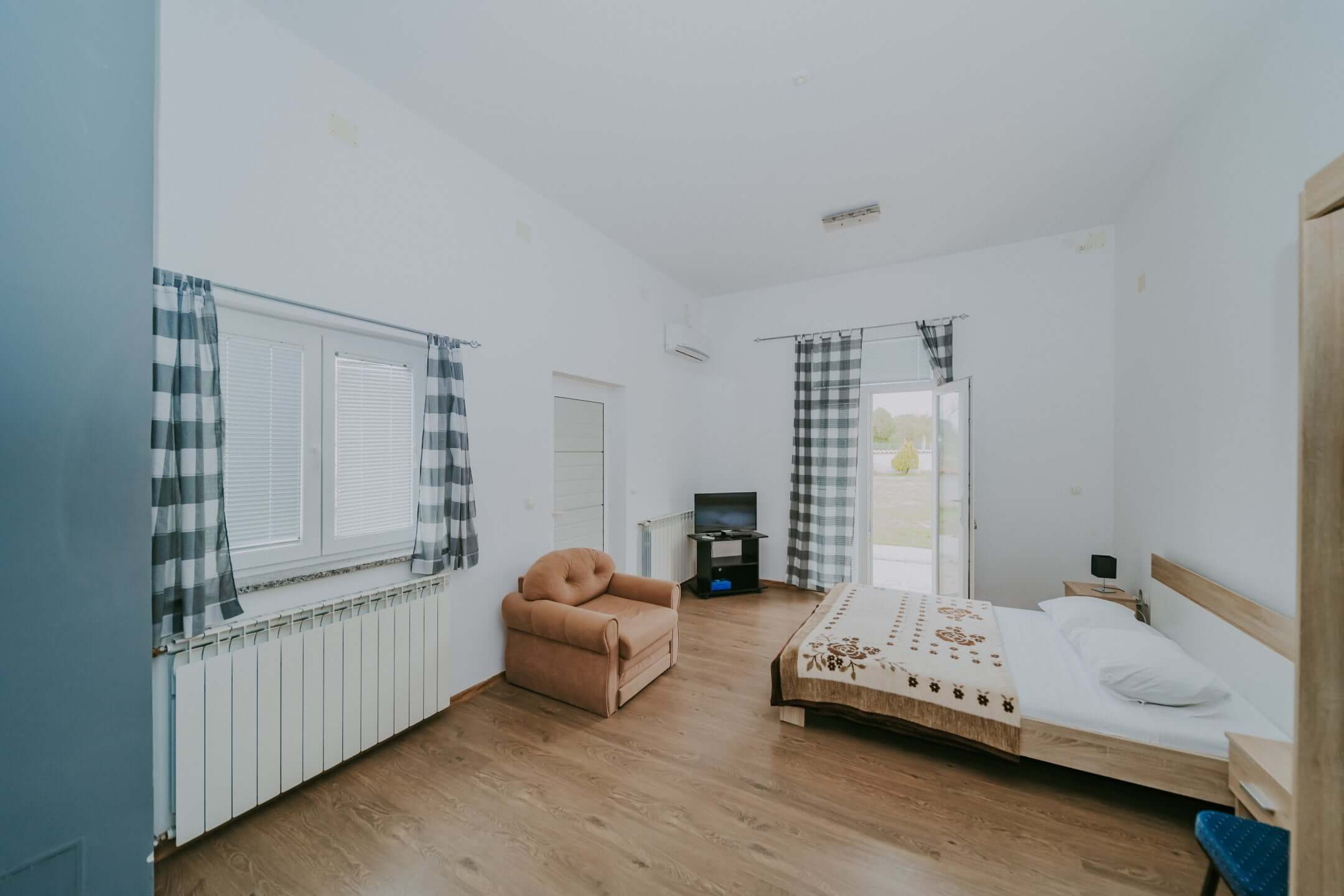 Za to nepremičnino je popolnoma opremljena stanovanjska hiša s prostornim vrtom. Hiša se razprostira v pritličju in prvem nadstropju in je sestavljena iz 6 studio apartmajev. Objekt se ogreva na plin in elektriko, hladi pa s klimatsko napravo. V sklopu velike domačije obstaja možnost izgradnje bazena. Nepremičnine se nahajajo na zelo zanimivi lokaciji, le nekaj minut vožnje od Umaga ter lepih in urejenih plaž. V bližini nepremičnine je glavna cesta, avtocesta, trgovine, kolesarske steze, sprehajalne poti in razne druge vsebine. Glede na velikost nepremičnine in različne možnosti, ki jih nepremičnina ponuja, je idealen kompleks za investicijo v turizem in razvoj lastnega posla.