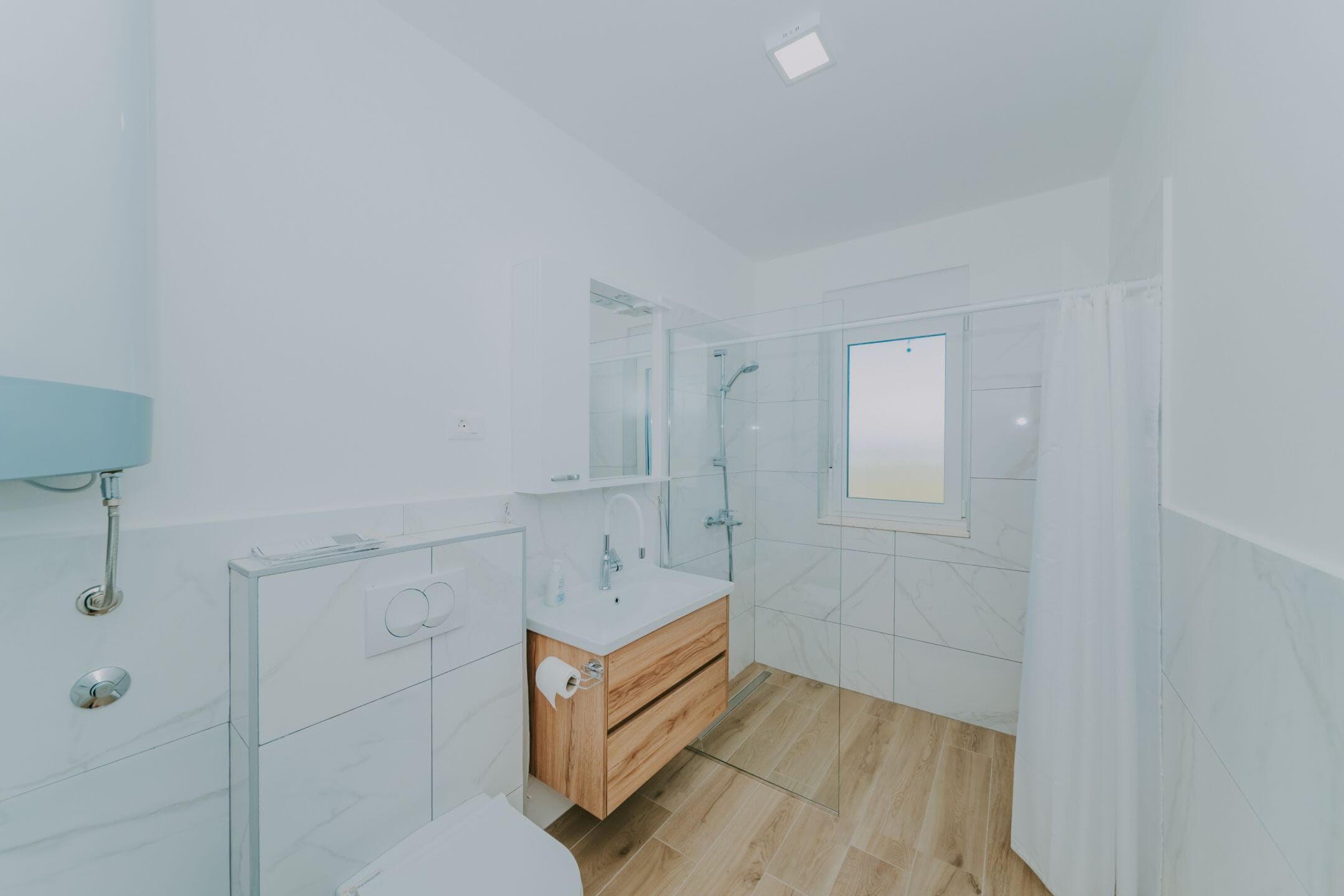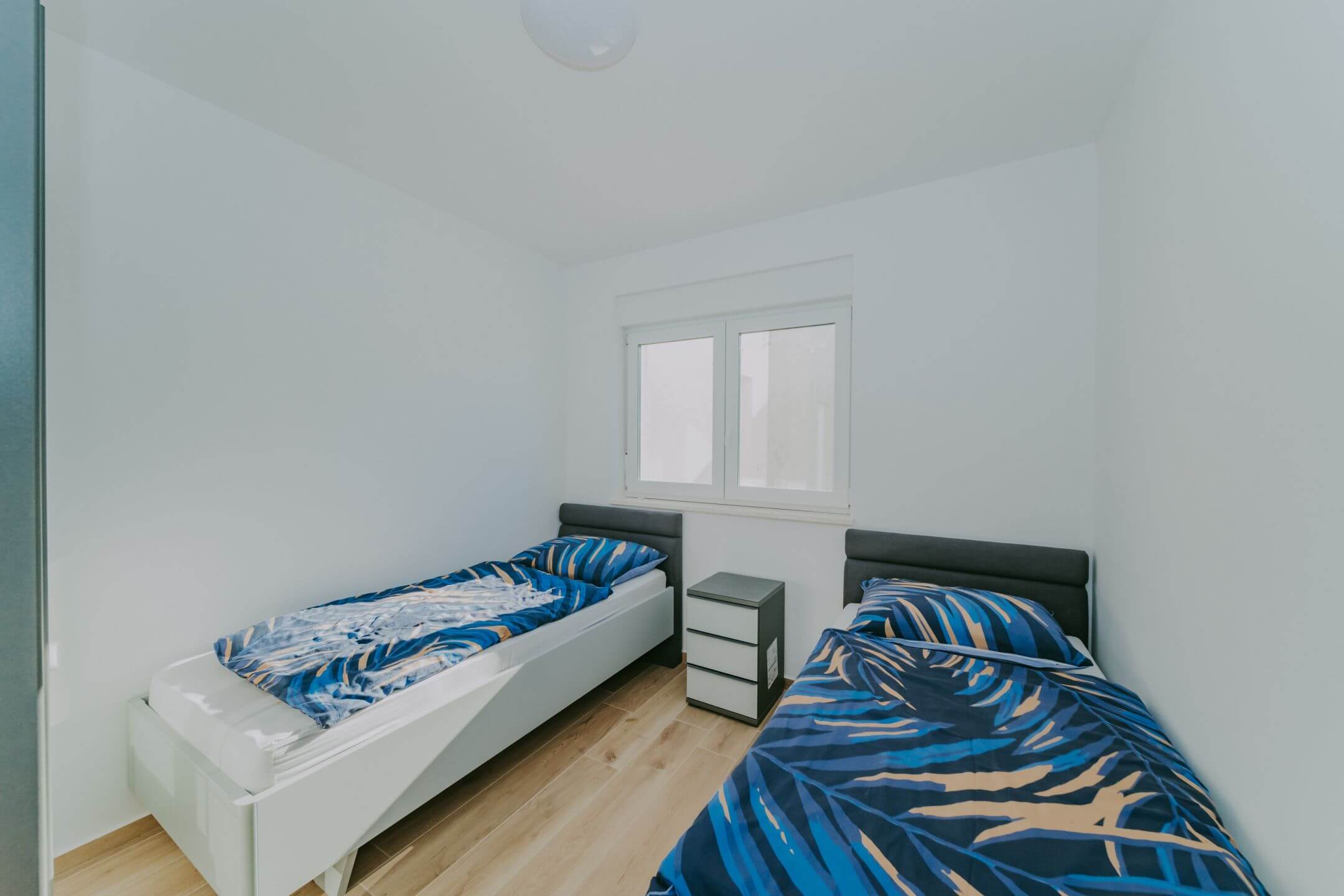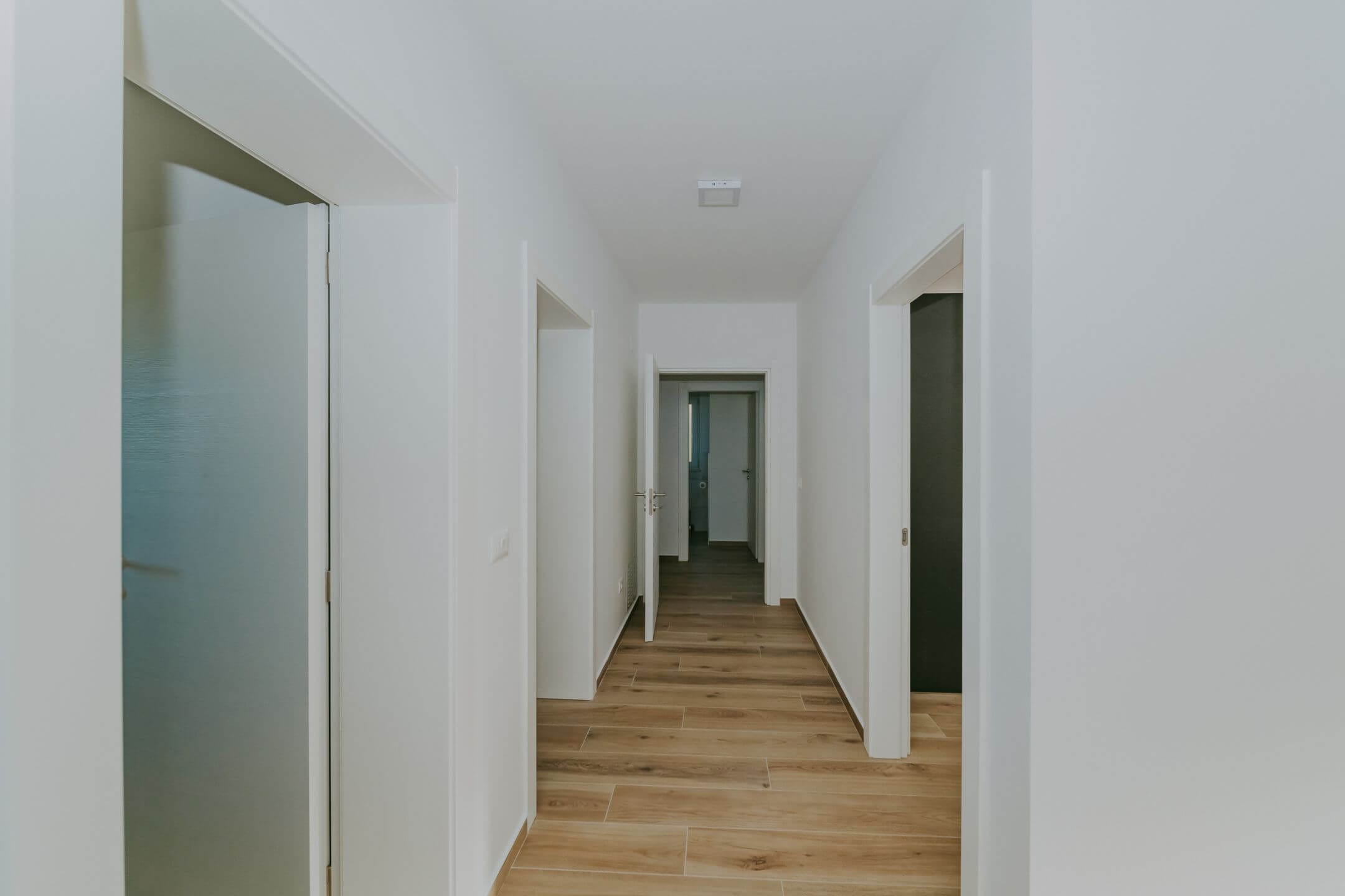 V majhnem mestu, le nekaj minut od mesta Umag in nekaj minut od meje s Slovenijo, se nahaja ta kvalitetna hiša v novogradnji. Skupna površina hiše je 208 m² na parceli 544 m². Hiša se razprostira v dveh etažah, v pritličju se nahaja prostorna dnevna soba, ki je povezana s kuhinjo in jedilnico po konceptu odprtega prostora, ena kopalnica z WC-jem, en WC za goste, dve spalnici in garsonjera z lastno spalnico, stranišče in ločen vhod. Dnevna soba in jedilnica vodita neposredno na teraso, ki bo pokrita in ima pogled na bazen. V prvem nadstropju je možno oblikovati tudi prostorno dnevno sobo, ki bo povezana z majhno kuhinjo in jedilnico, eno spalnico in eno kopalnico, po konceptu odprtega prostora.