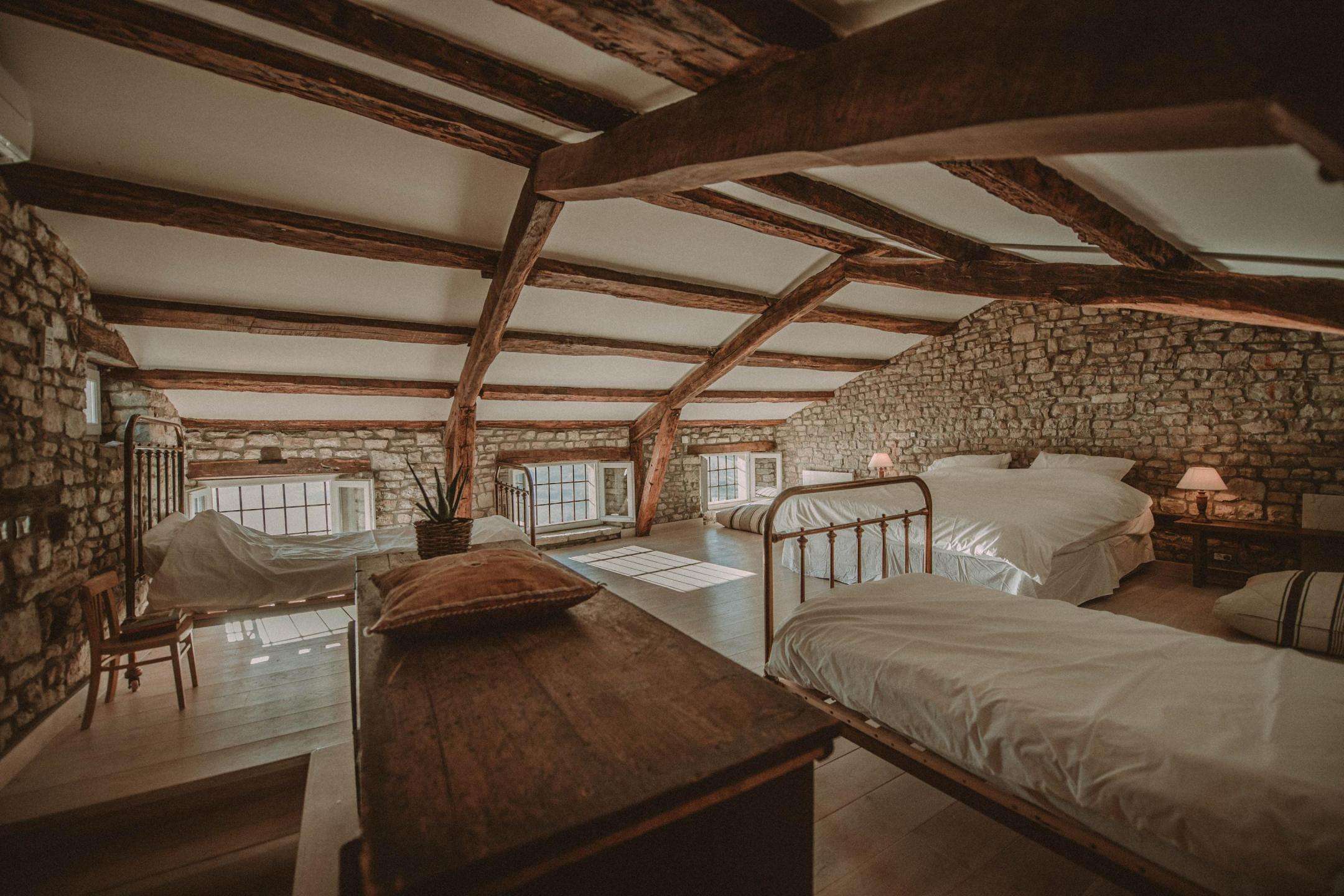 V prvem nadstropju sta dve spalnici in tri kopalnice, v mansardi pa najdete še eno spalnico. Vsaka soba je opremljena z zakonsko posteljo, v mansardni pa še dve ležišči. Vsaka soba ima pogled na gore ali dolino reke Mirne. Zunanjost vile Angelo je prav tako impresivna kot njena notranjost. Iz prelivnega bazena lahko uživate tudi v čarobnem pogledu na Motovunsko dolino, pod njim pa se nahaja sredozemski vrt mešanice rastlin, cvetja in dišečih zelišč ter še ena plaža.